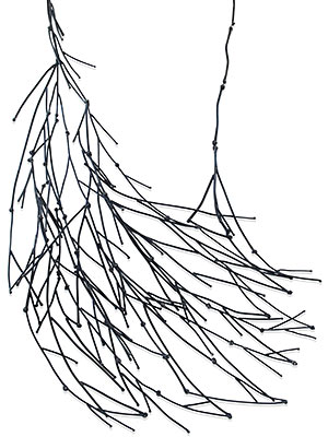 A mix of precious and non-precious materials such as titanium, platinum, enamel, plastics, silk, silver, gold, paper, diamonds and gems are interwoven into the artist's expression.