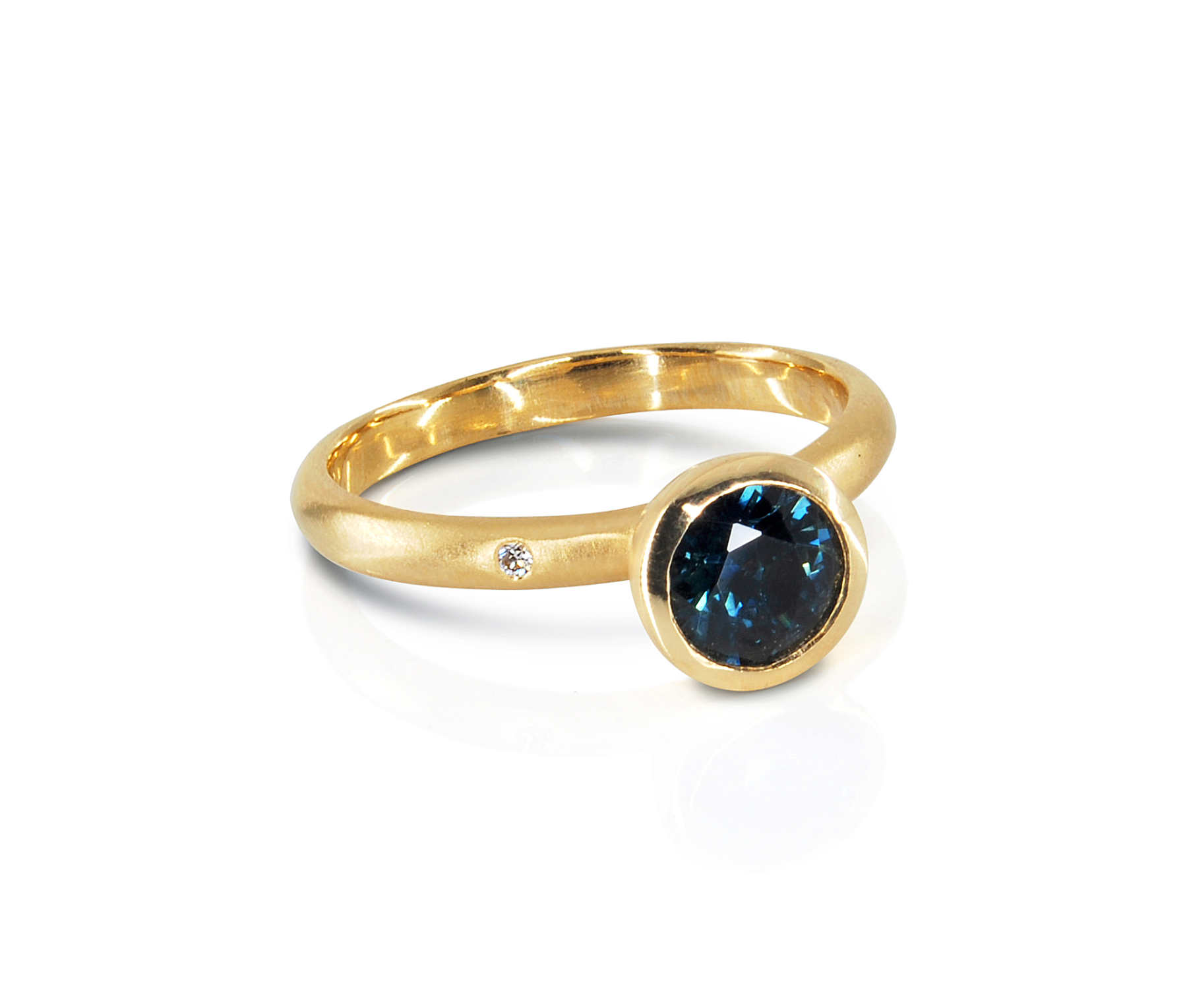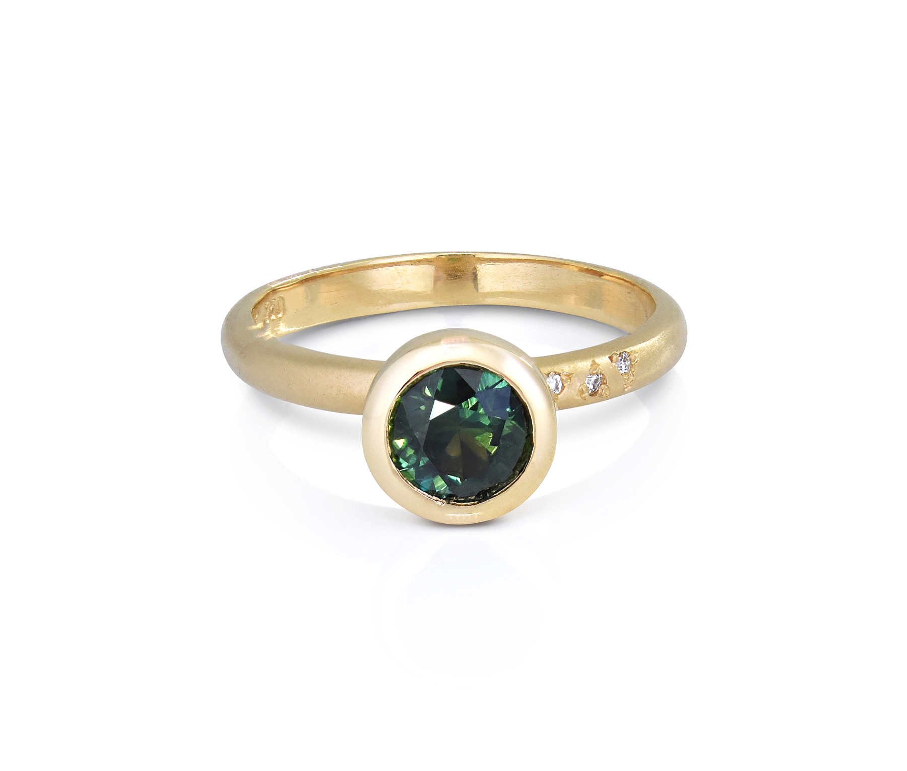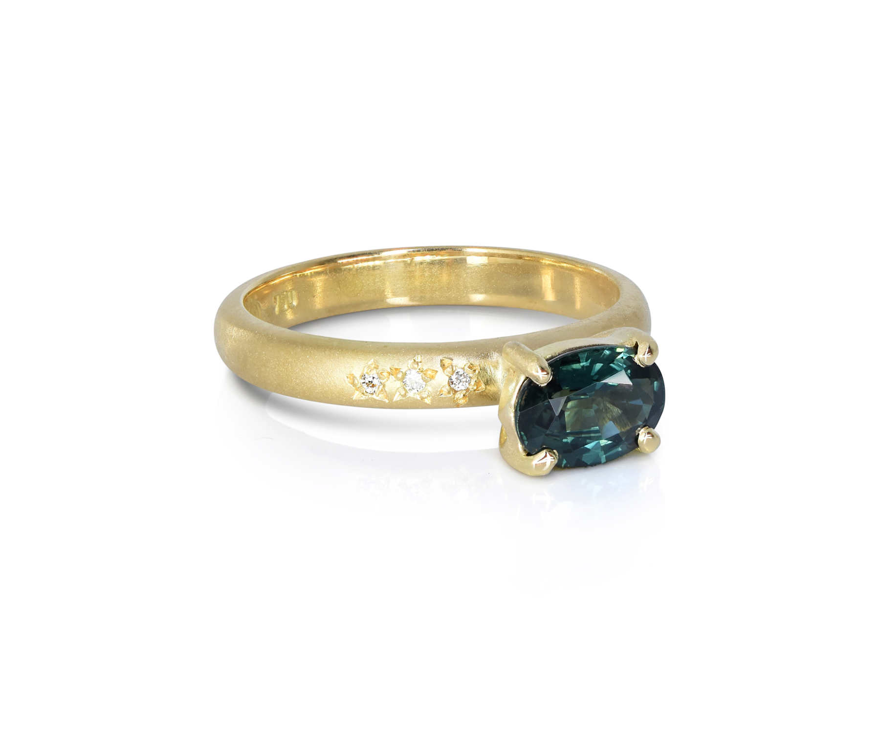 18ct yellow gold, Australian teal sapphire, diamond ring [$4,200]