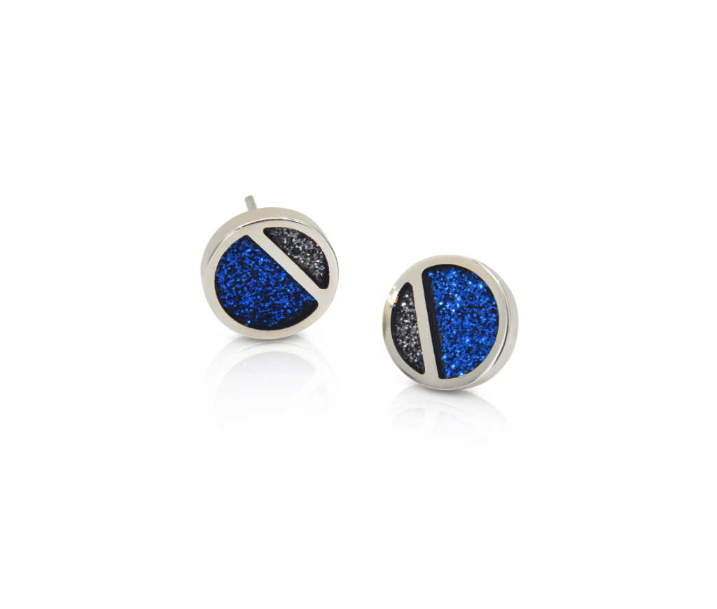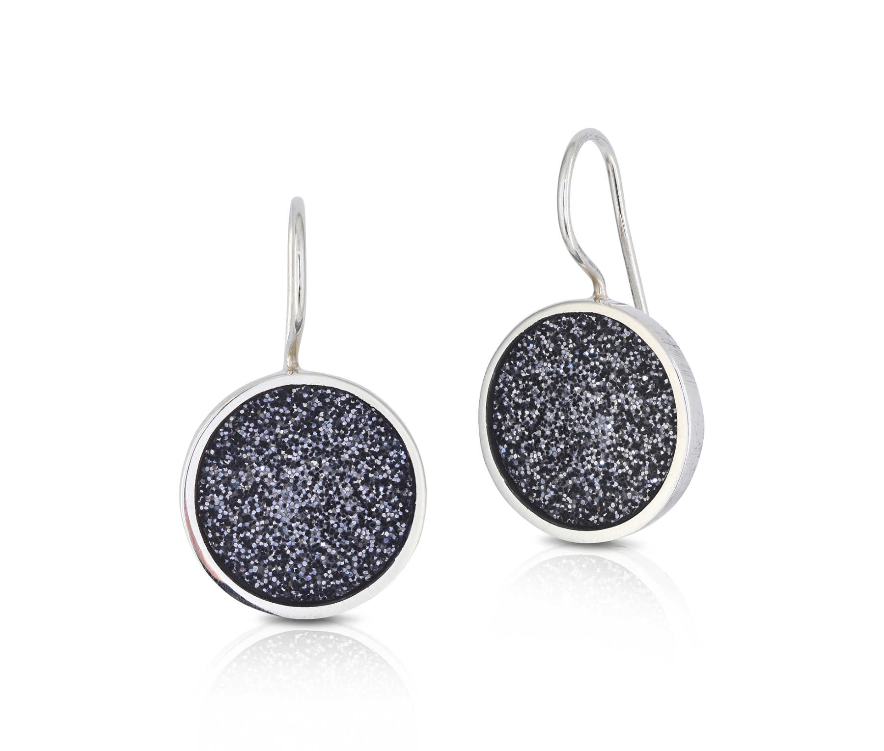 Sterling silver, oxidised, charcoal glitter, resin earrings [7mm diam.] [$240]