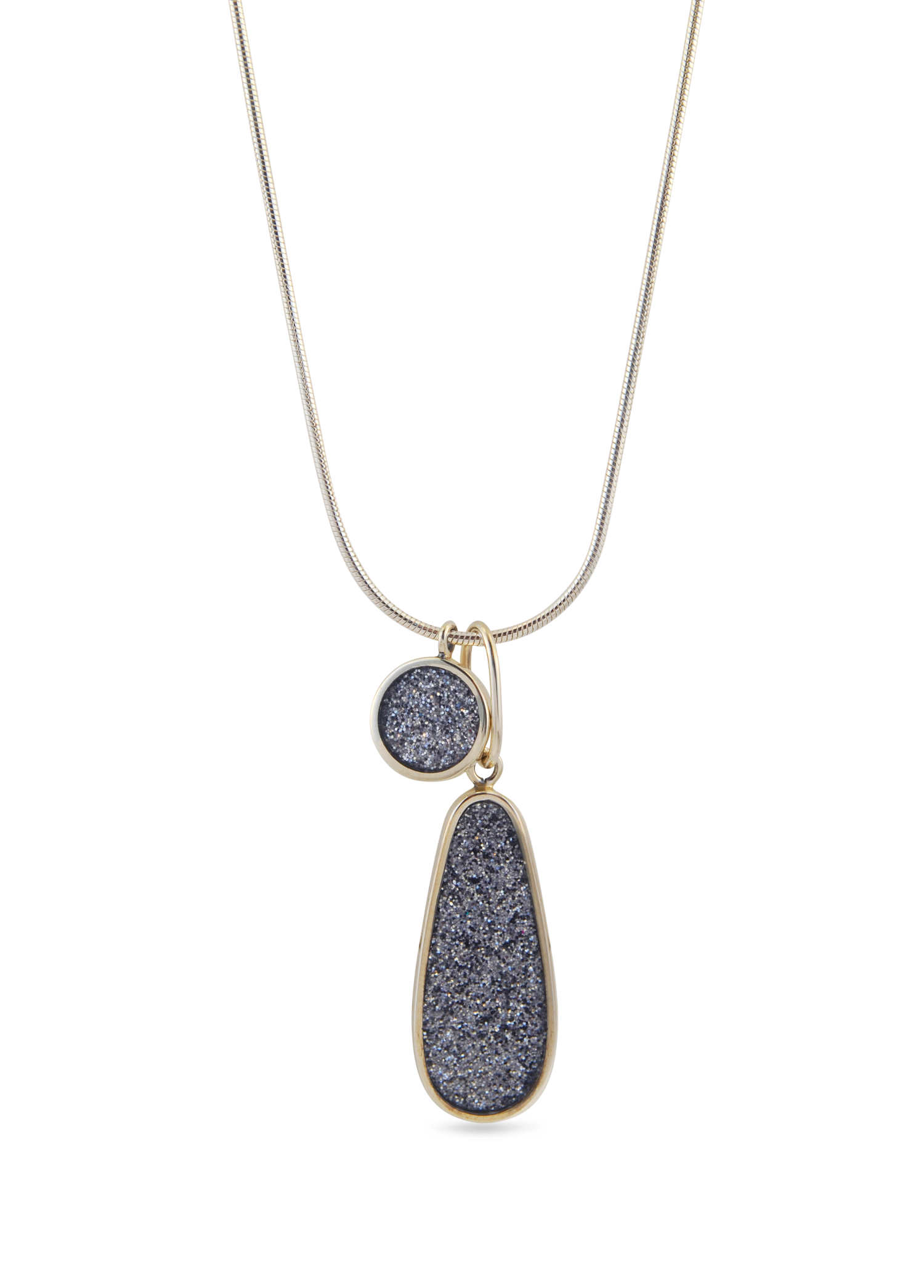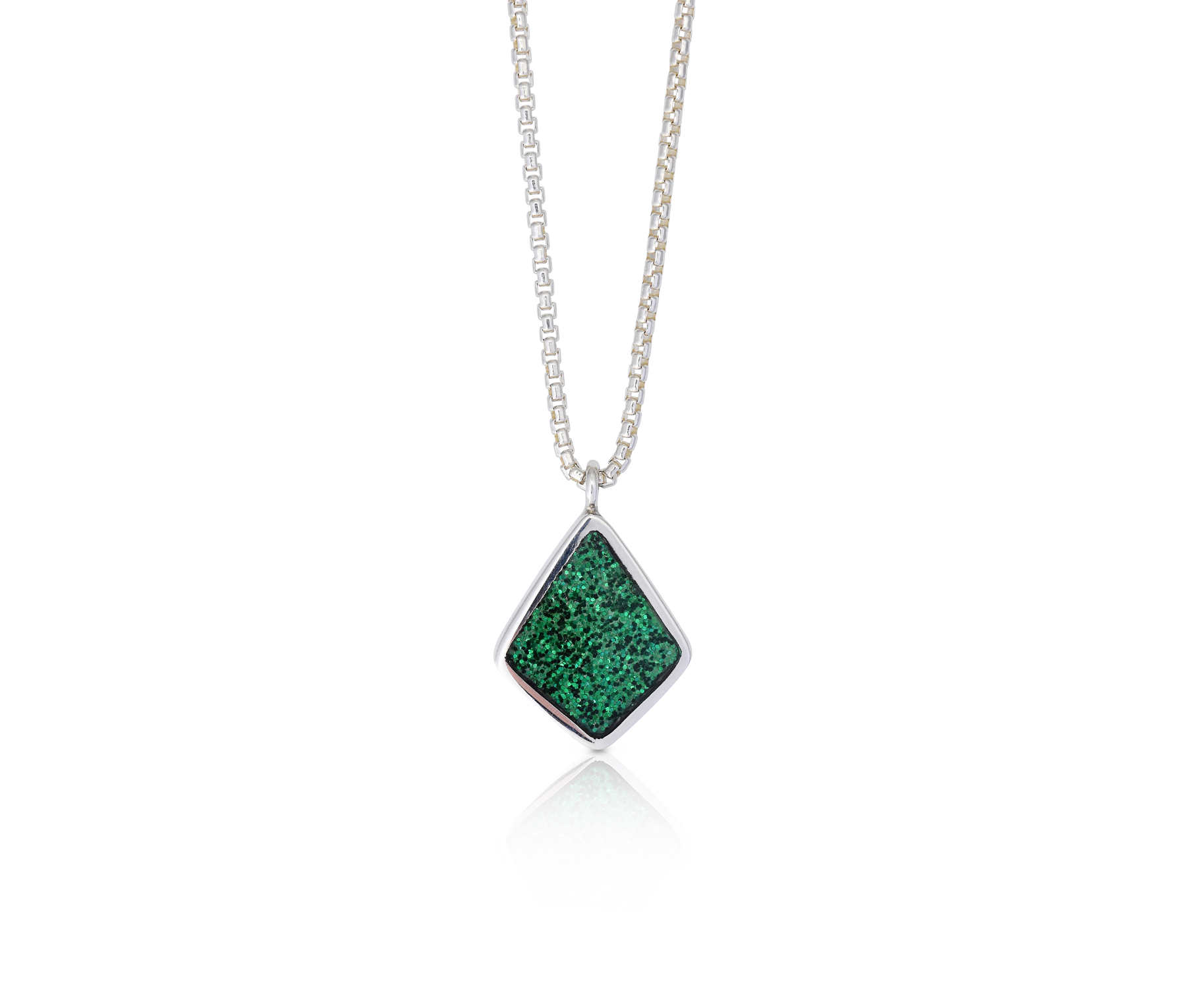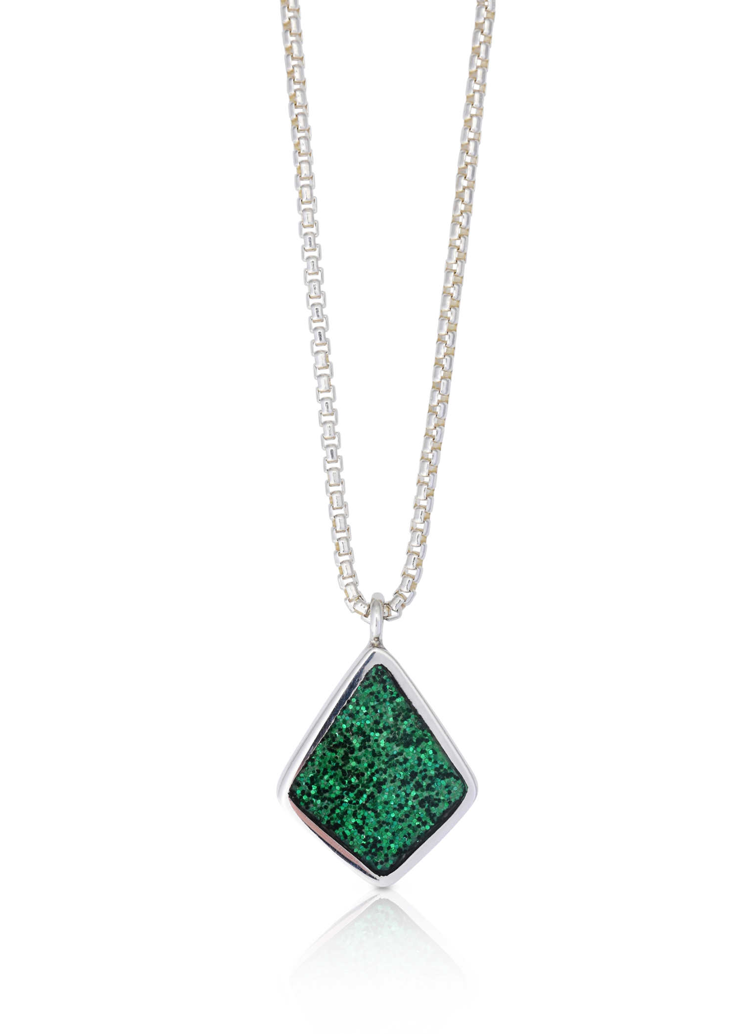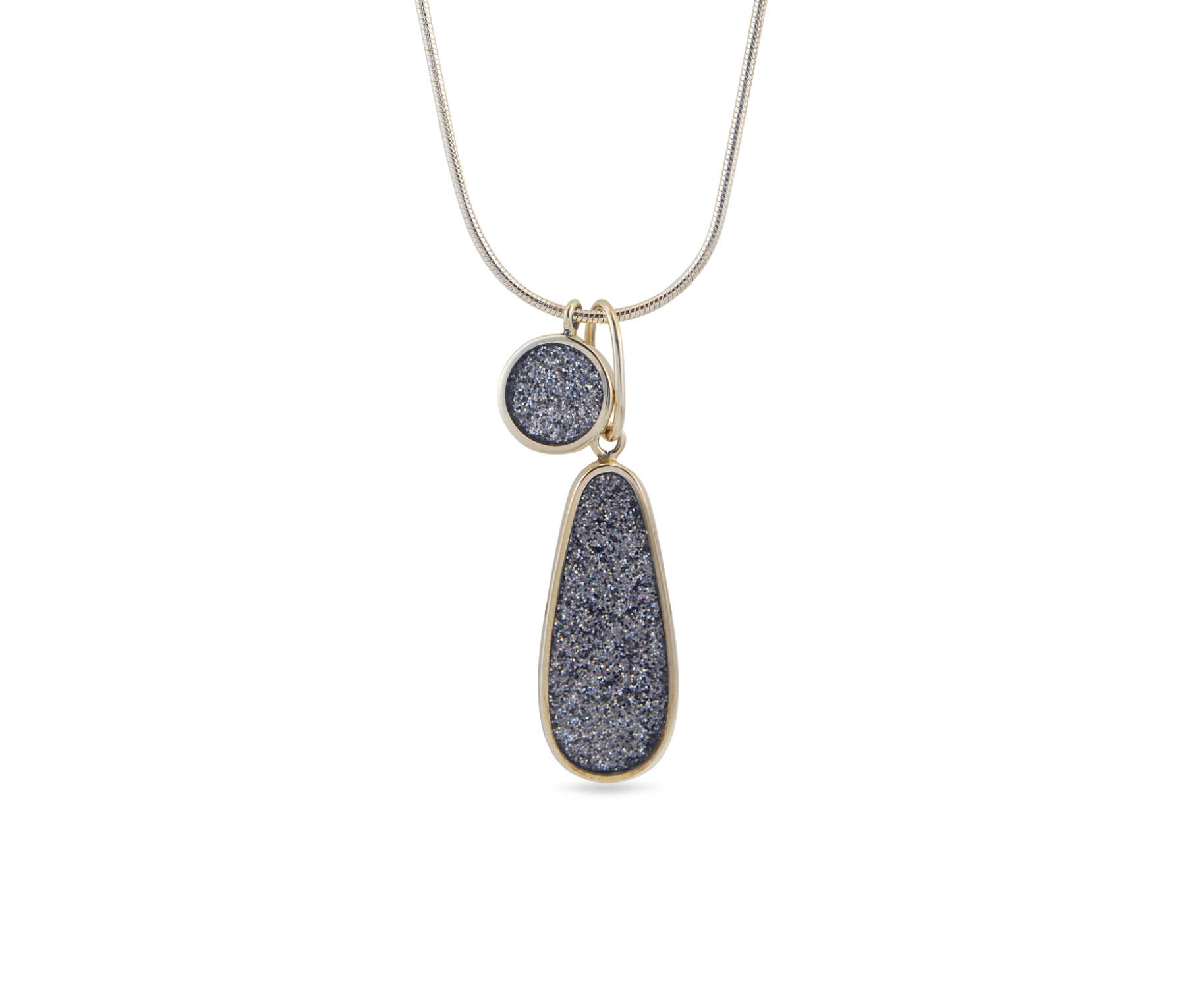 Sterling silver, charcoal and peacock glitter, resin pendant [$420]