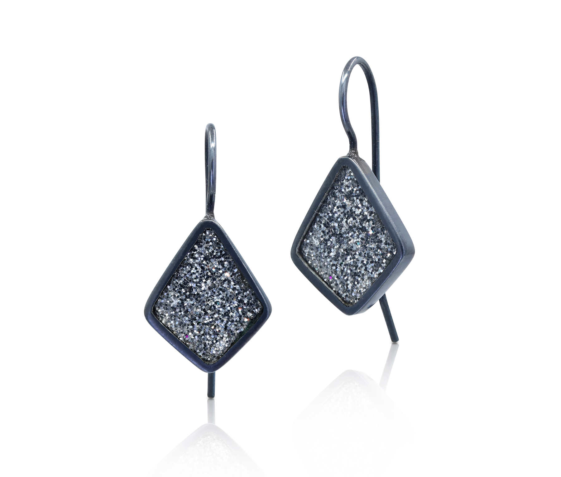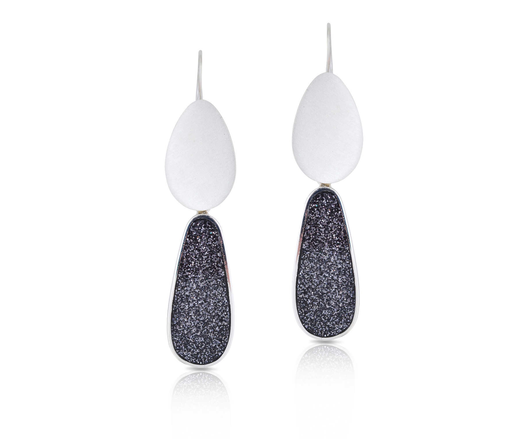 Sterling silver, charcoal glitter, resin earrings [13 x 25mm] [$290]