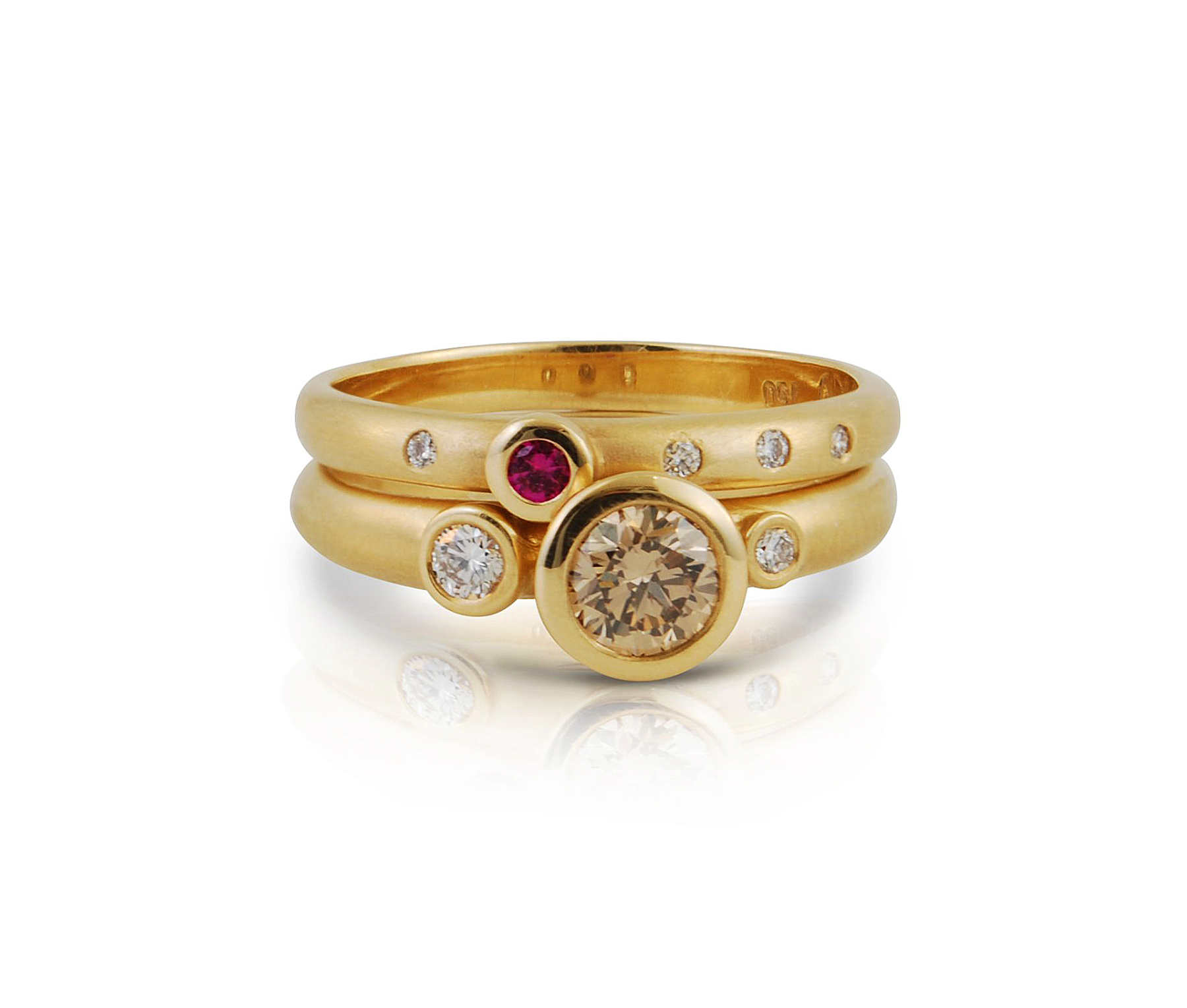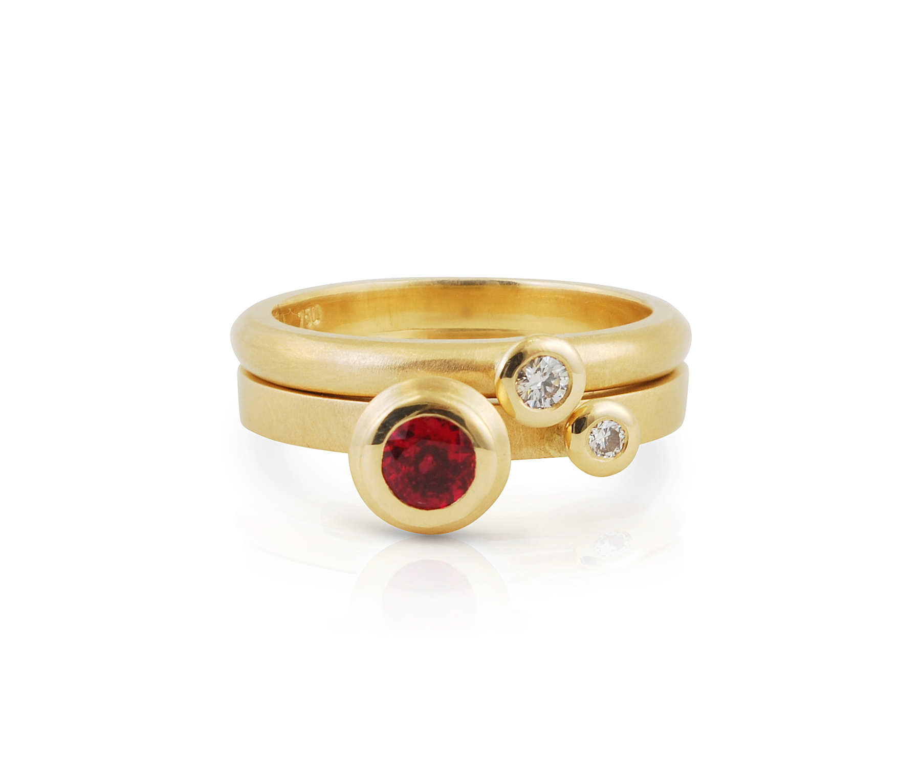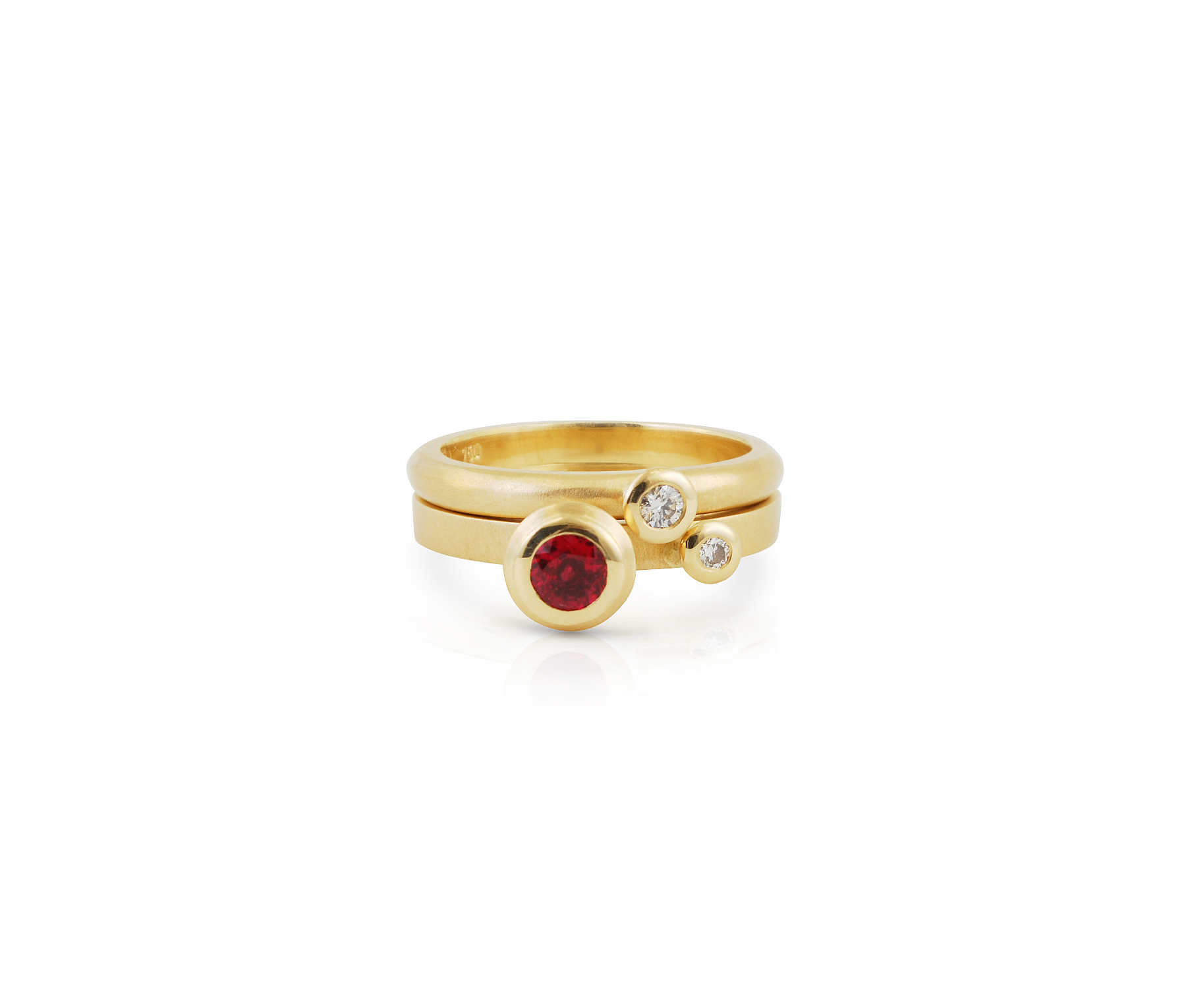 Polka dot 18ct yellow gold, ruby, diamond ring [$4,500]