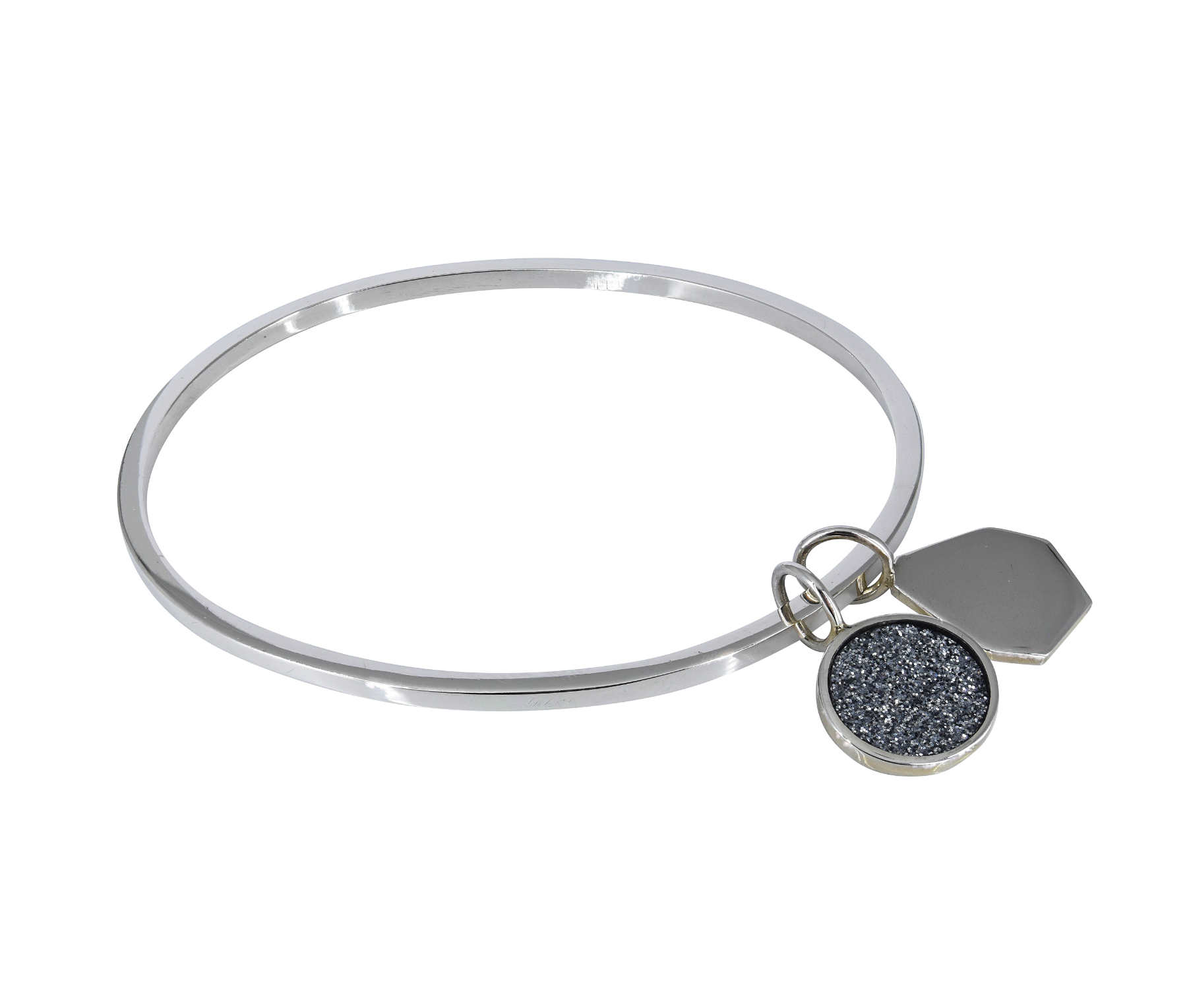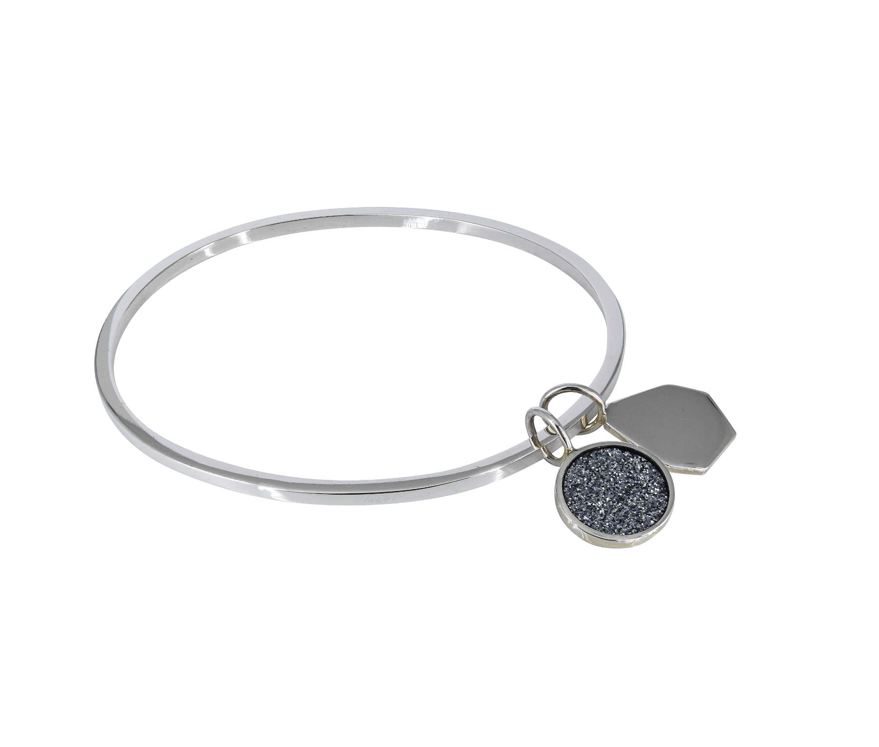 Sterling silver, charcoal glitter, resin bangle [2.5mm square wire, 60 x 70mm] [$495]