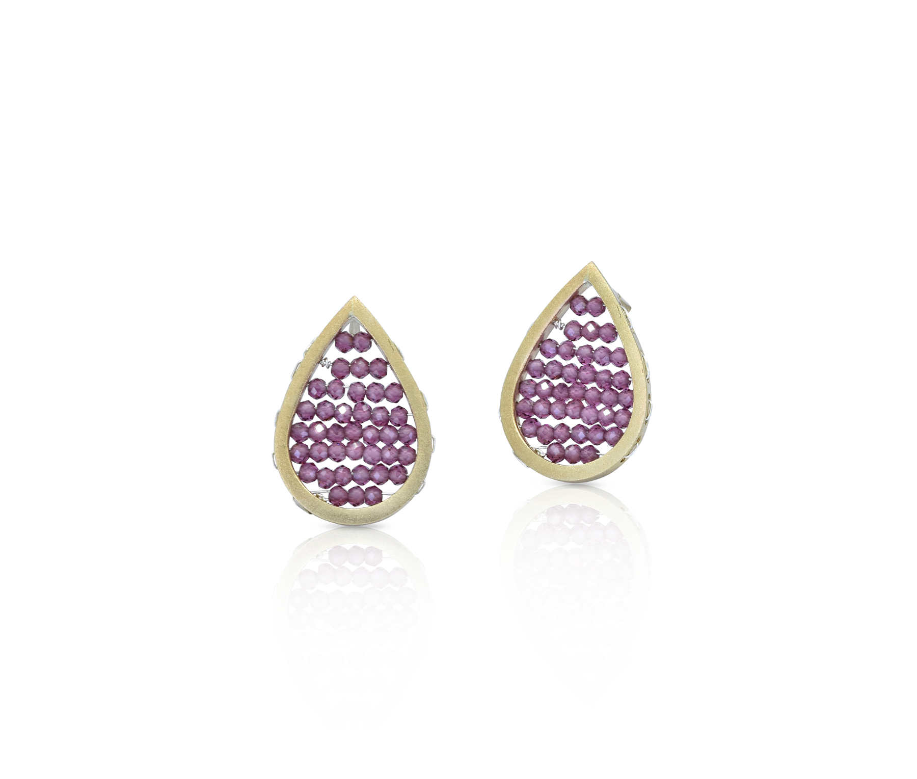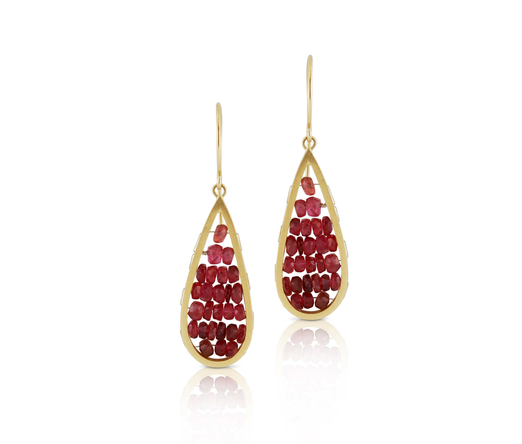 18ct yellow gold, pink tourmaline faceted beads, pear shaped hook earrings [] [$1,795]