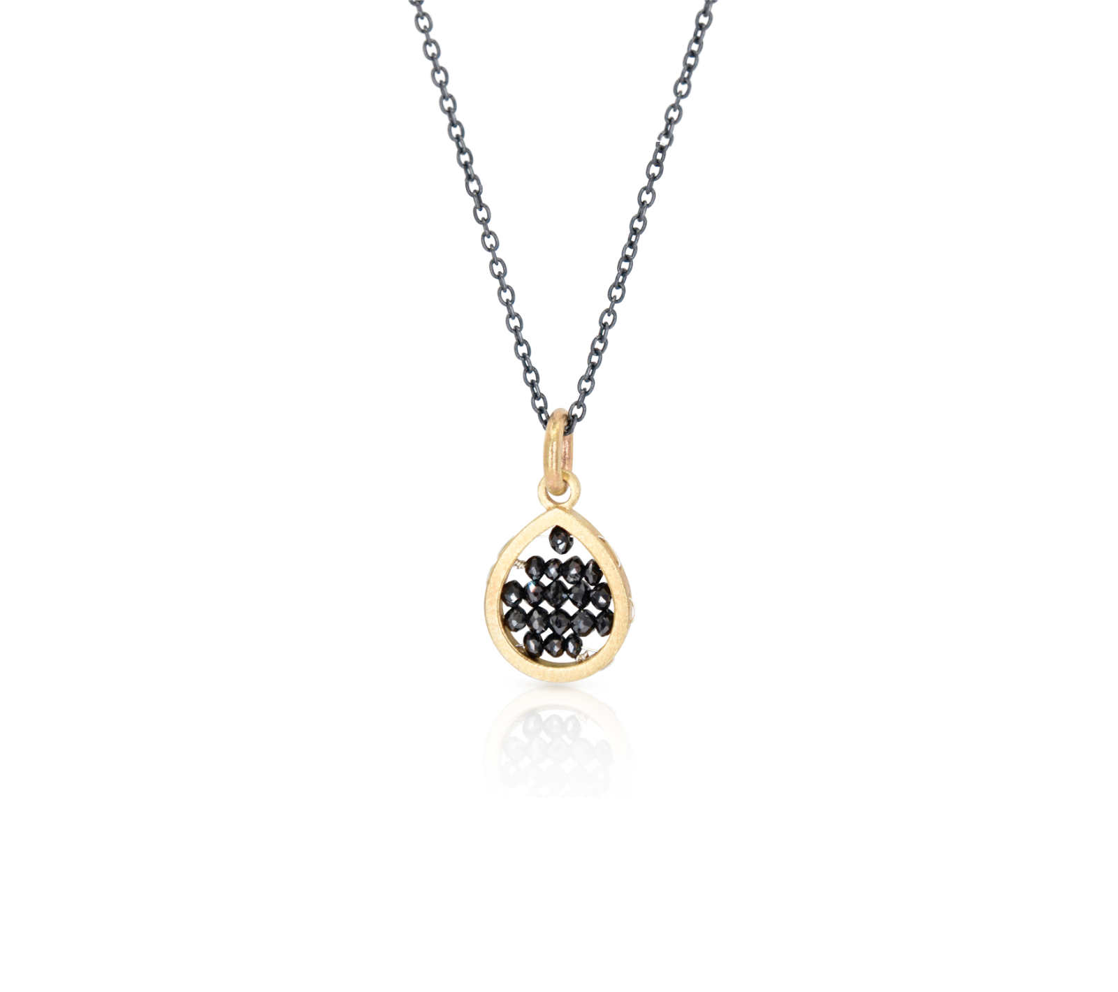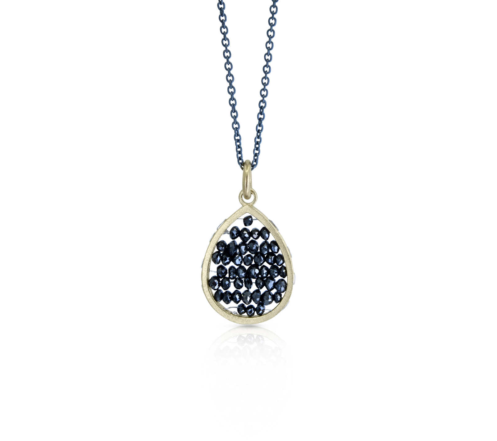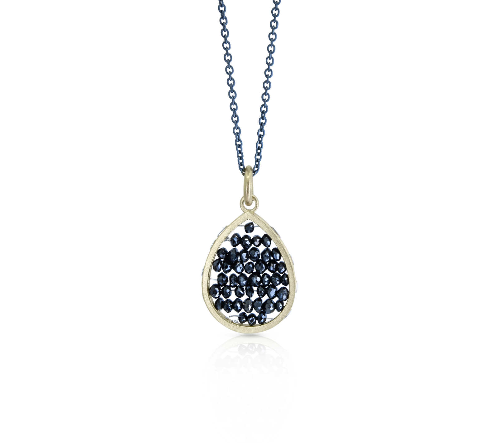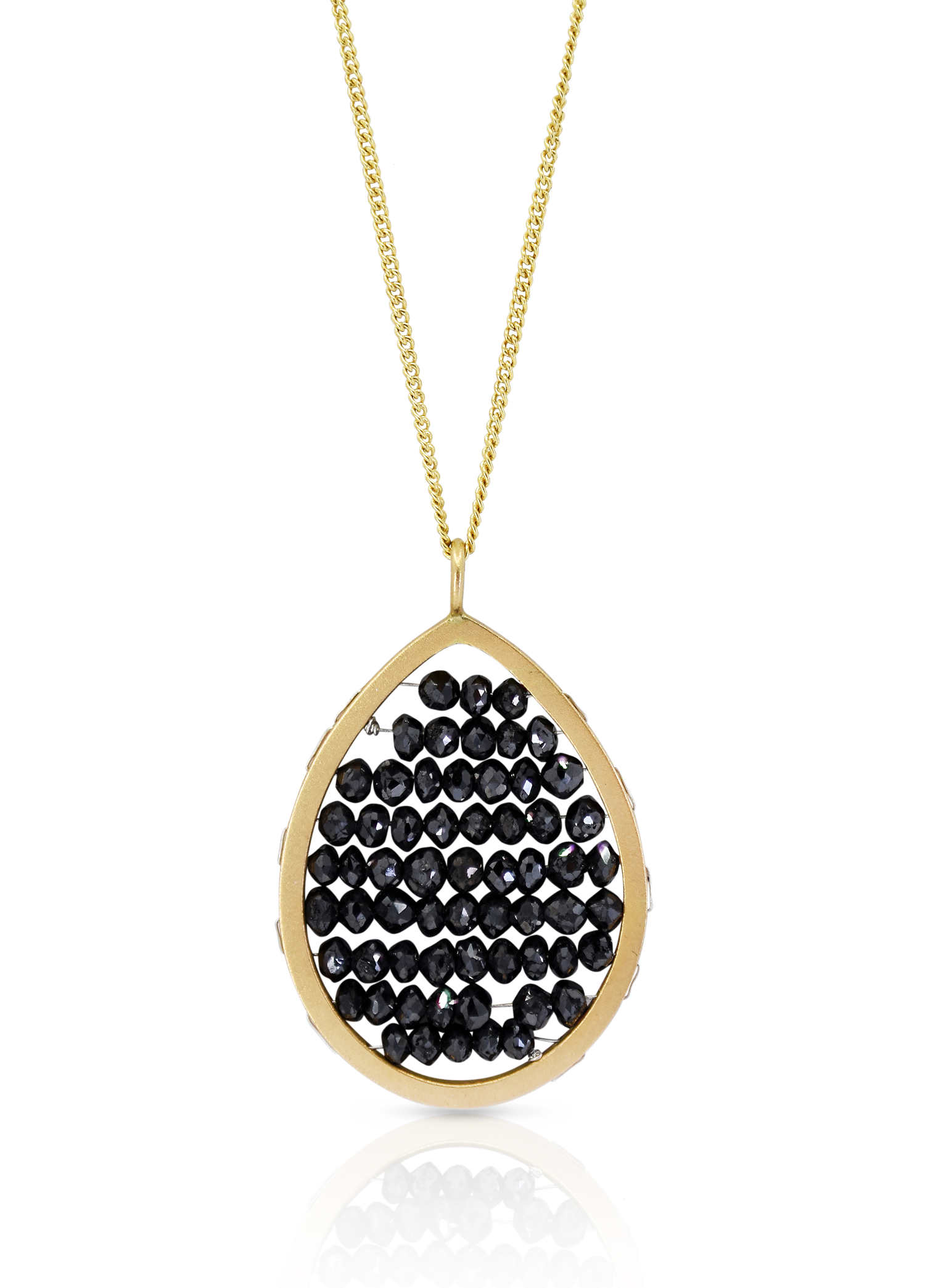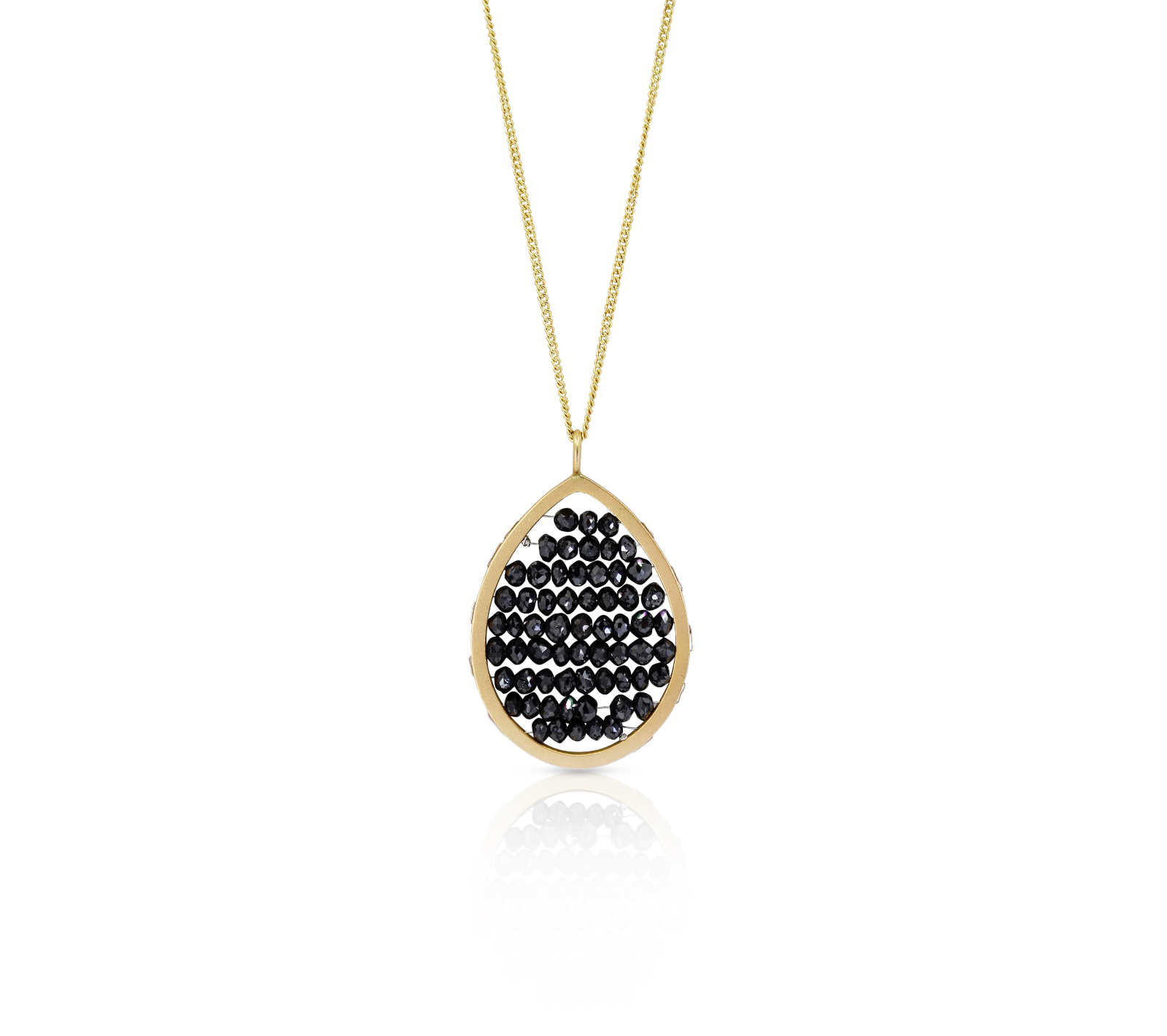 18ct yellow gold, faceted black diamond beads, pear shape pendant [] [$2,285]