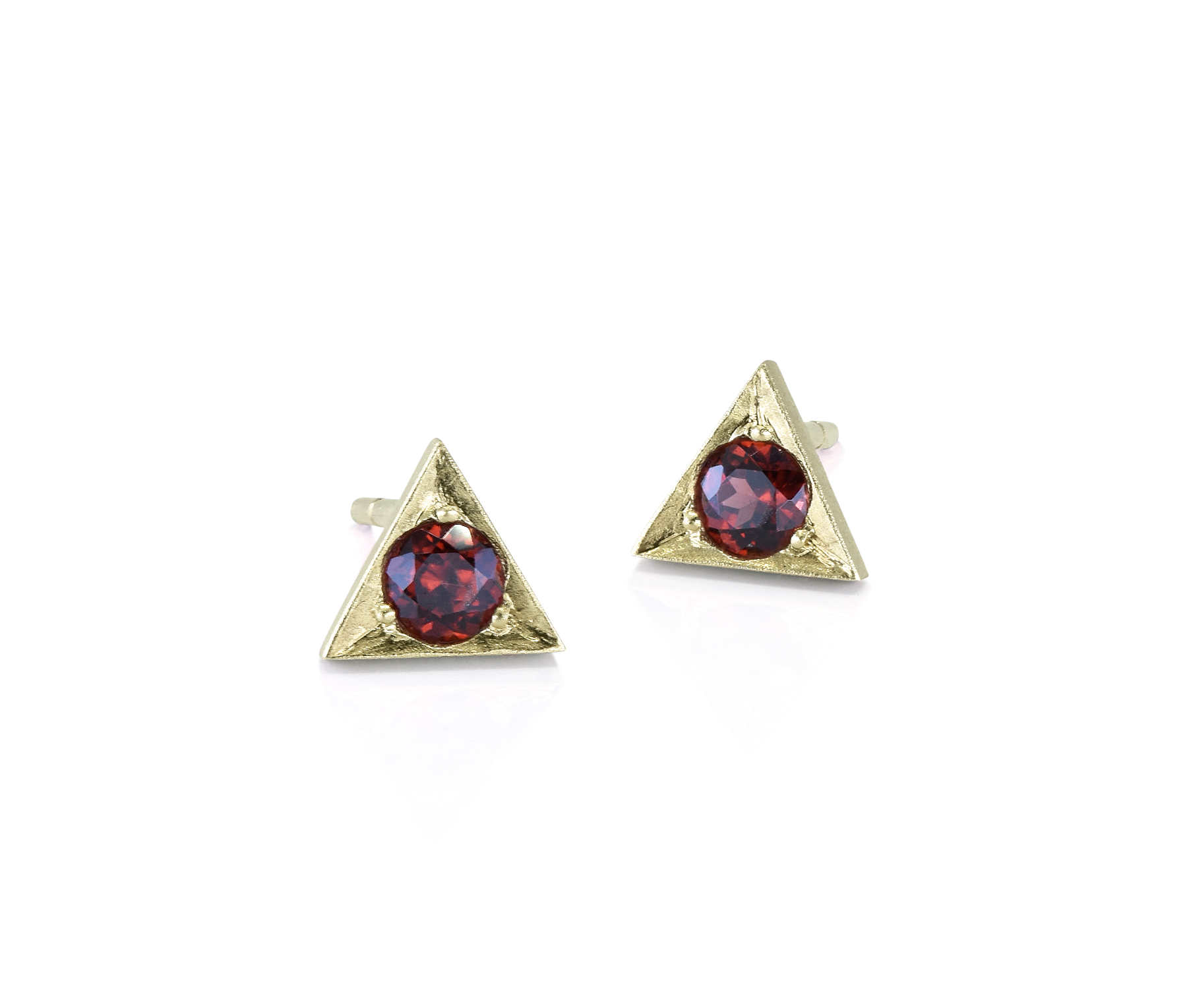 9ct yellow gold, almandine garnet stud earrings [6.3 x 7.3mm] [$620]