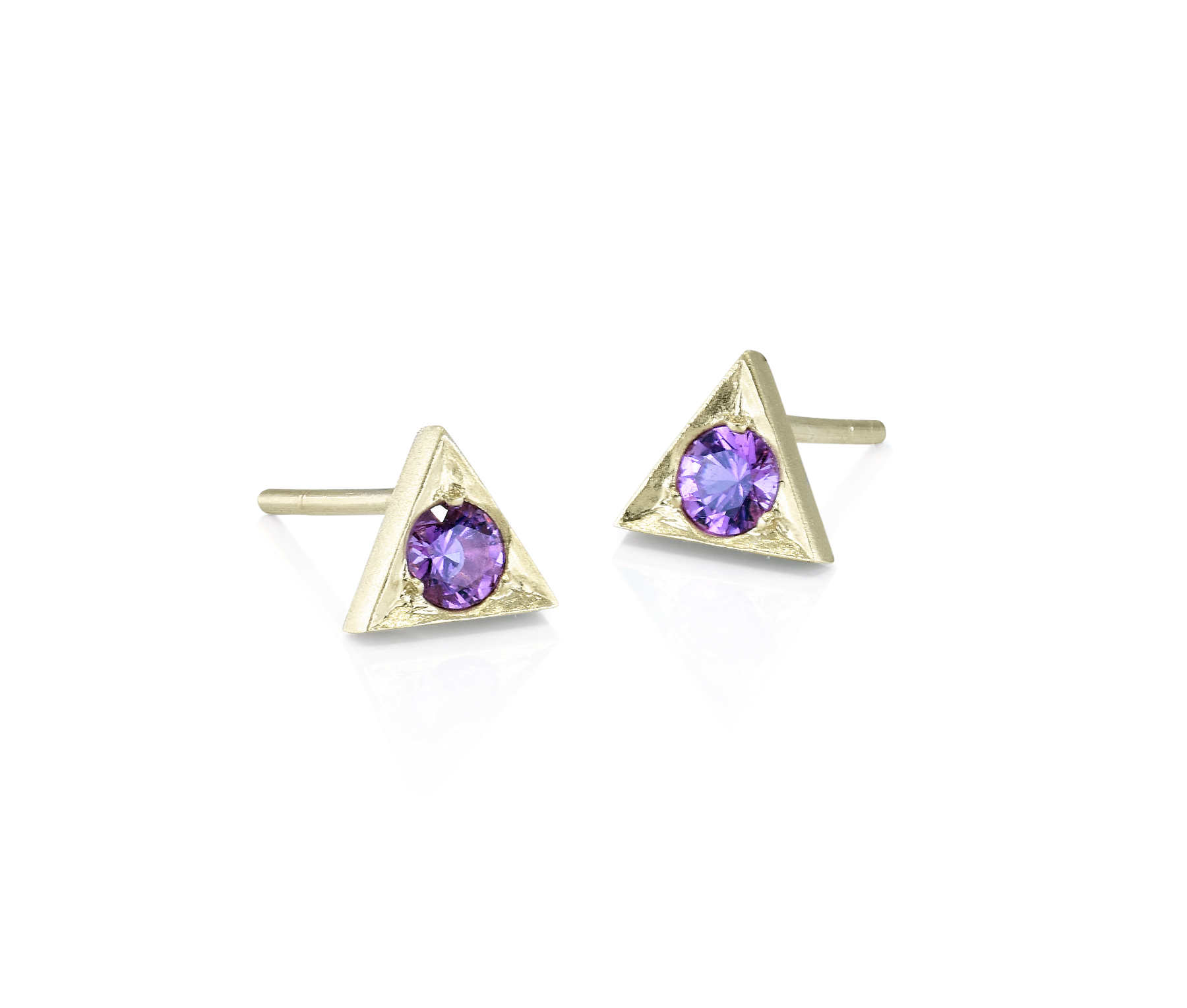 9ct yellow gold, pink sapphire stud earrings [6.3 x 7.3mm] [$1,040]