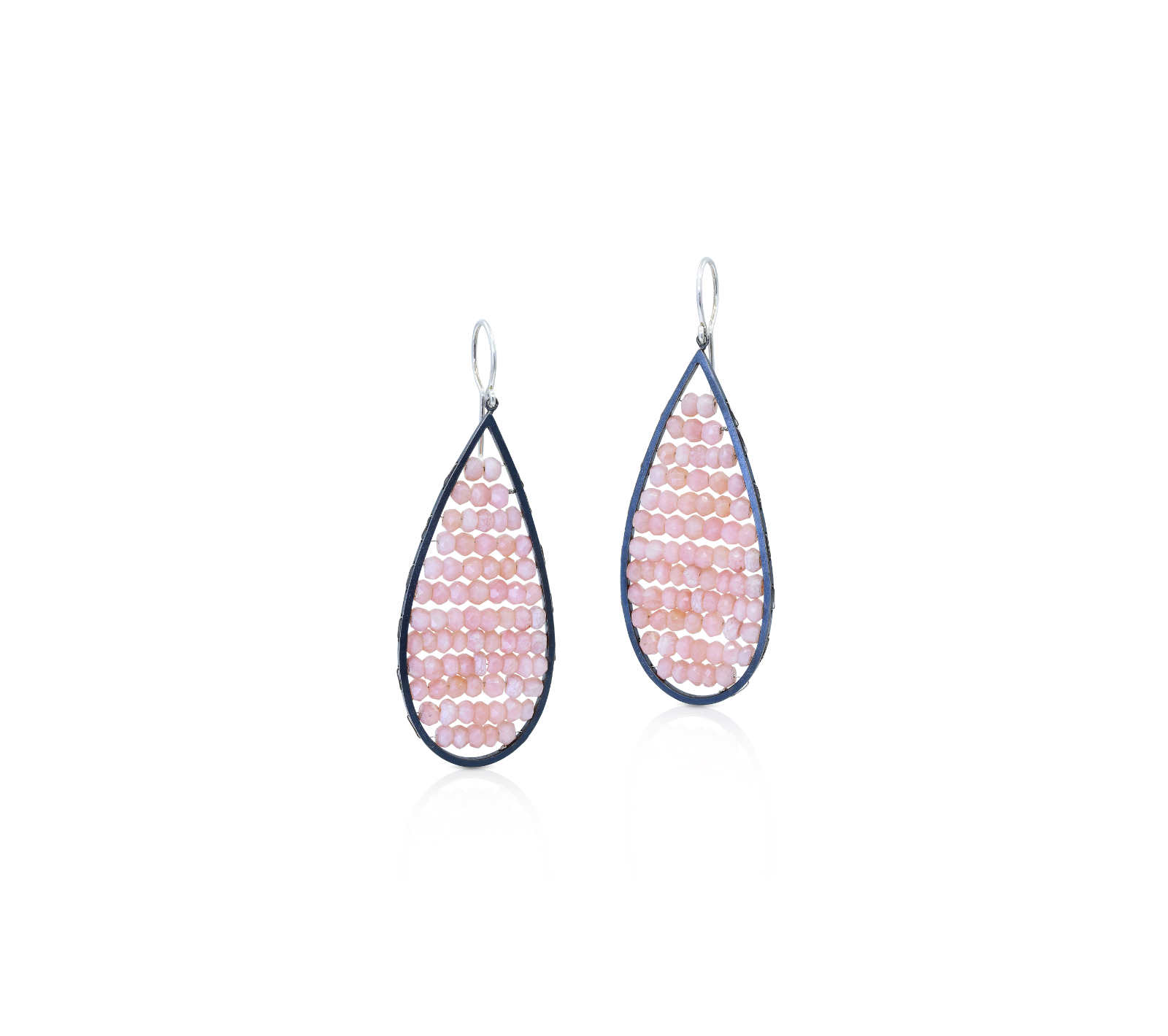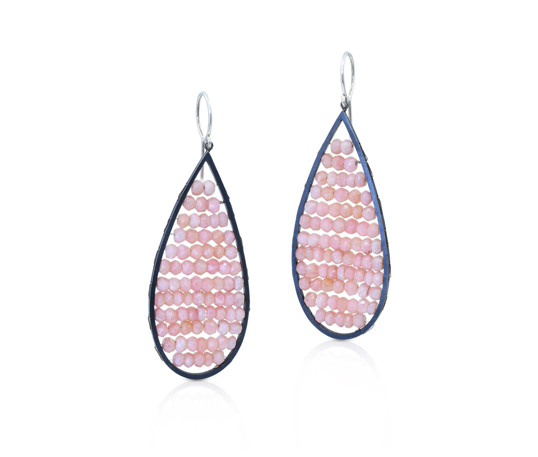 Oxidised sterling silver, Peruvian opal bead hook earrings [69.92 x 25.60mm] [$620]