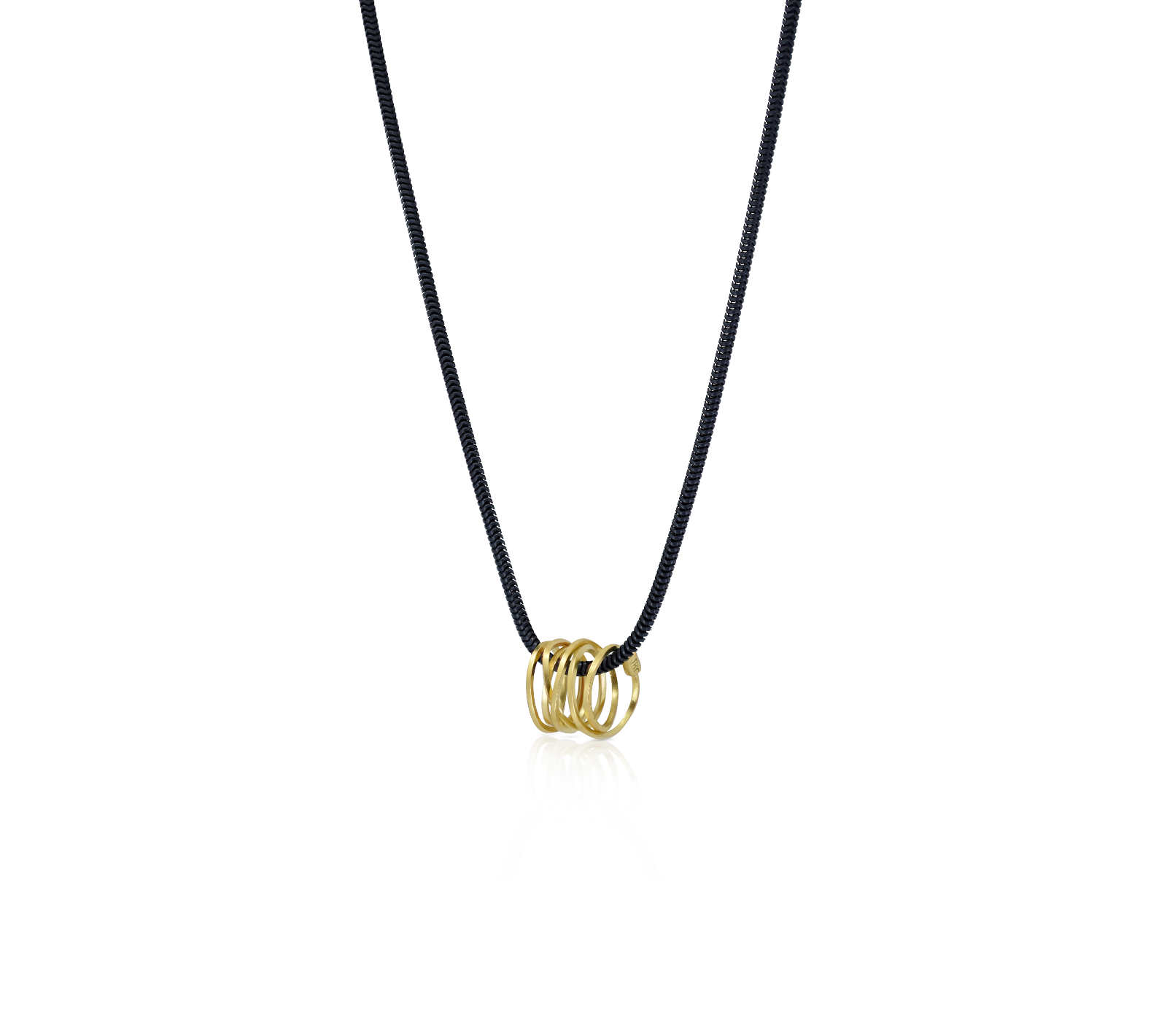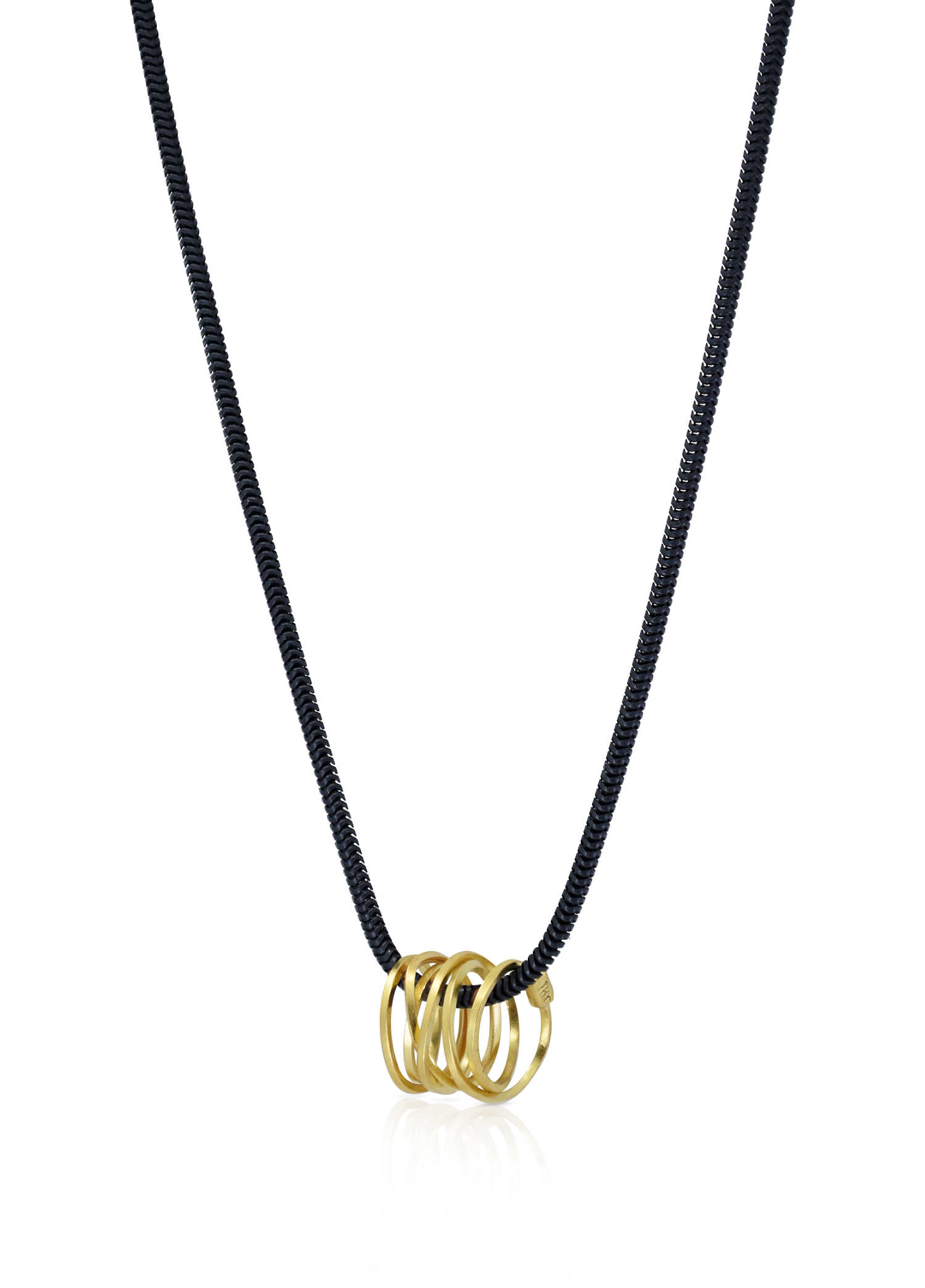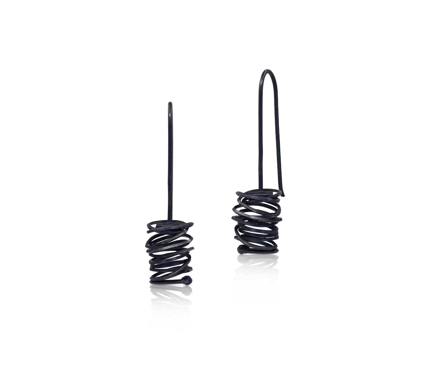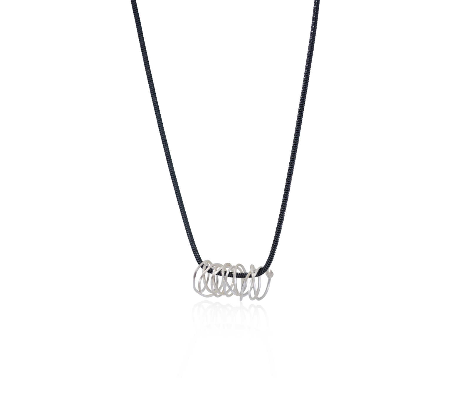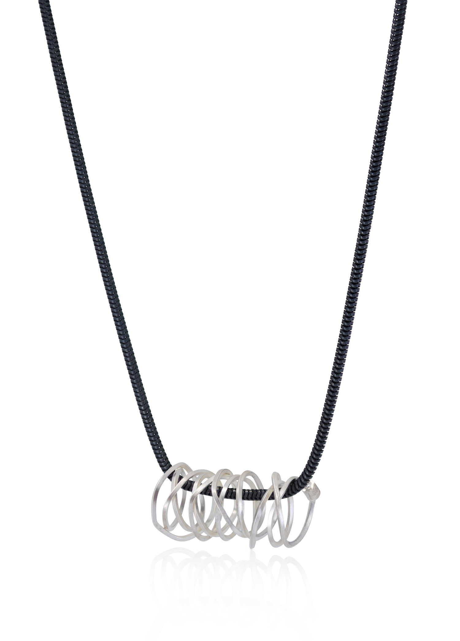 Oxidised sterling silver, silver pendant [9x21mm coil, 45cm snake chain] [$200]