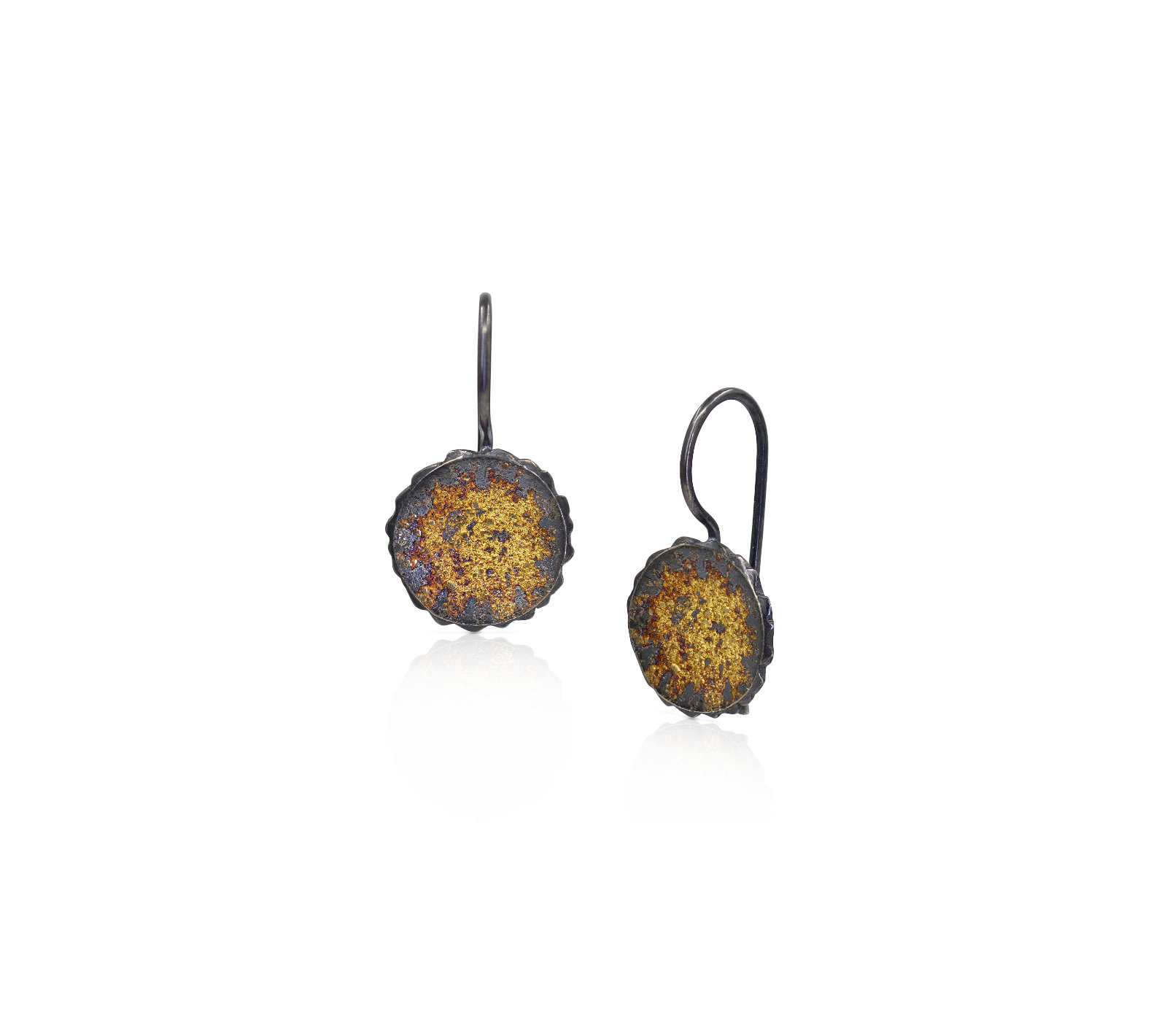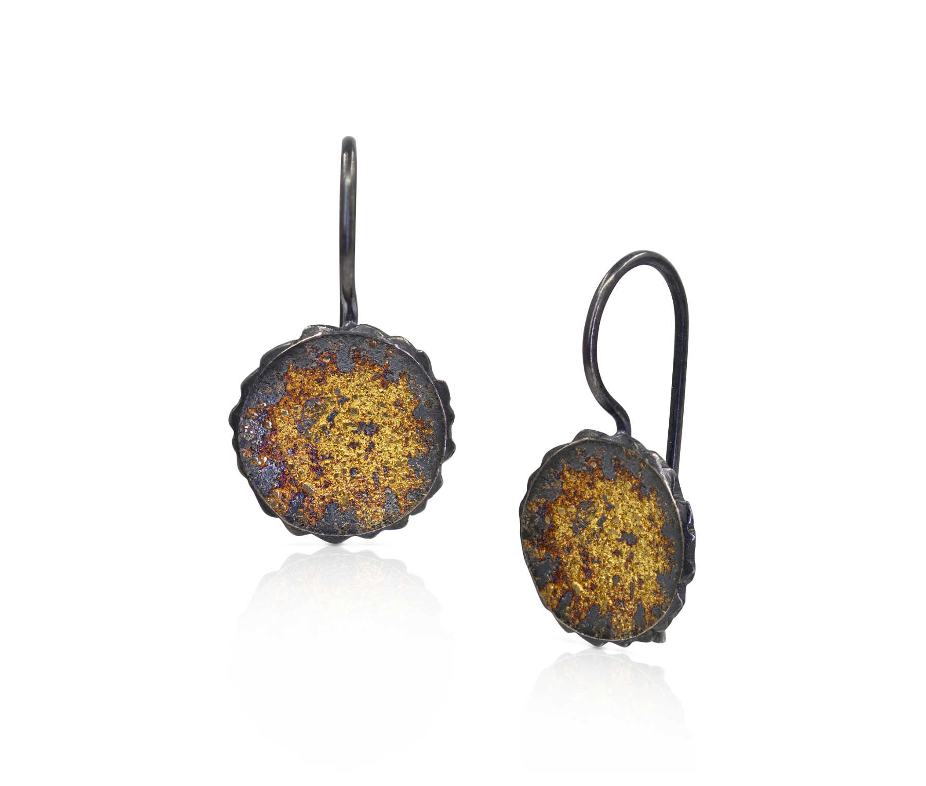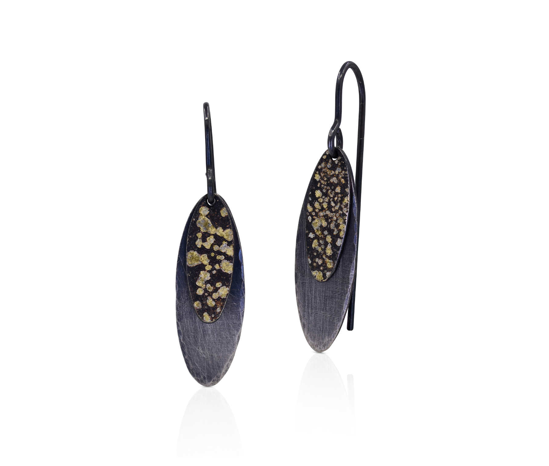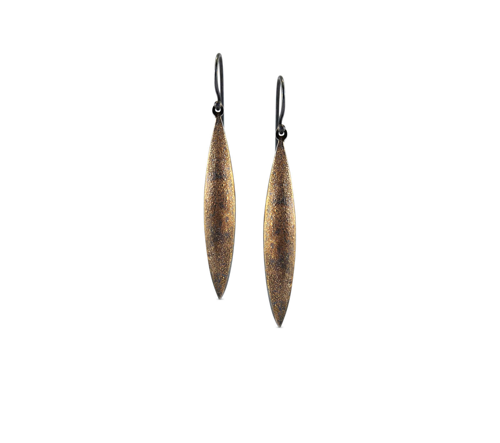 Oxidised sterling silver, 18ct yellow gold frosting hook earrings [10 x 28mm] [$POA]
