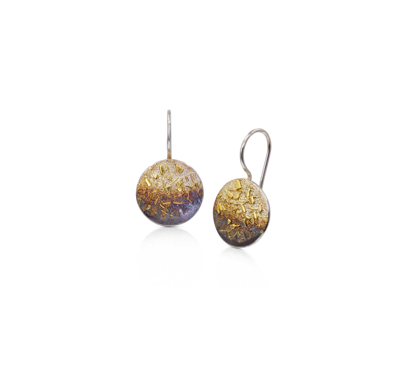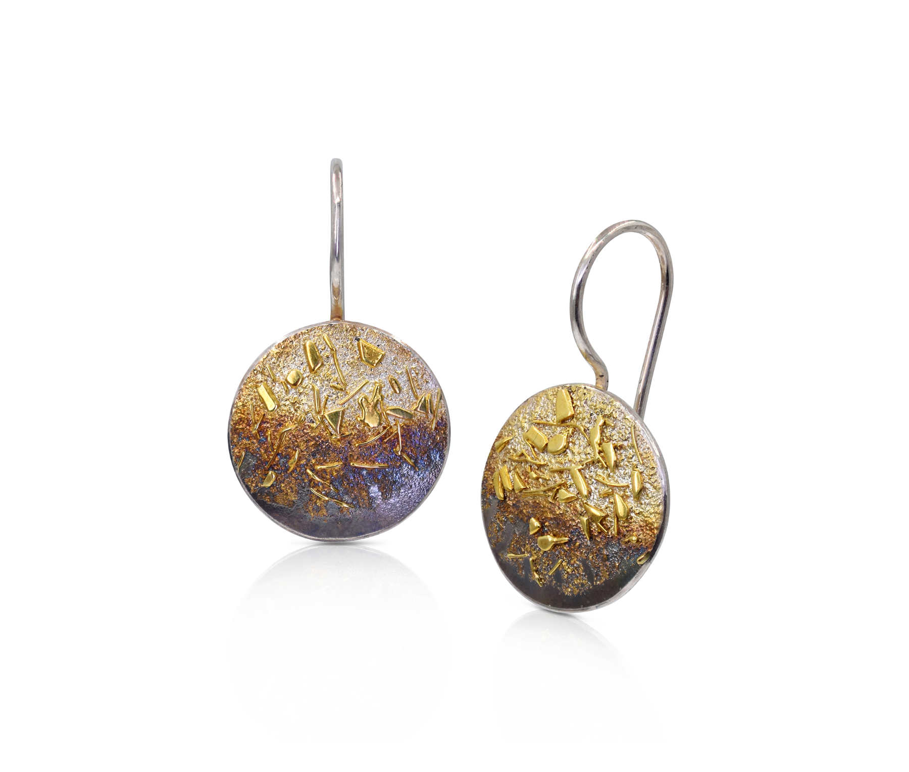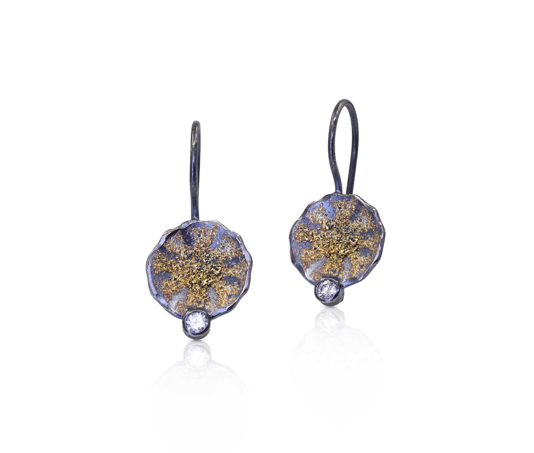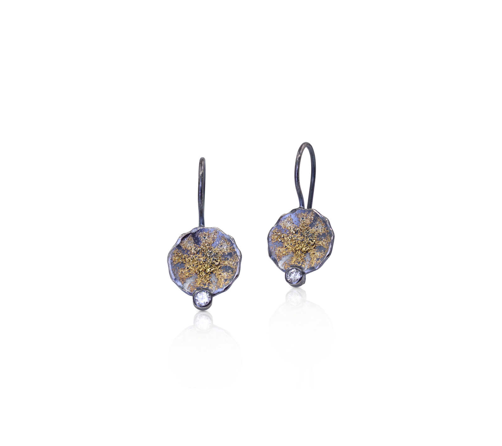 Oxidised sterling silver, 18ct yellow gold frosting hook earrings [10 x 28mm] [$POA]