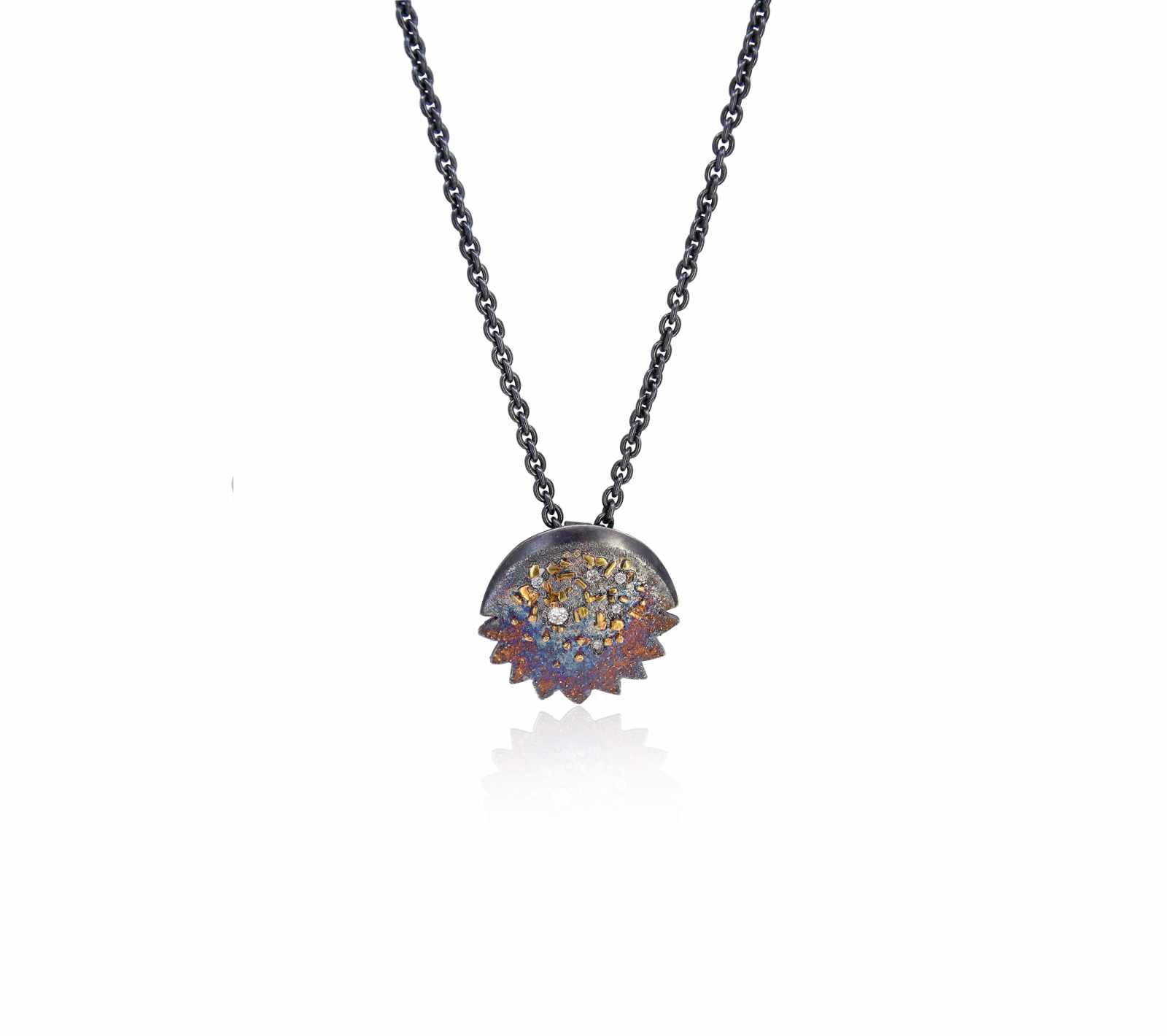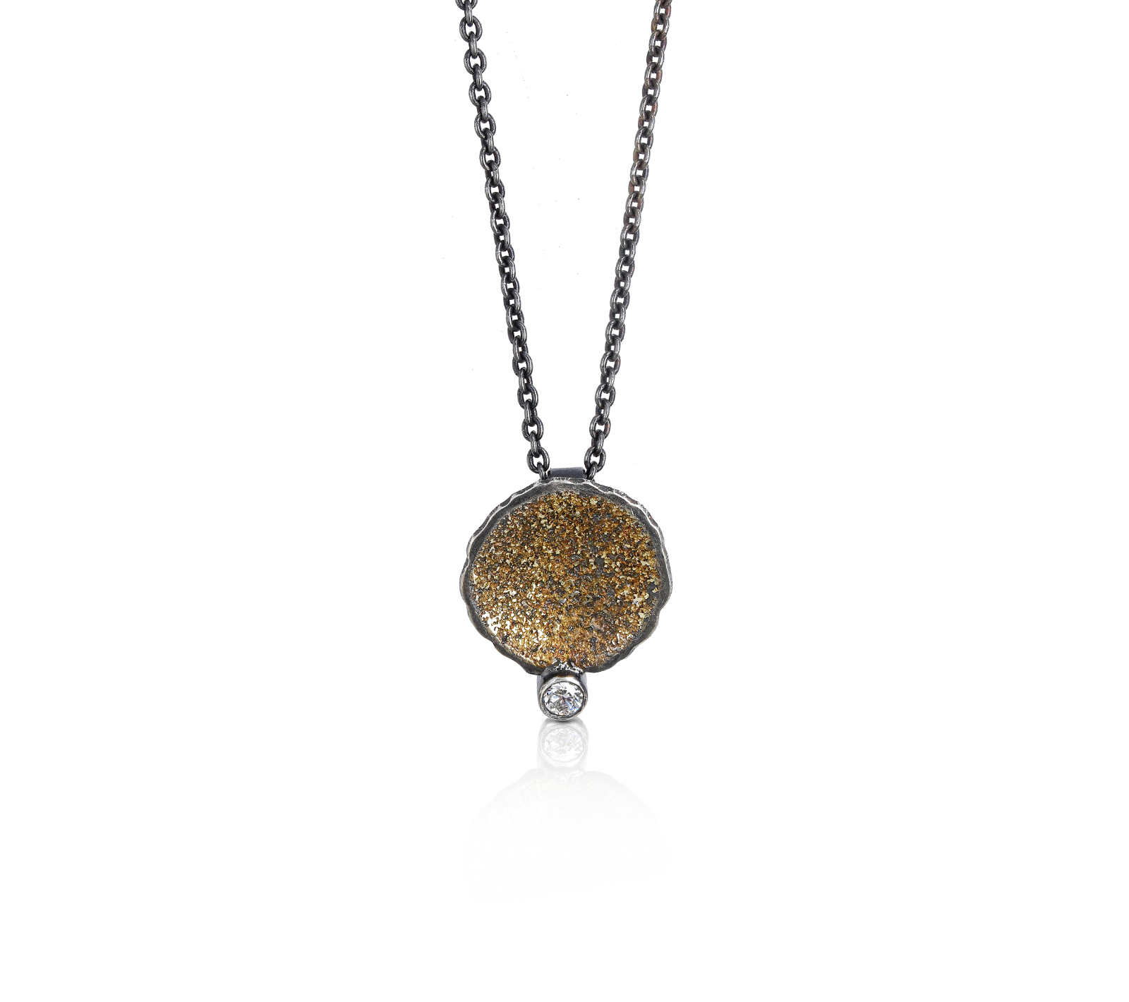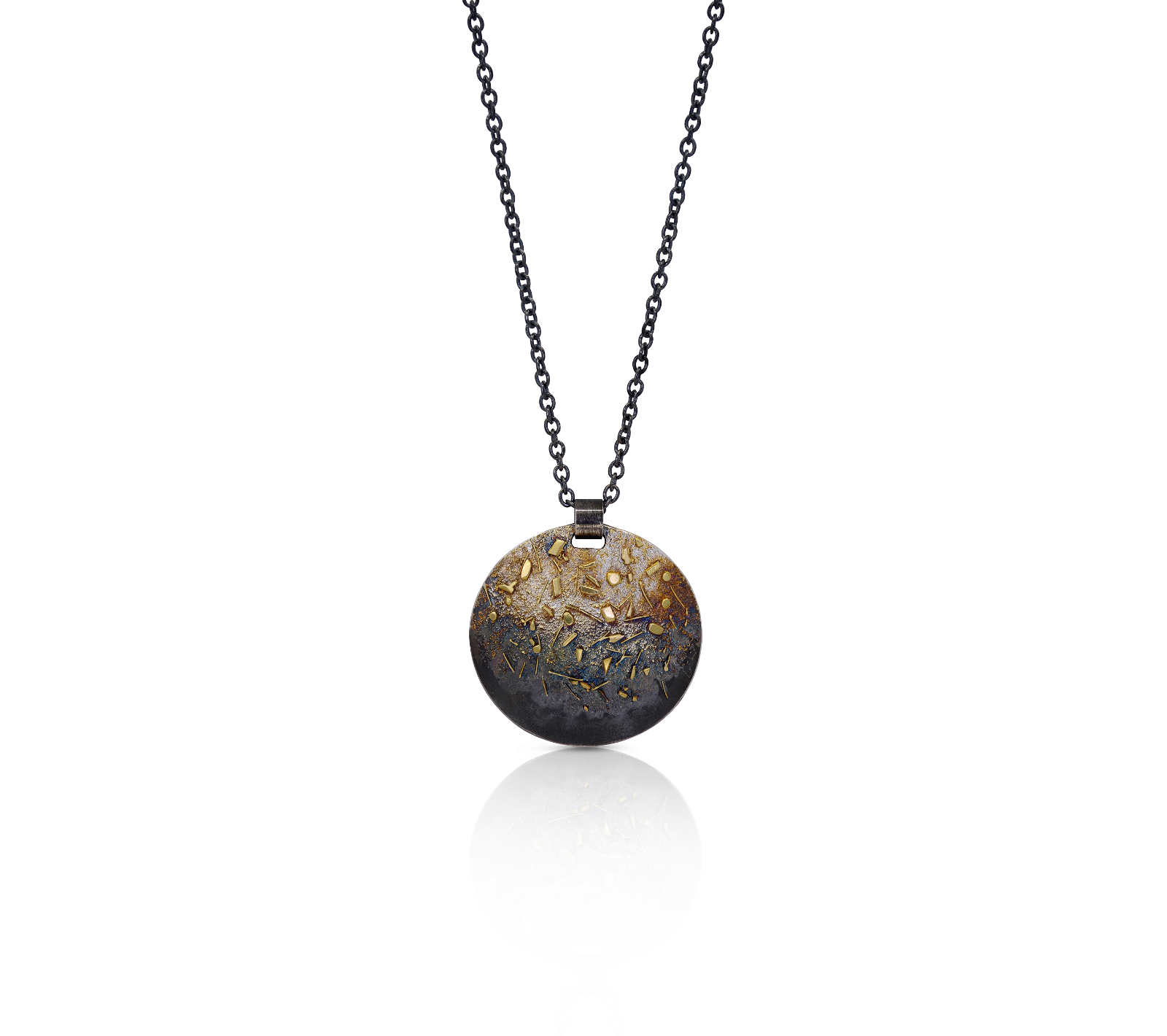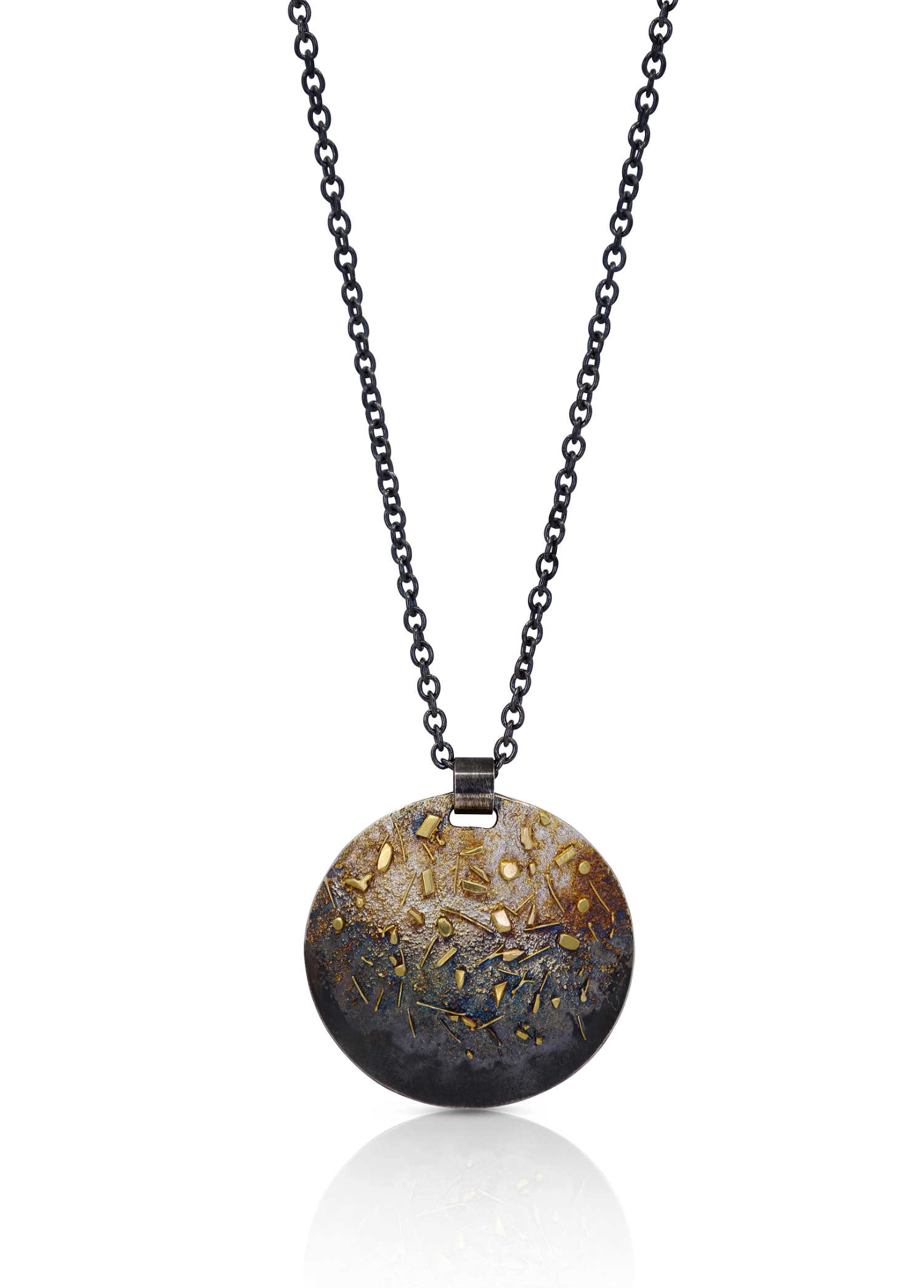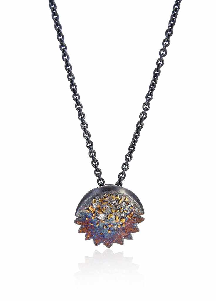 Oxidised sterling silver, 18ct yellow gold frosting pendant [40 x 41.7mm, adjustable chain 45-50cm ] [$POA]