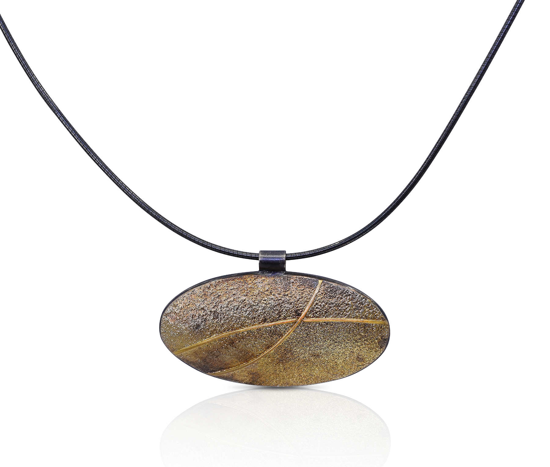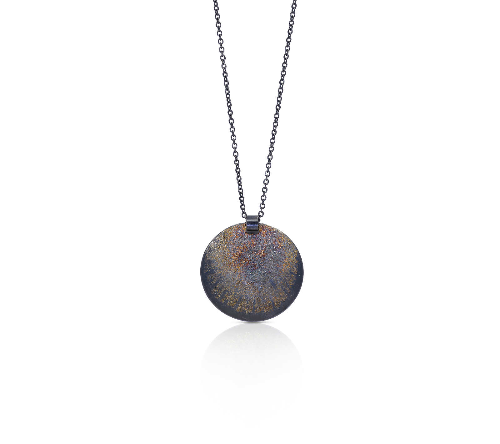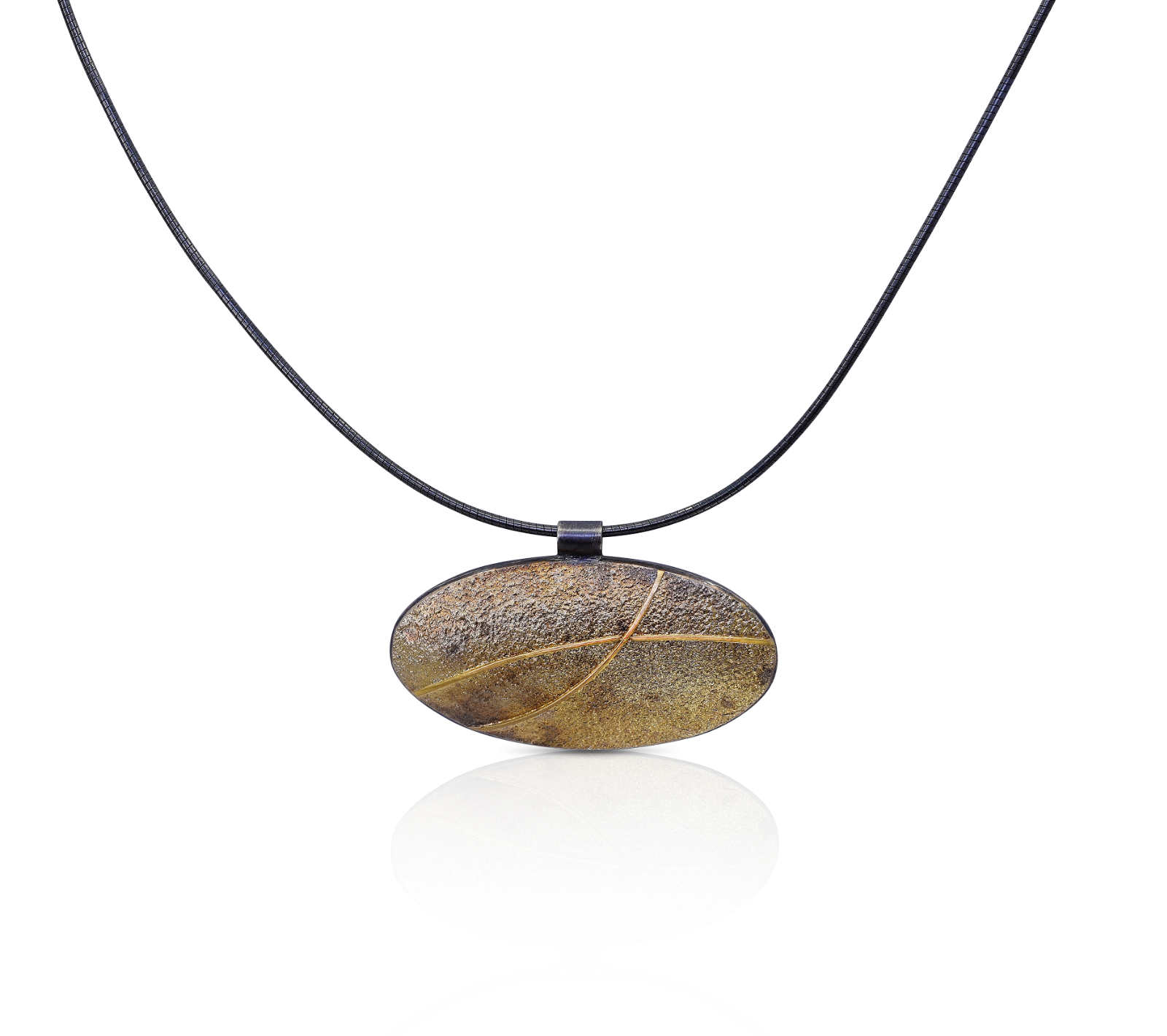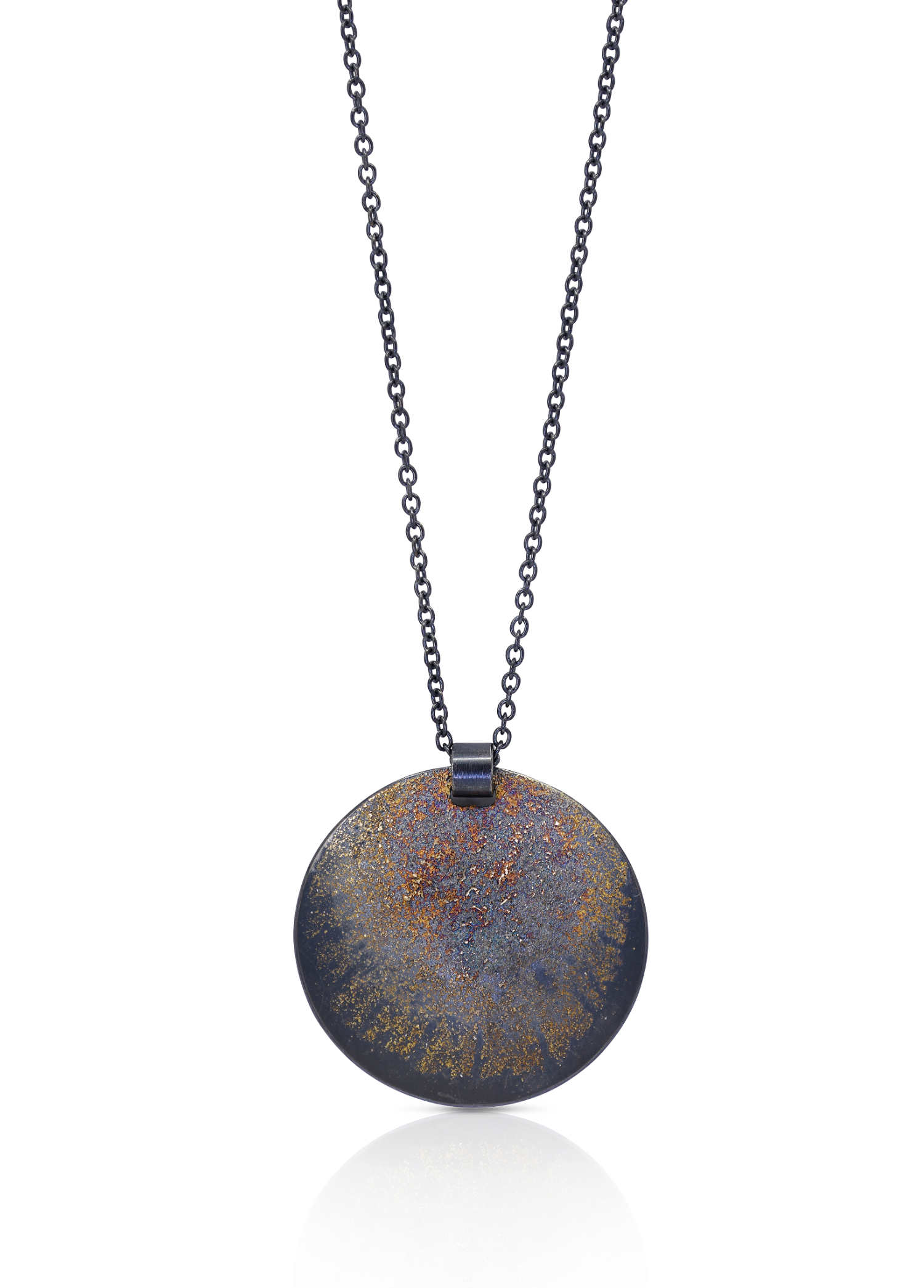 Oxidised sterling silver, 18ct yellow gold frosting pendant [40 x 41.7mm, adjustable chain 45-50cm ] [$POA]