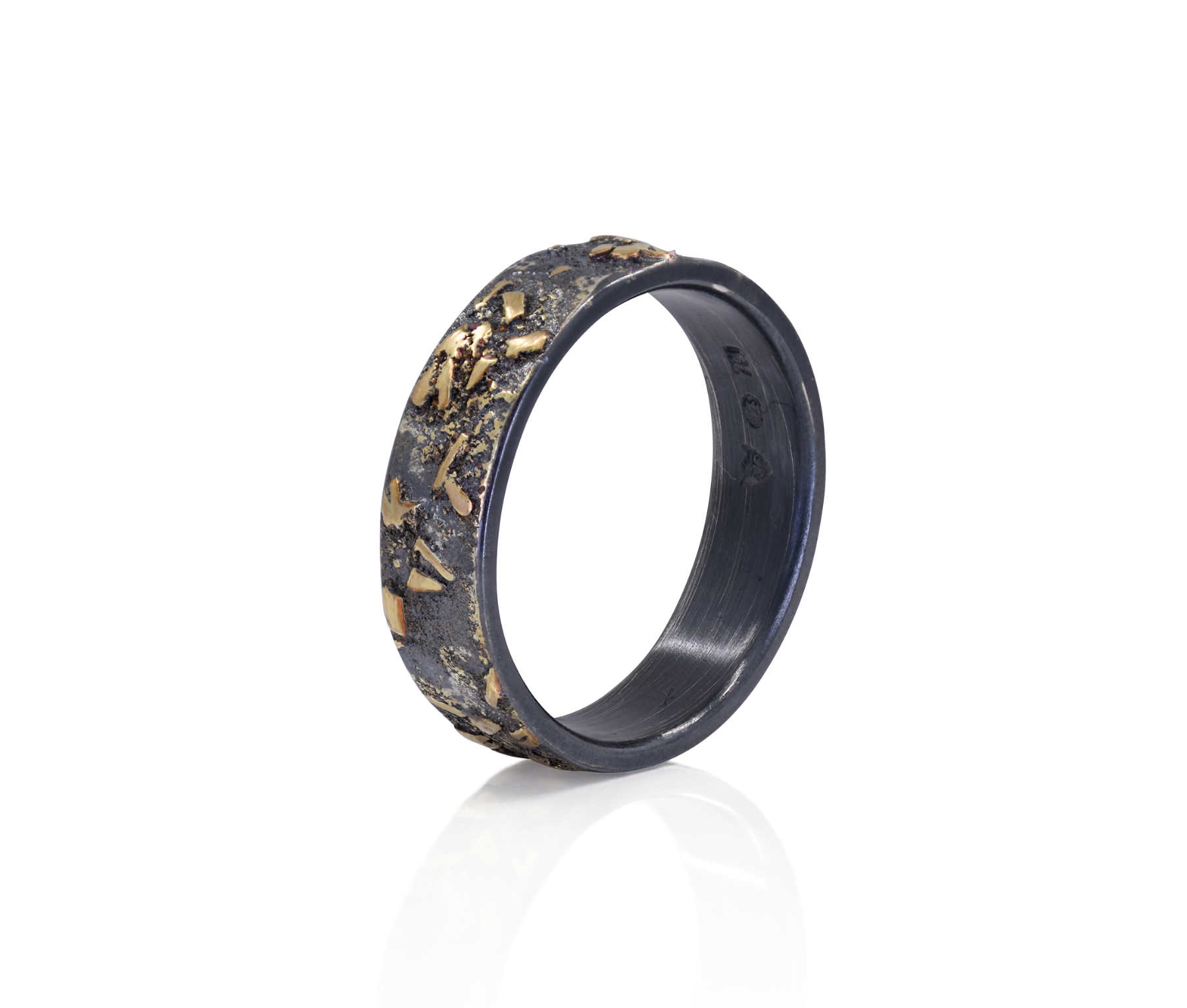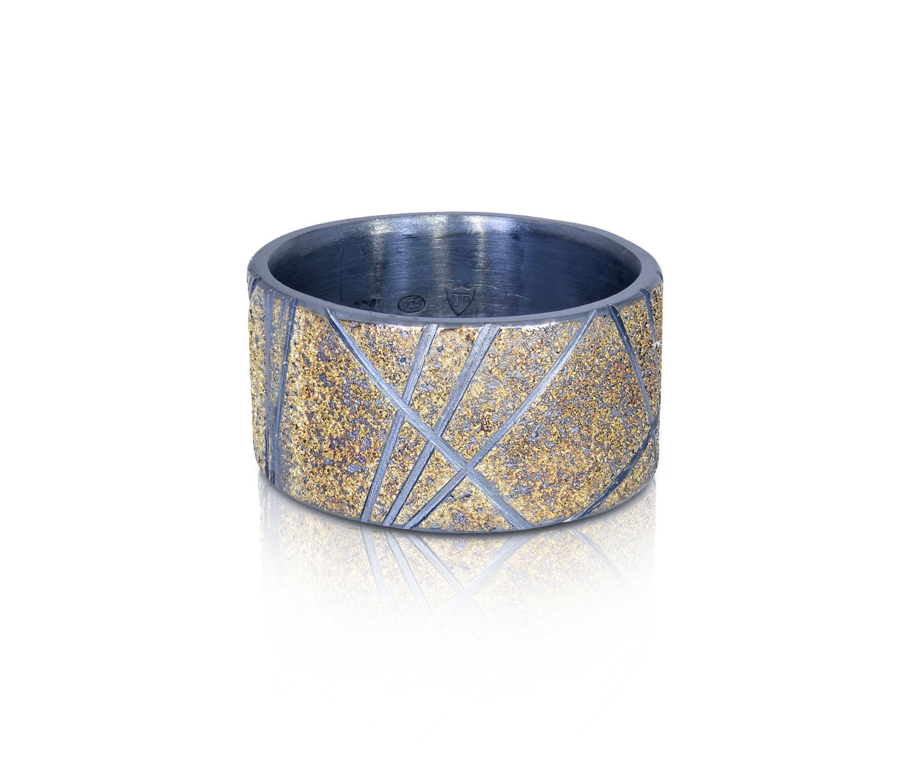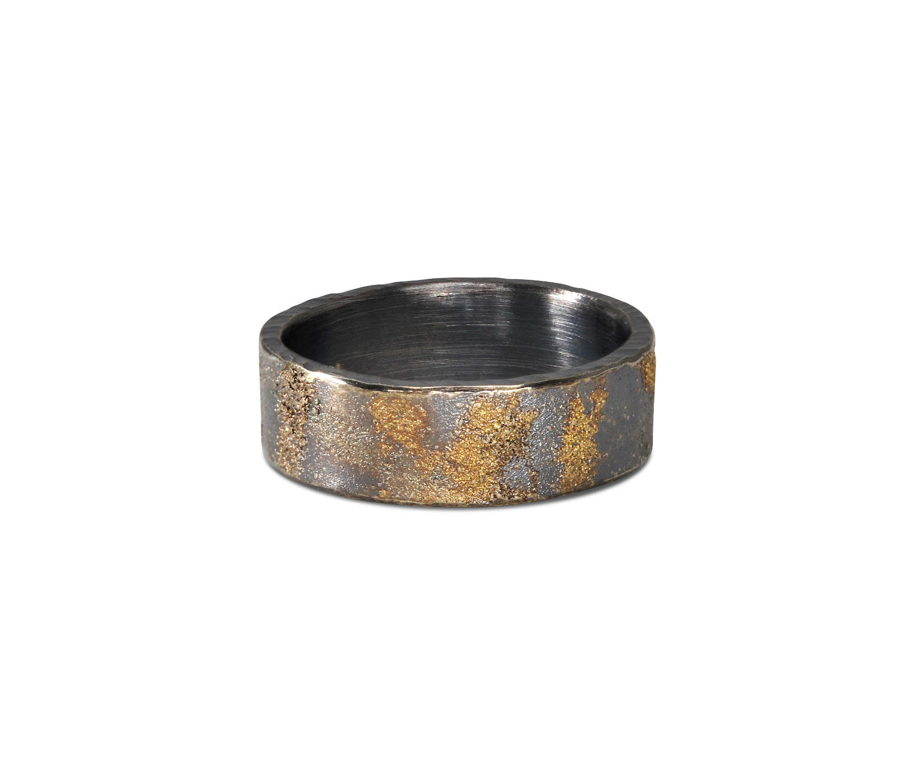 Oxidised sterling silver, 18ct yellow gold frosting ring [12.5mm] [$POA]