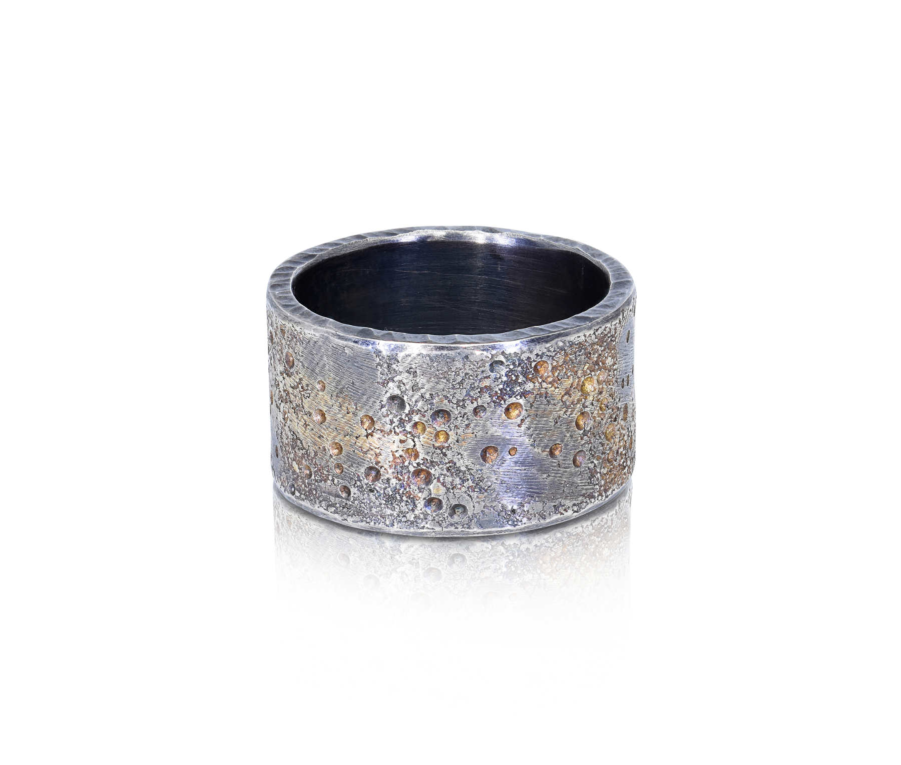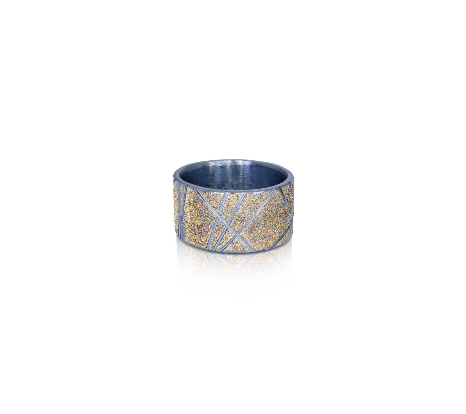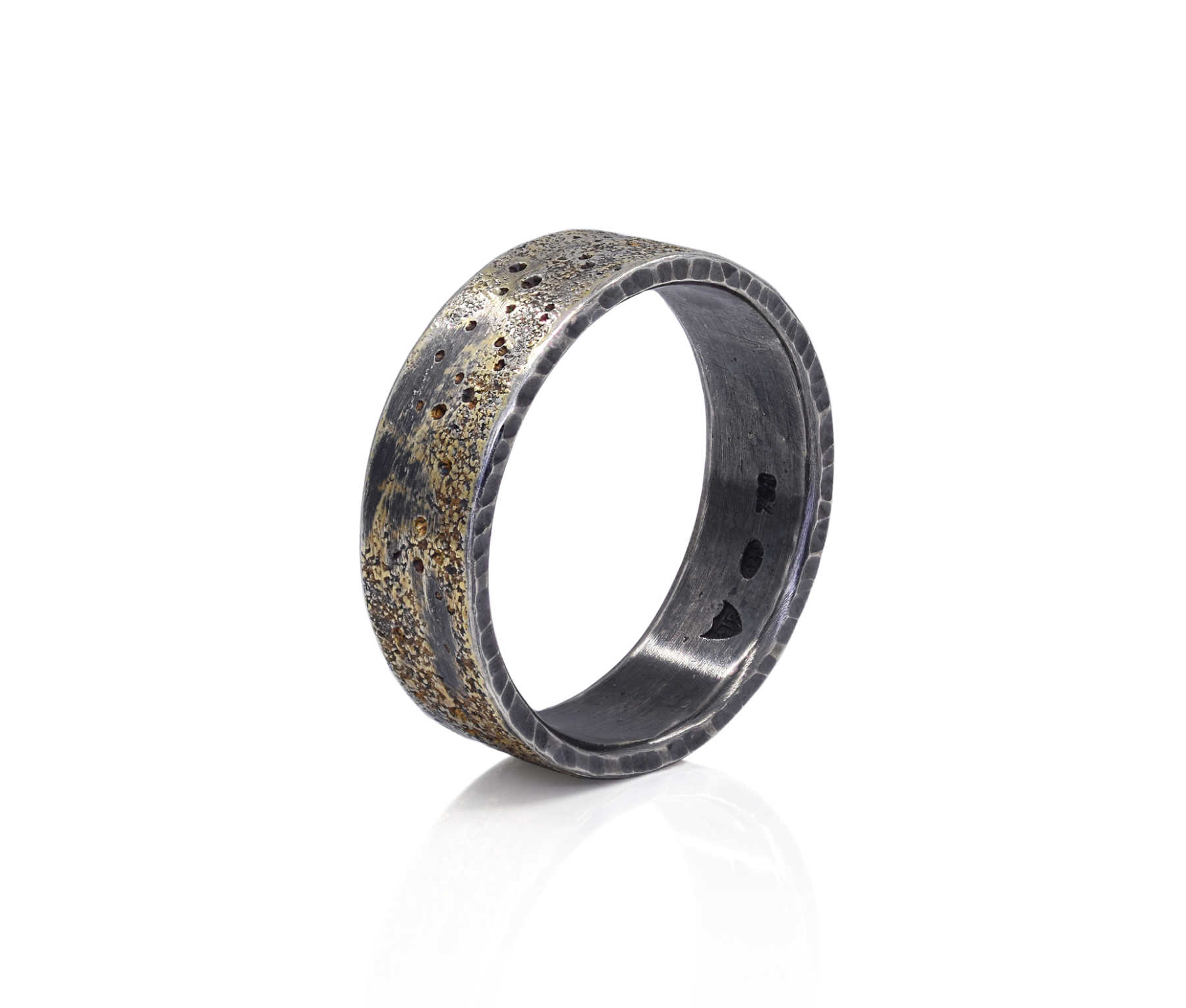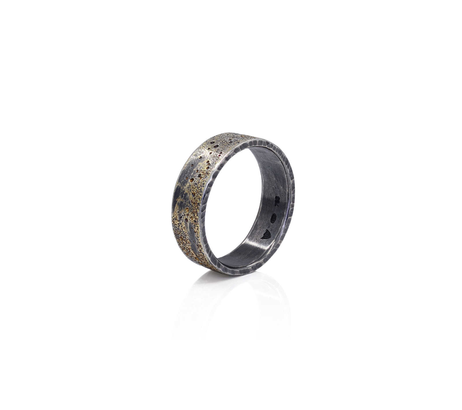 Oxidised sterling silver, 18ct yellow gold frosting ring [12.5mm] [$POA]