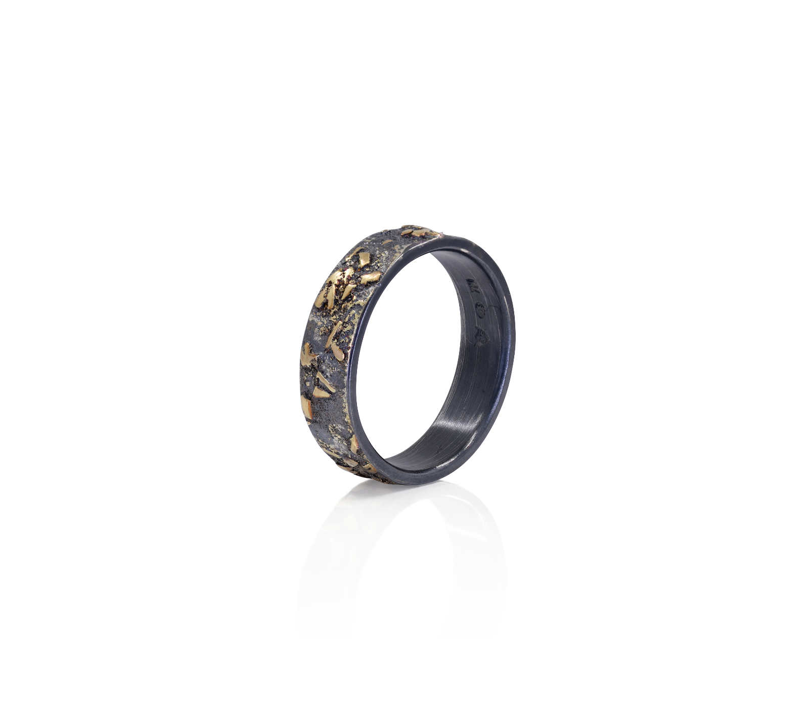 Oxidised sterling silver, 18ct yellow gold frosting ring [6mm] [$1,065]
