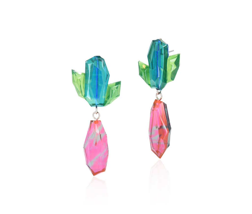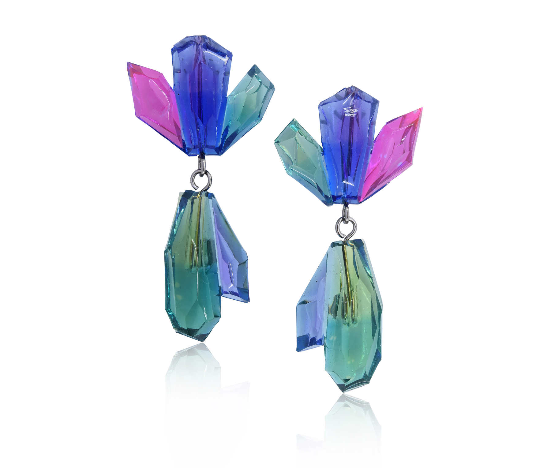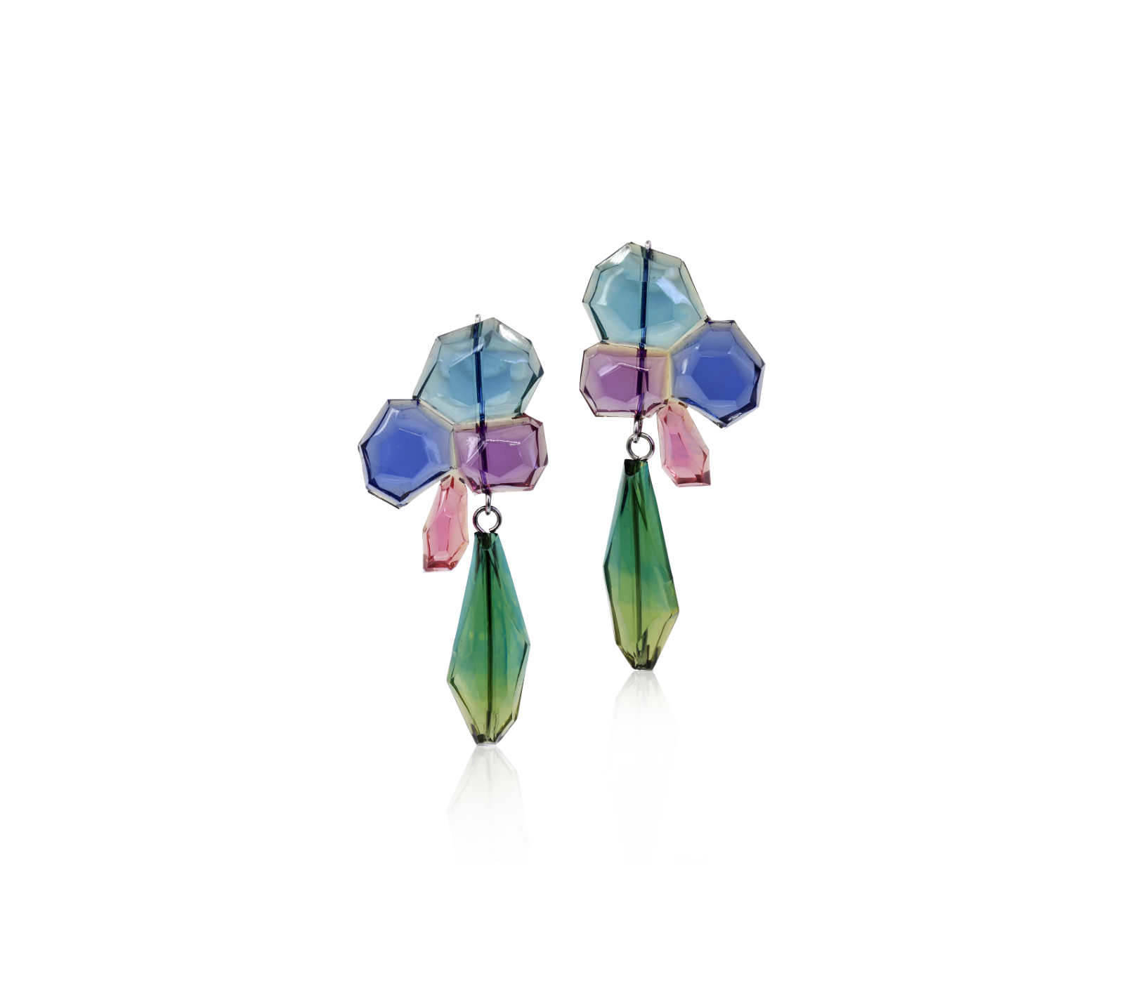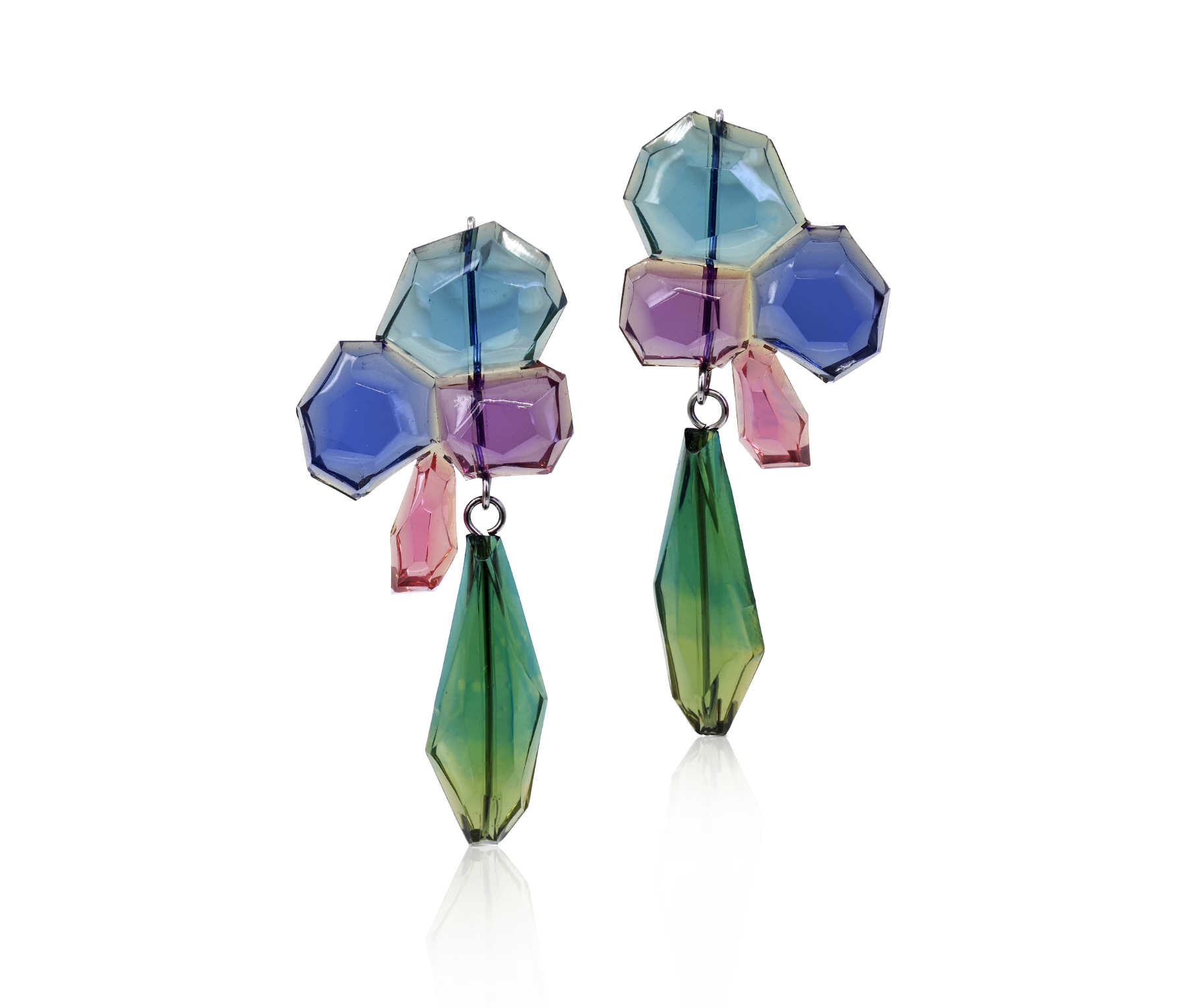 hand cut, carved and dyed PVC stud earrings [35 x 85mm] [$250]