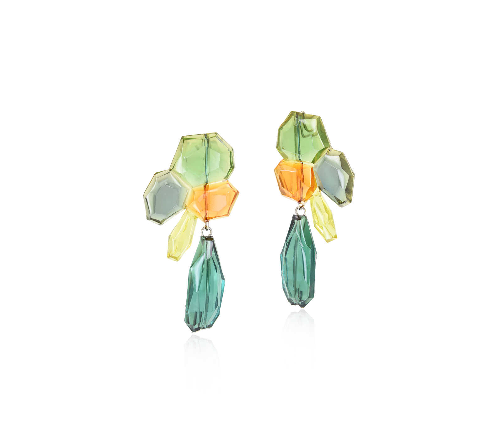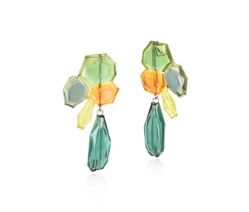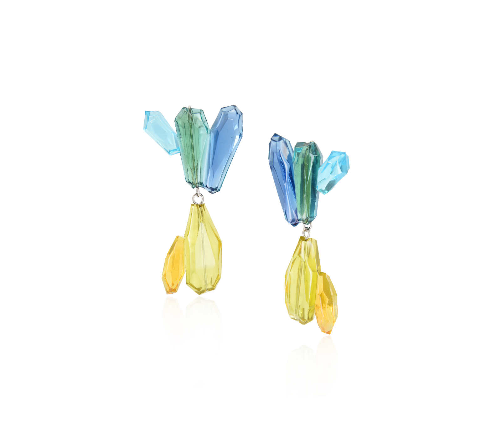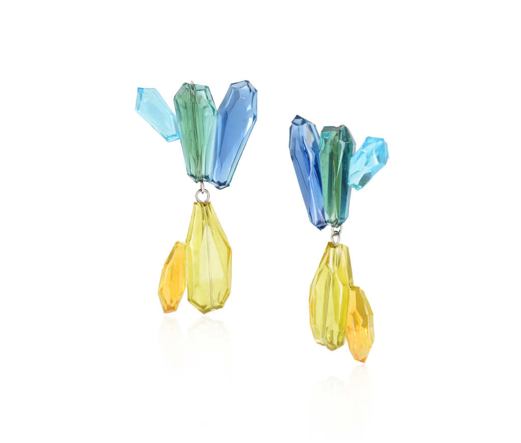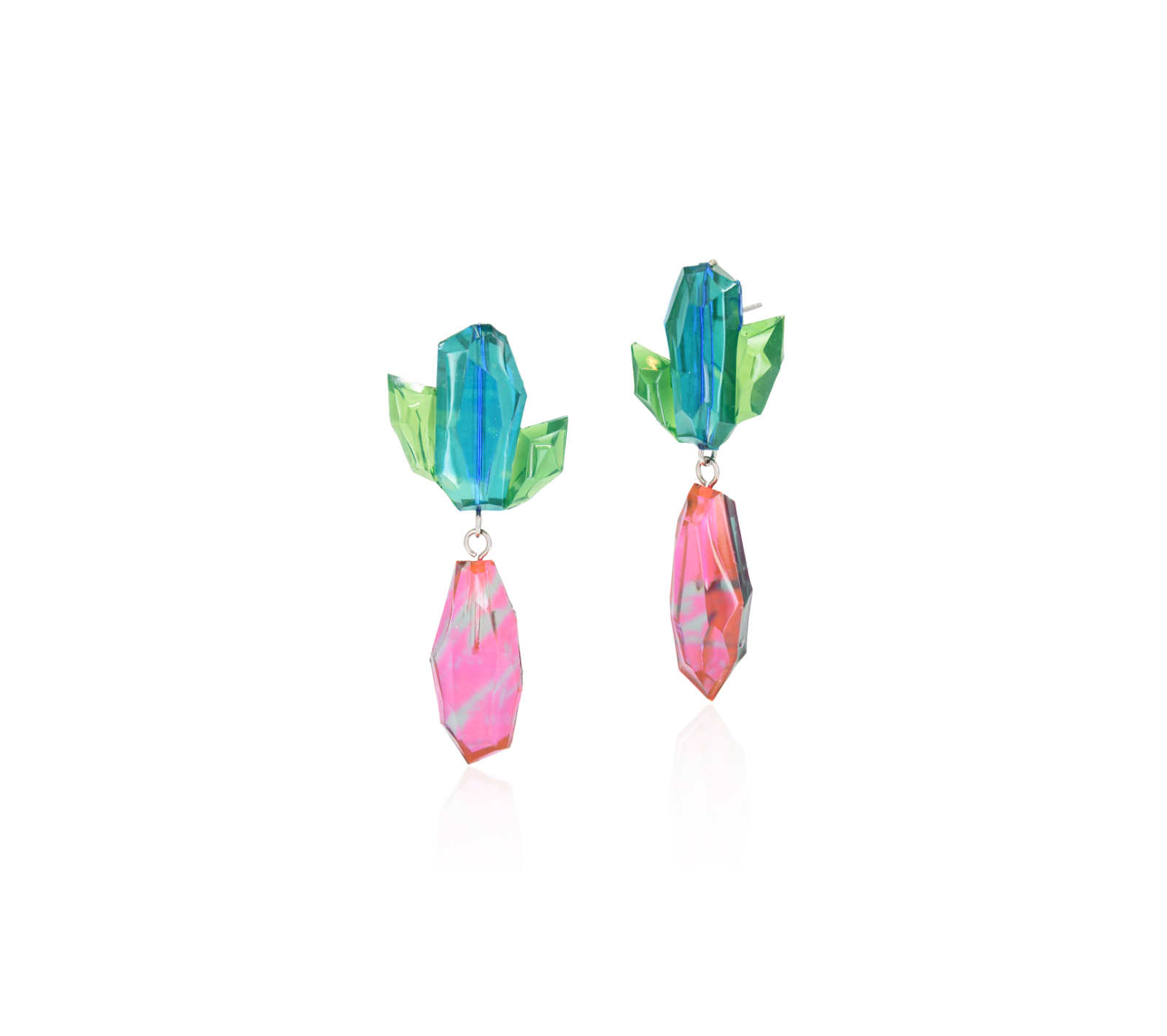hand cut, carved and dyed PVC stud earrings [35 x 85mm] [$250]