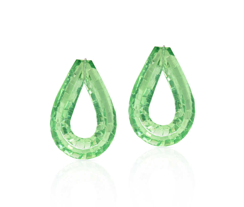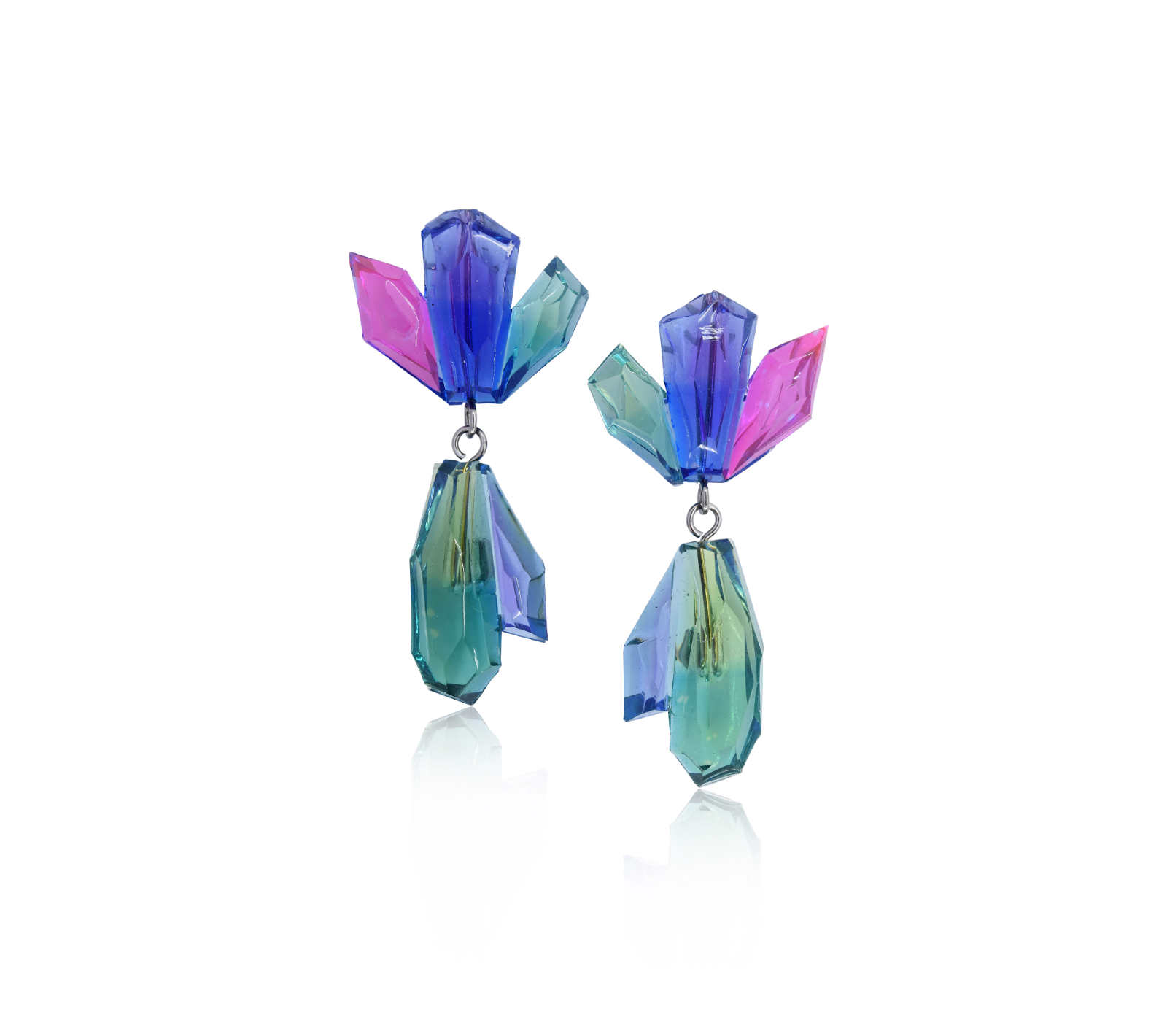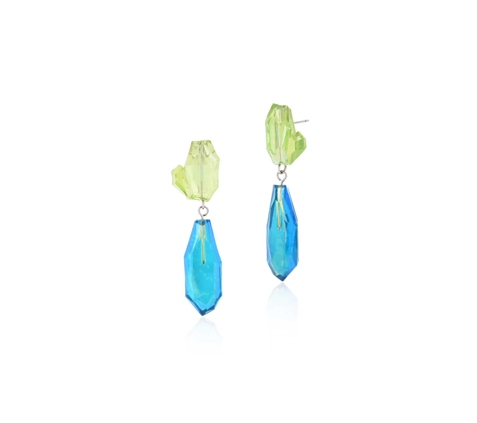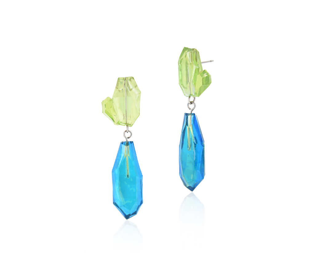 Windex colour, hand cut and dyed PVC earrings [25 x 37mm] [$110]