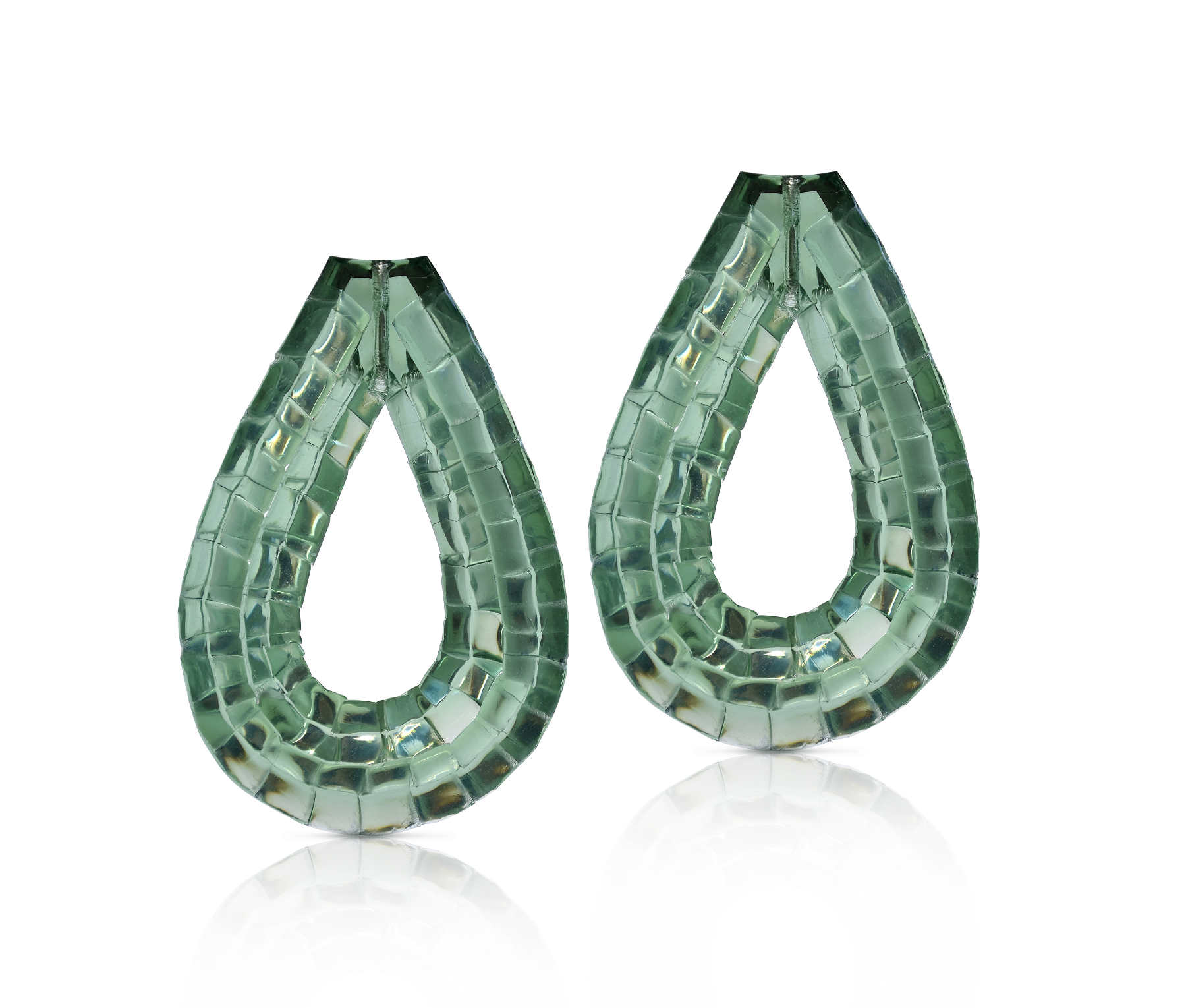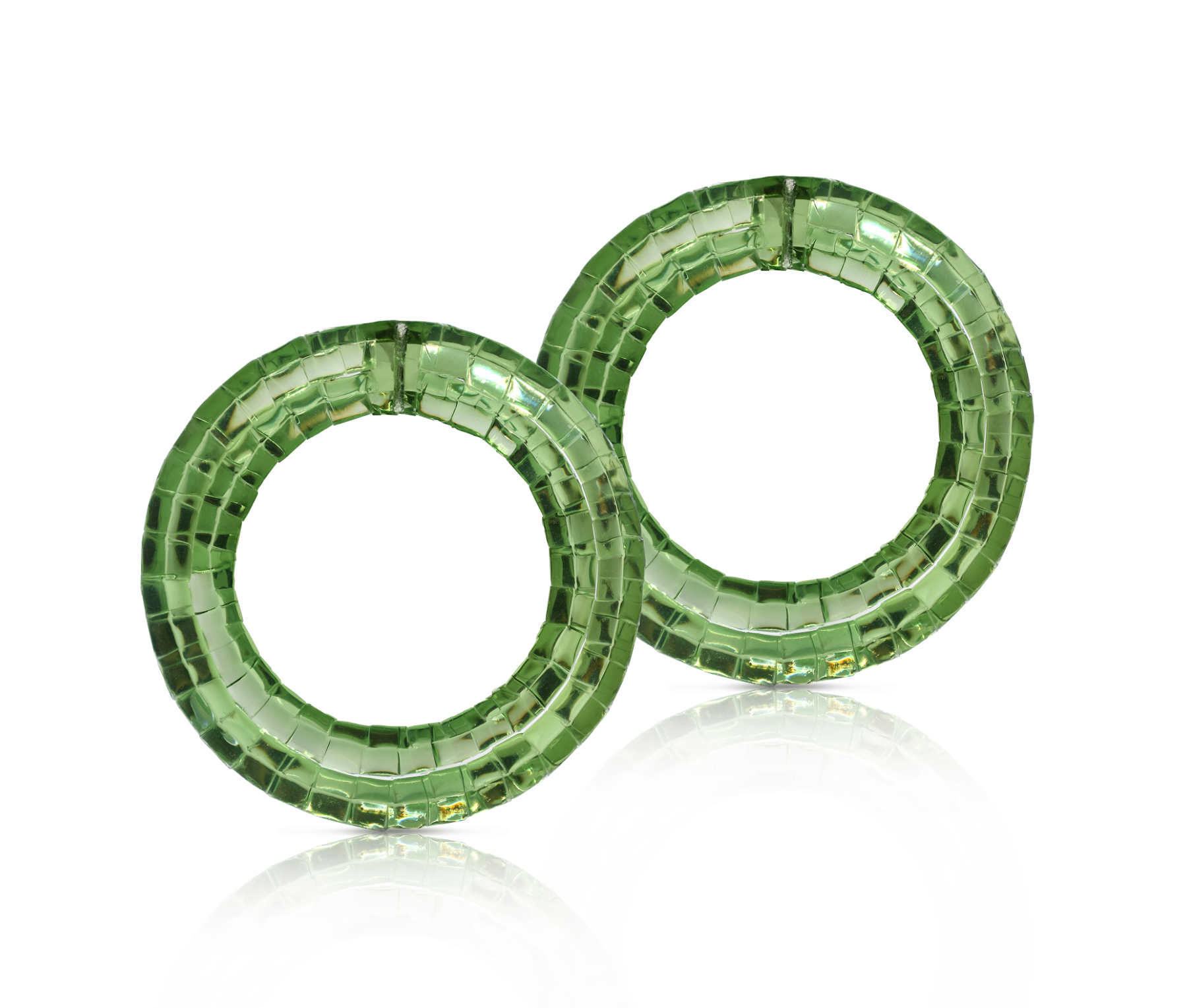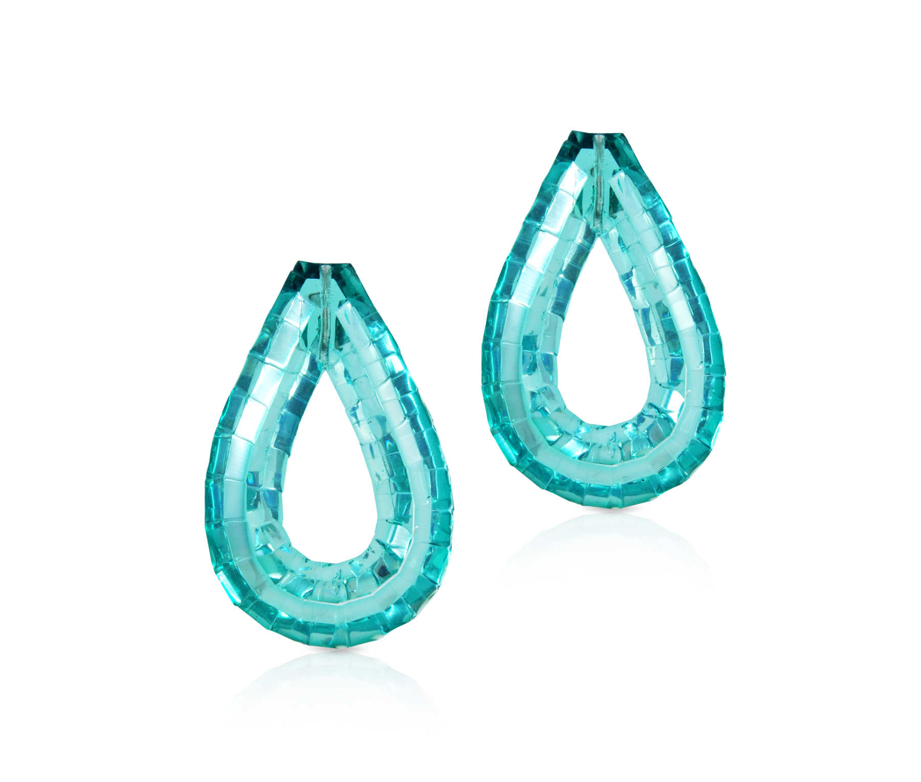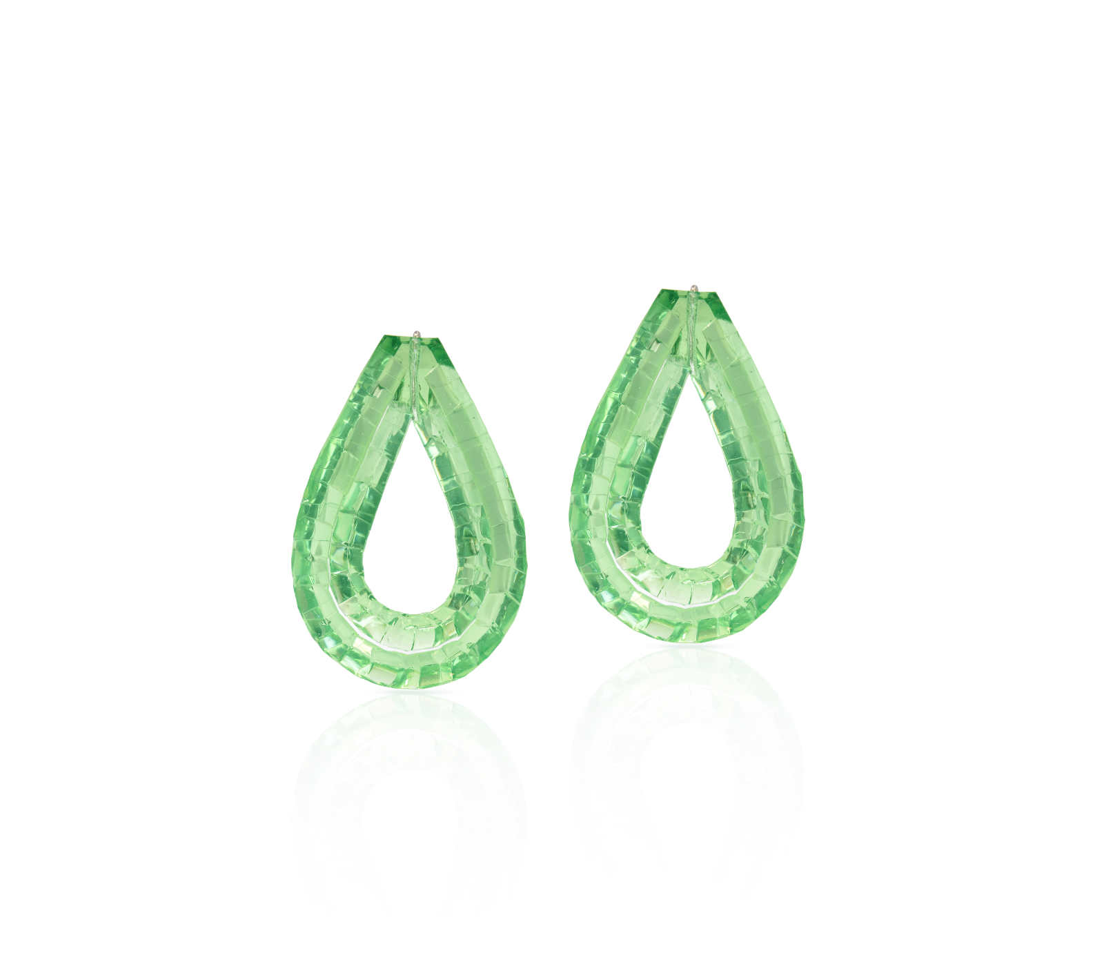 Windex colour, hand cut and dyed PVC earrings [25 x 37mm] [$110]