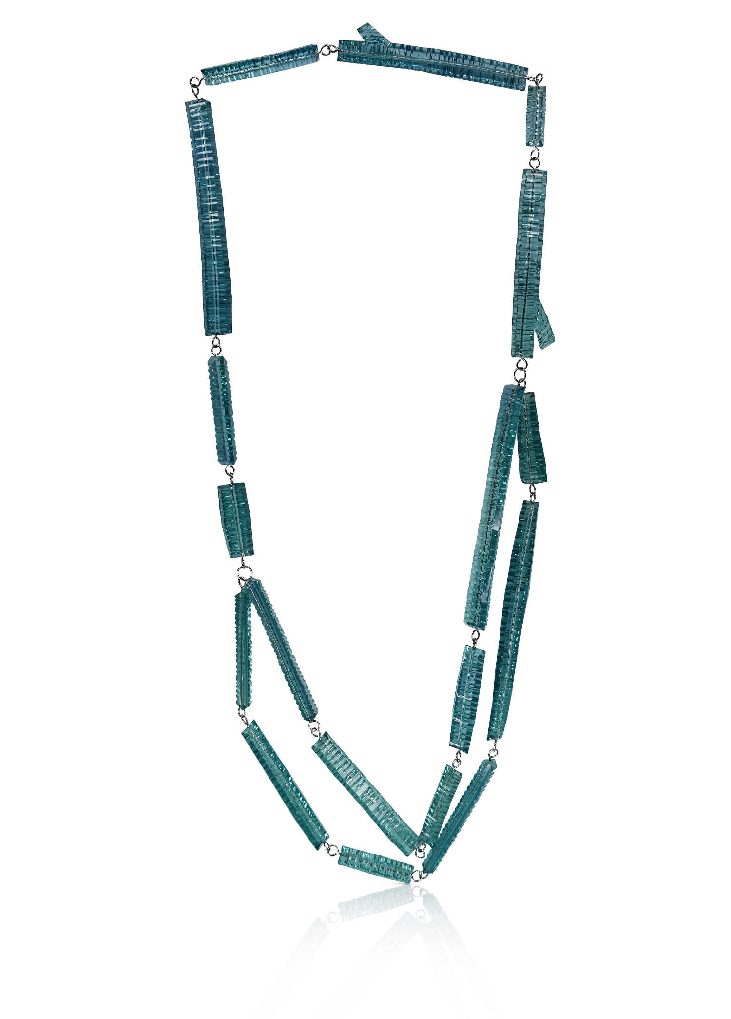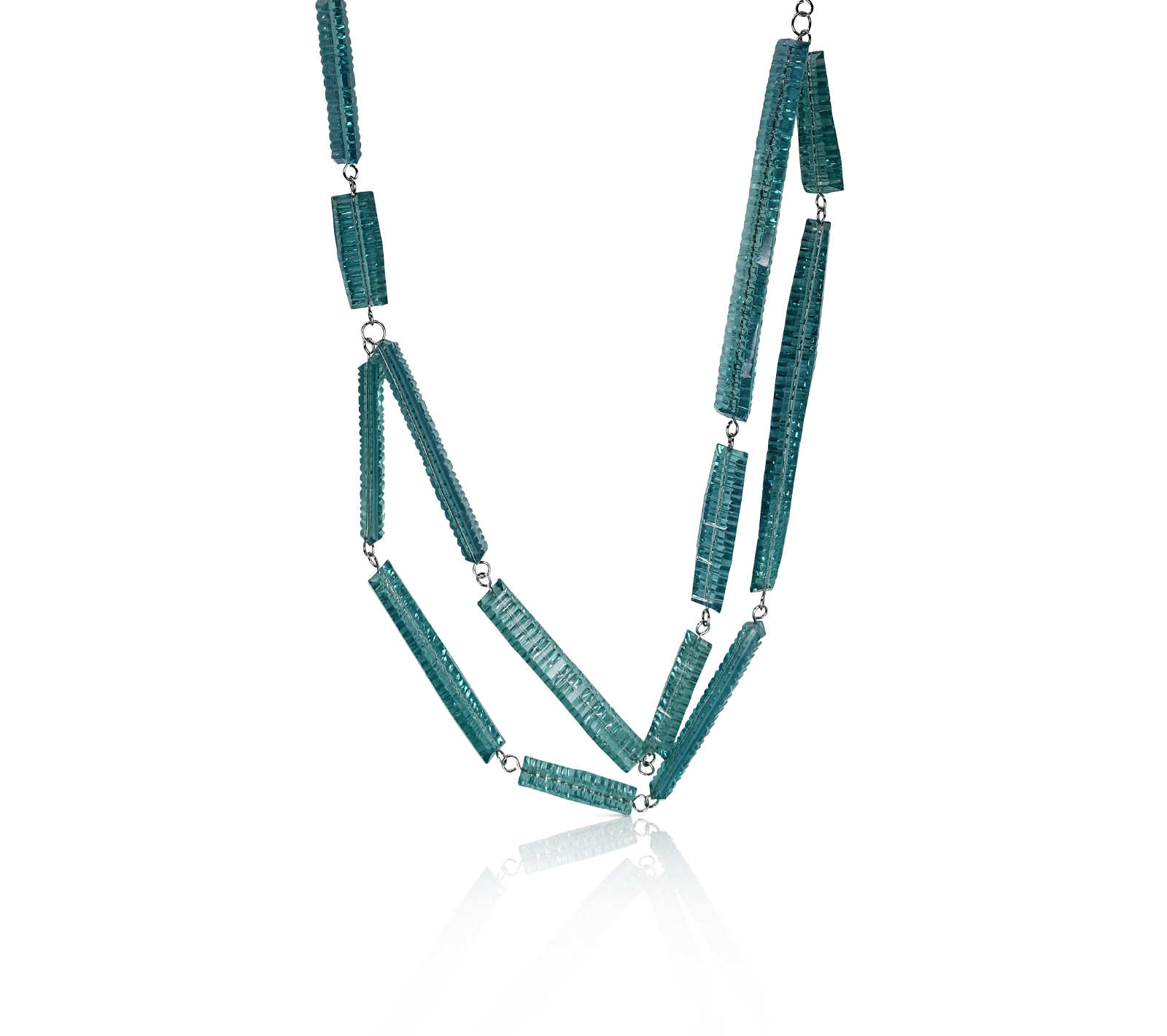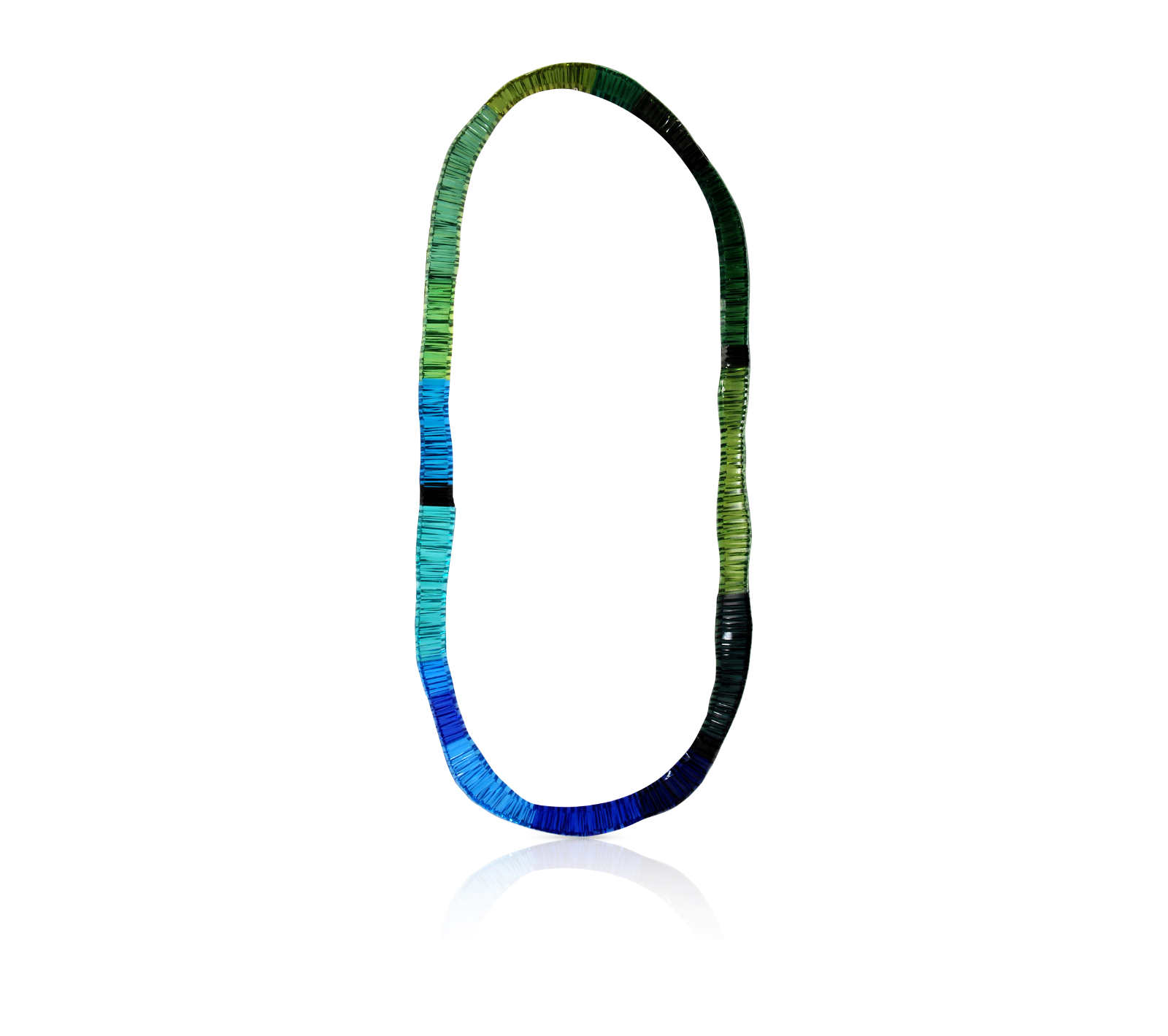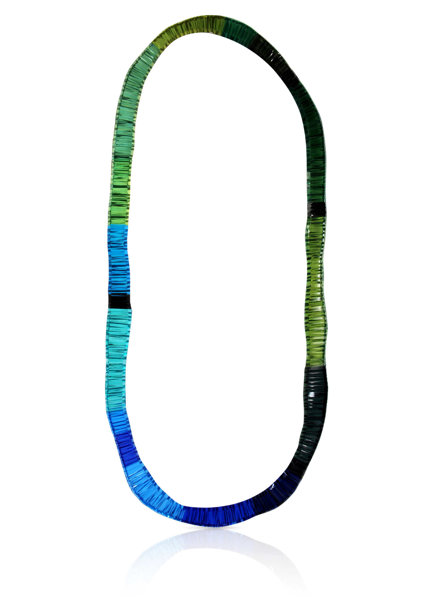 Hand carved and dyed PVC, oxidised sterling silver neckpiece [Length 78cm] [$380]