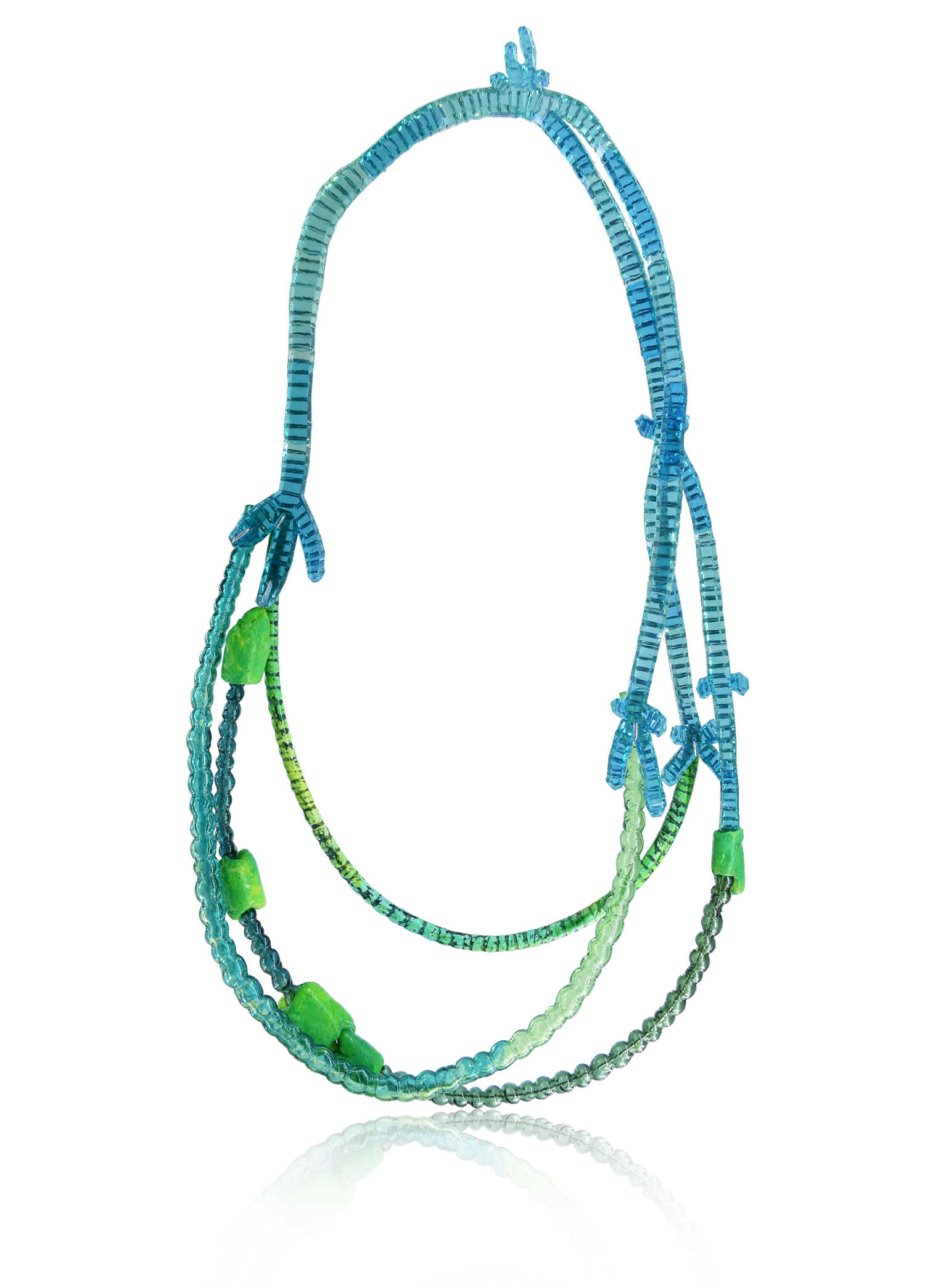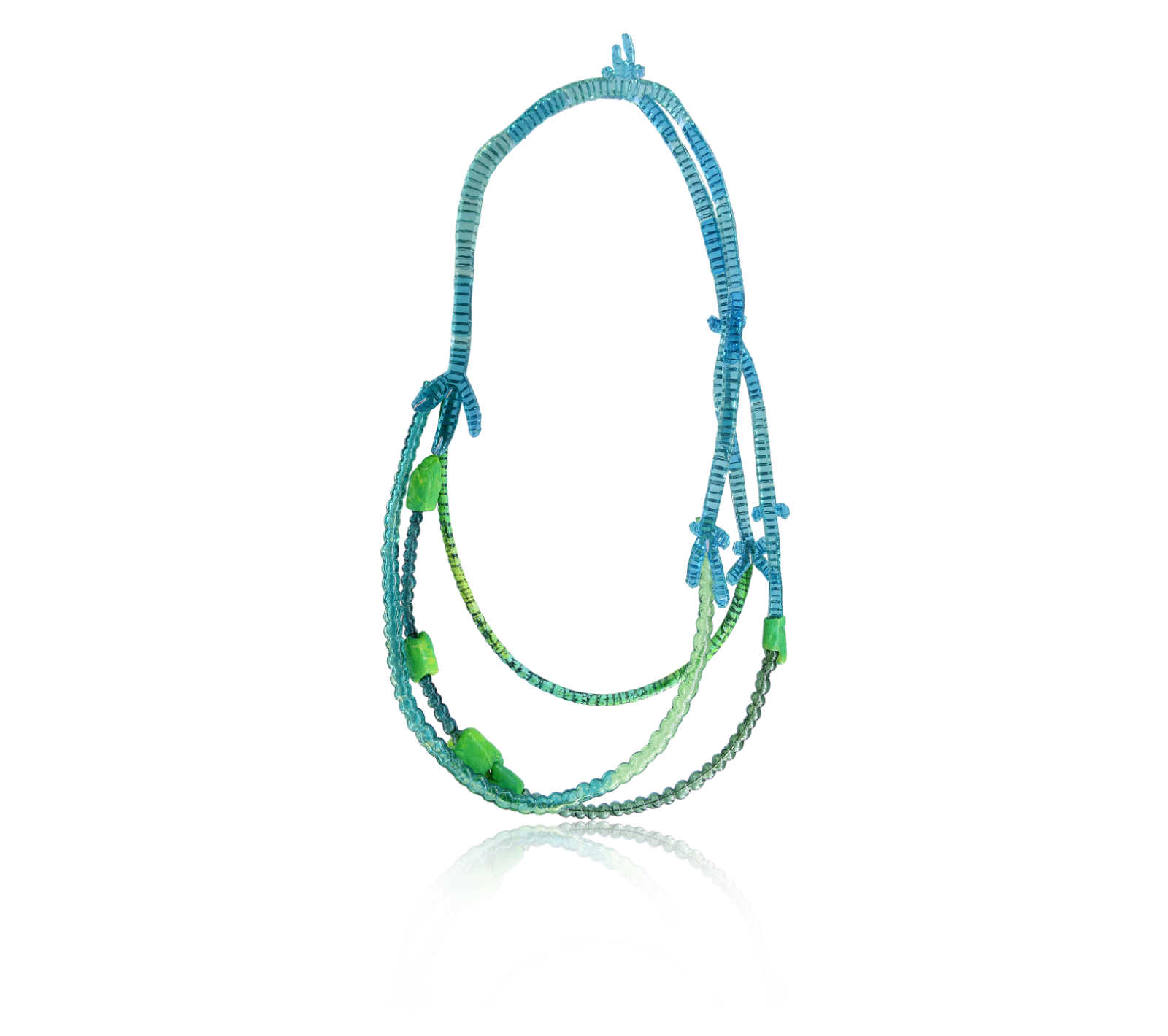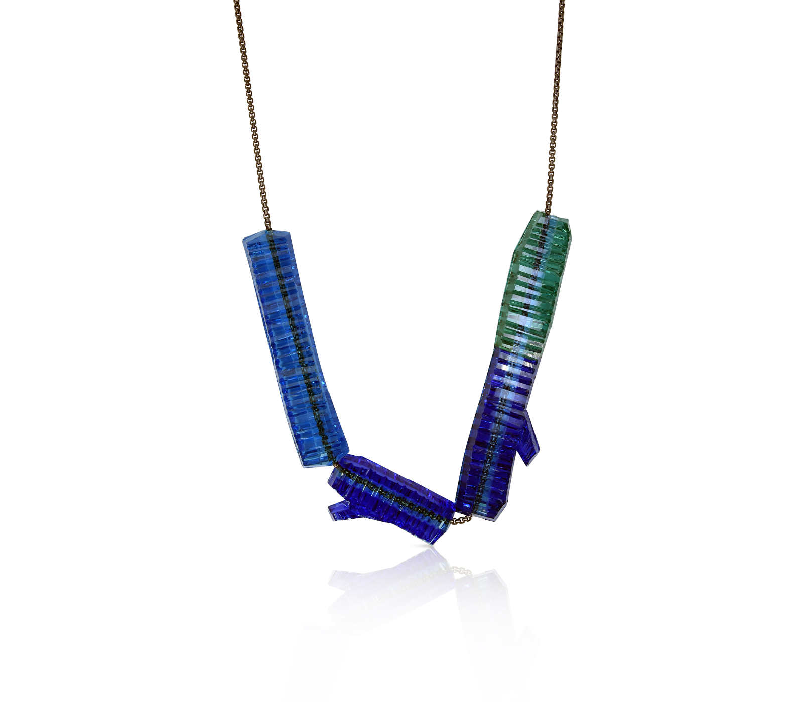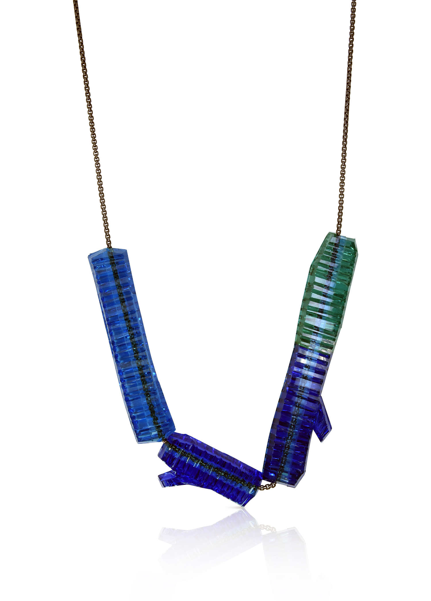 Hand carved and dyed PVC, oxidised sterling silver neckpiece [Length 78cm] [$380]