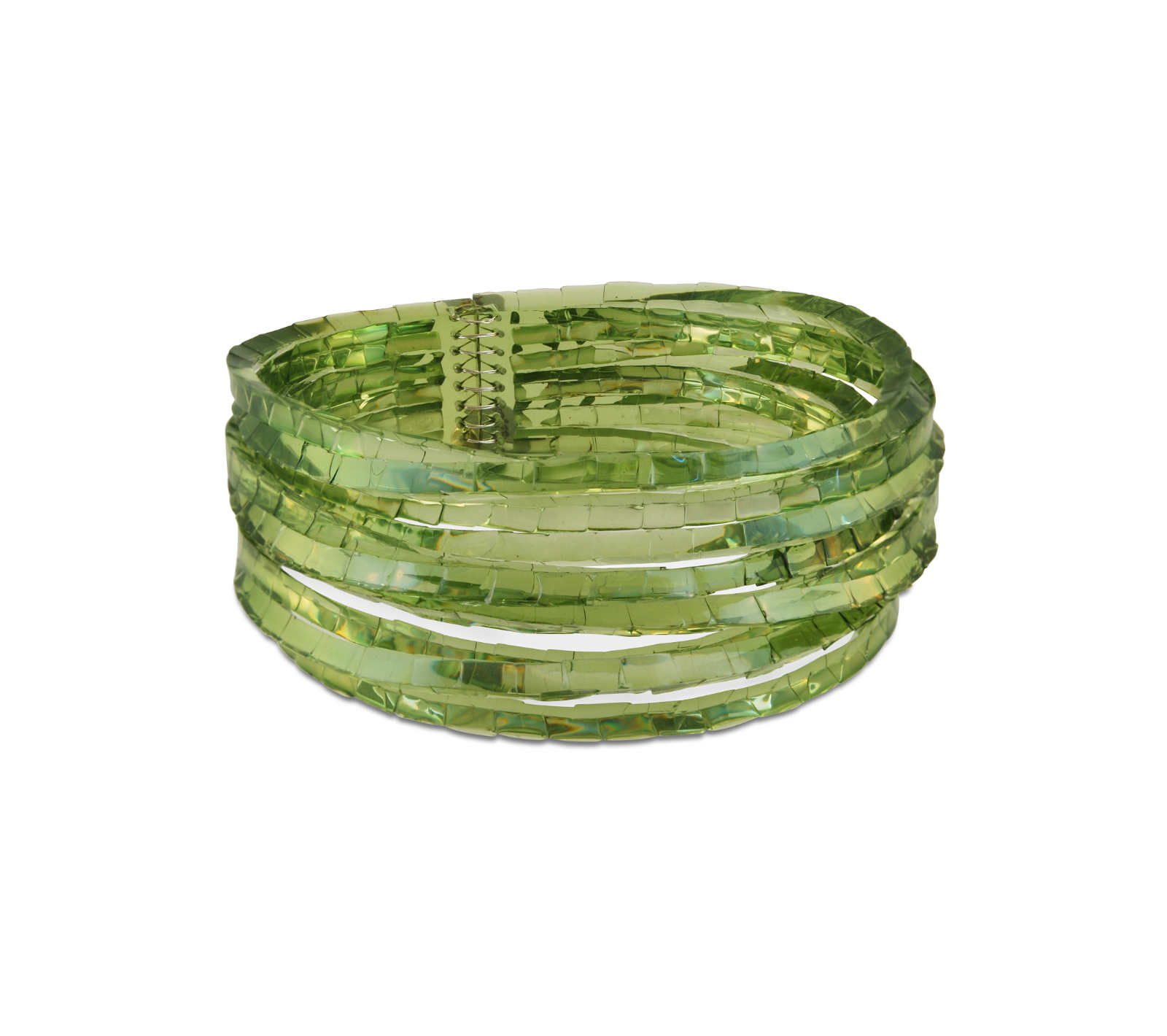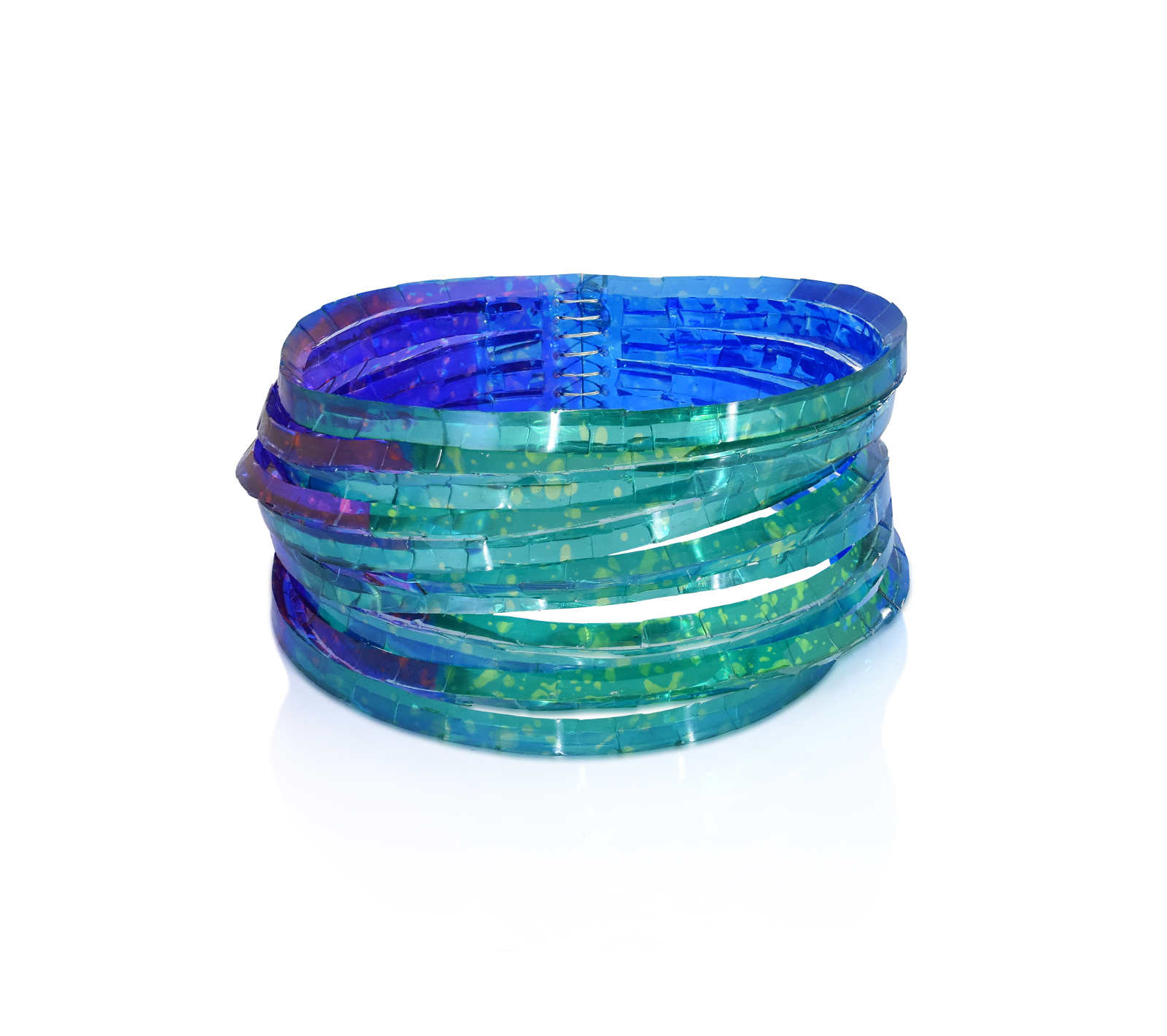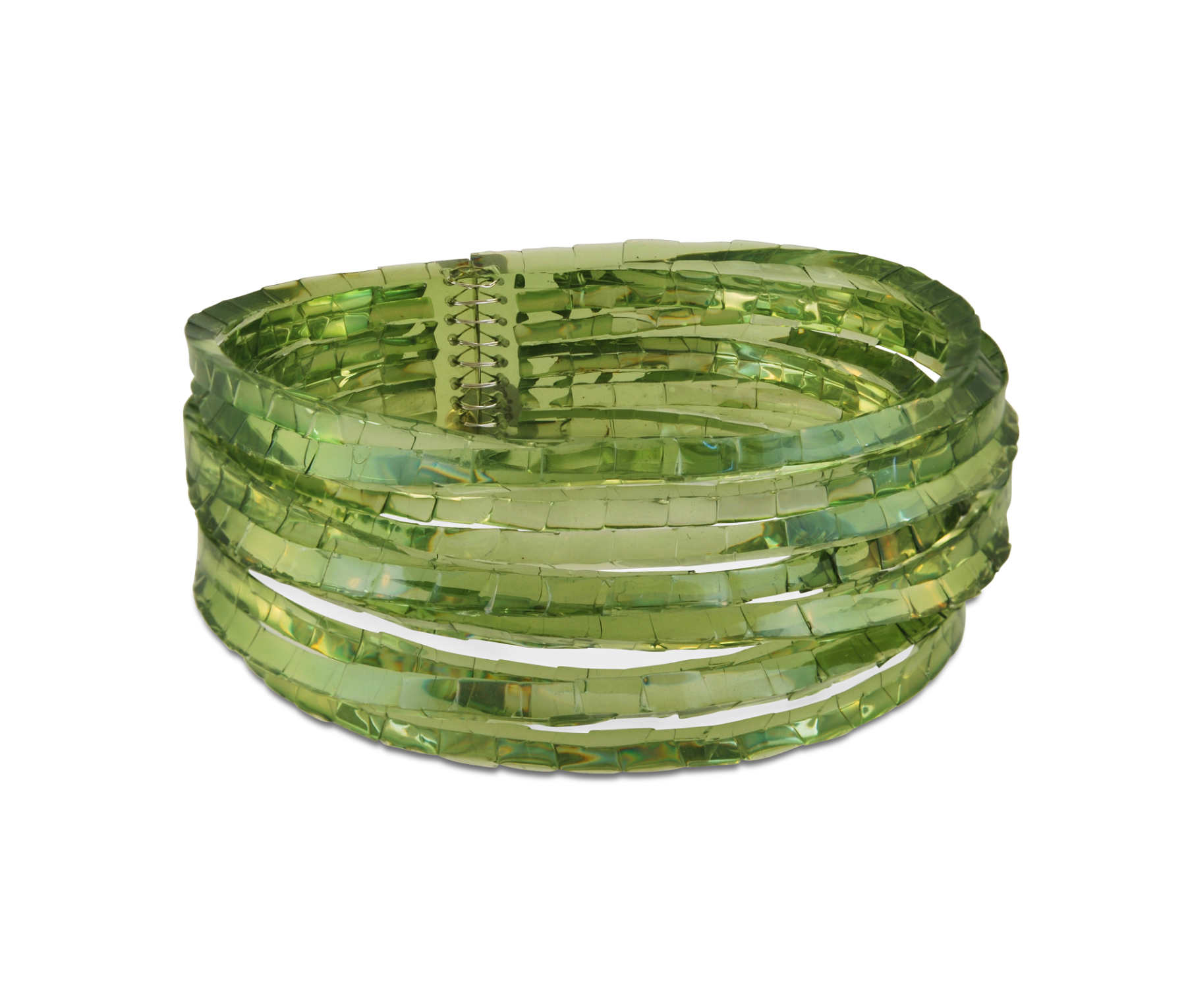 Hand cut and dyed PVC, sterling silver bangle [W 34mm] [$170]