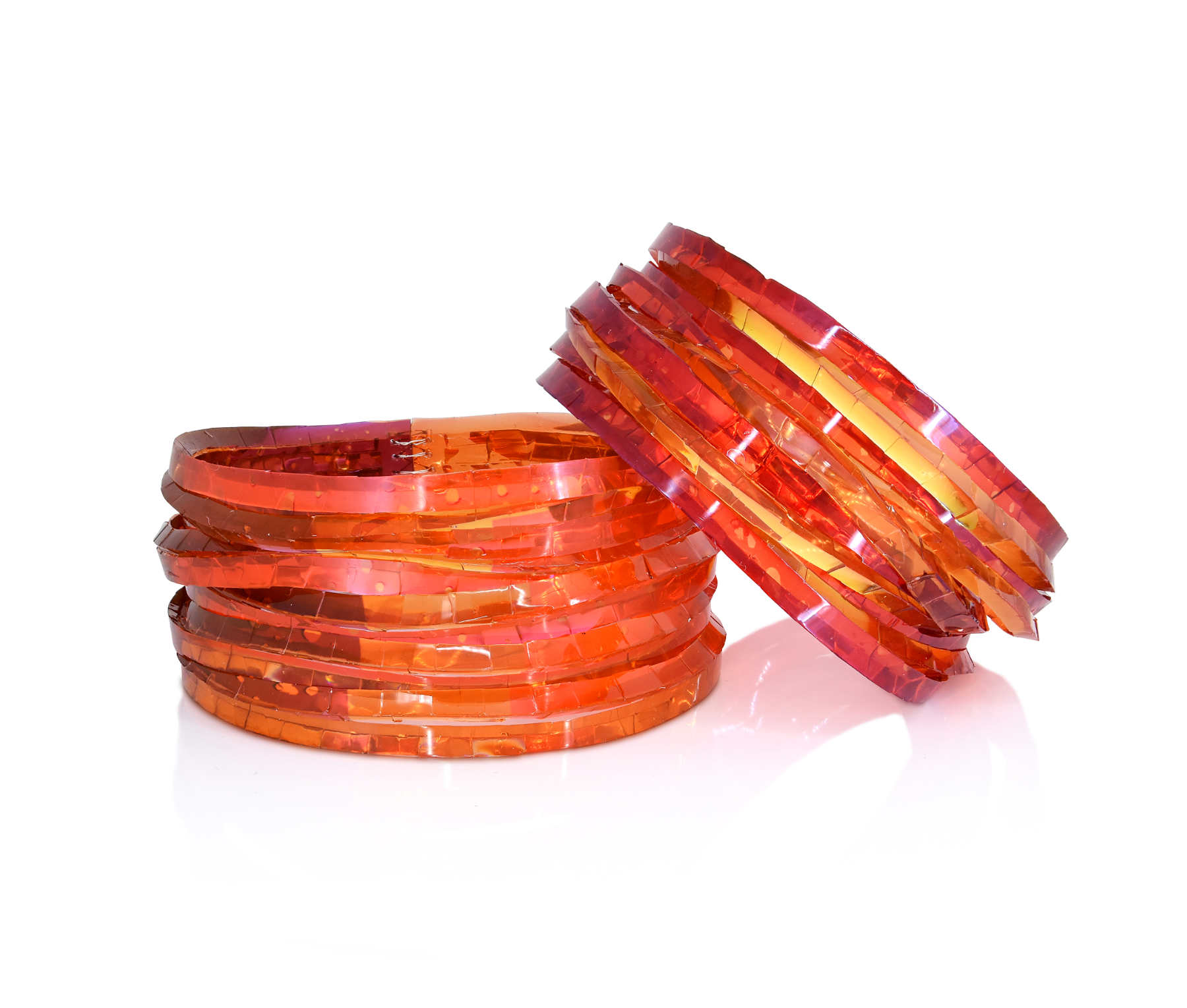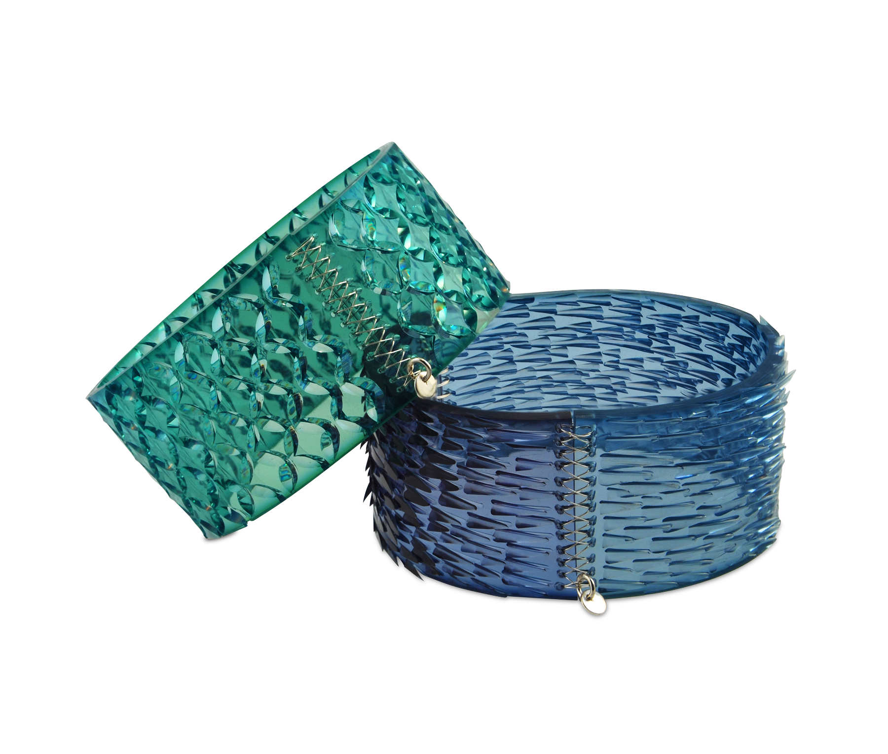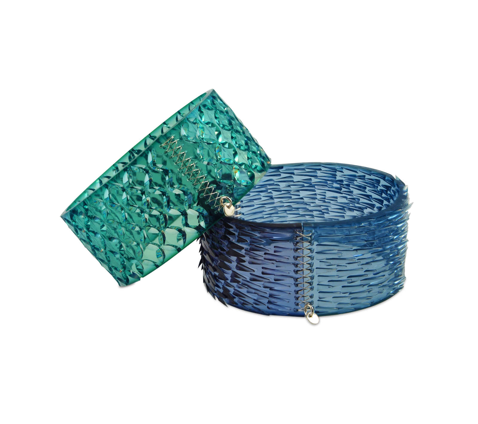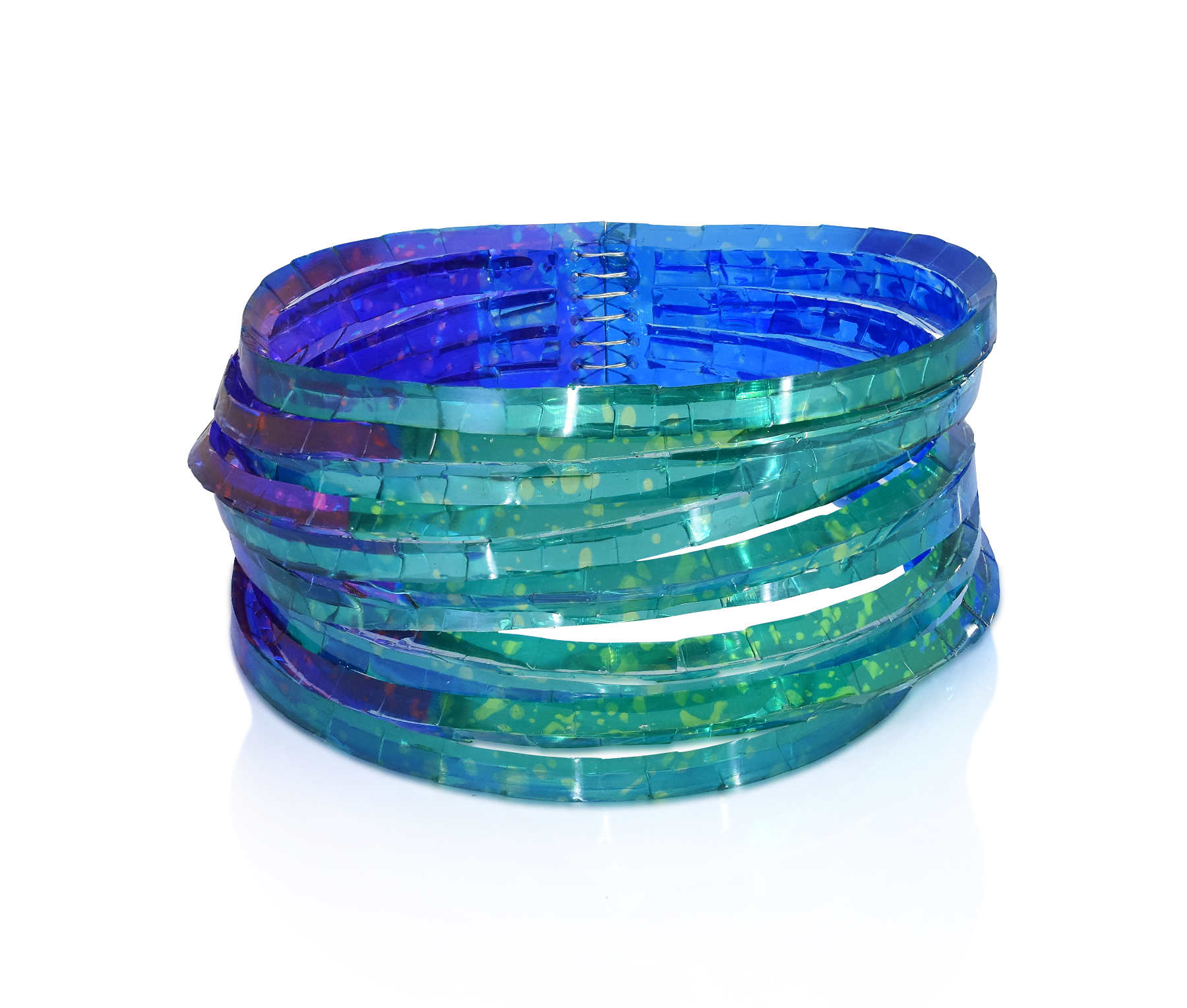 Hand cut and dyed PVC, sterling silver bangle [W 34mm] [$170]