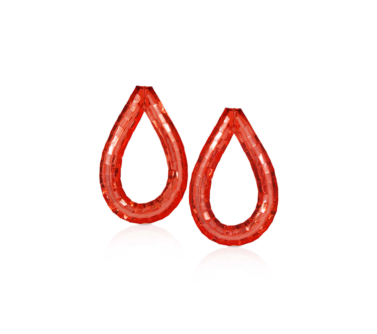 Hand cut, carved and dyed PVC stud earrings [35 x 85mm] [$250]