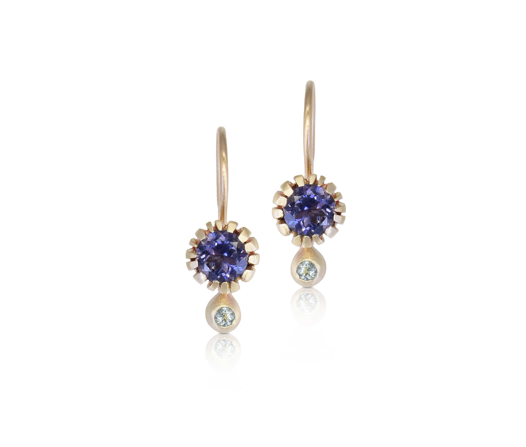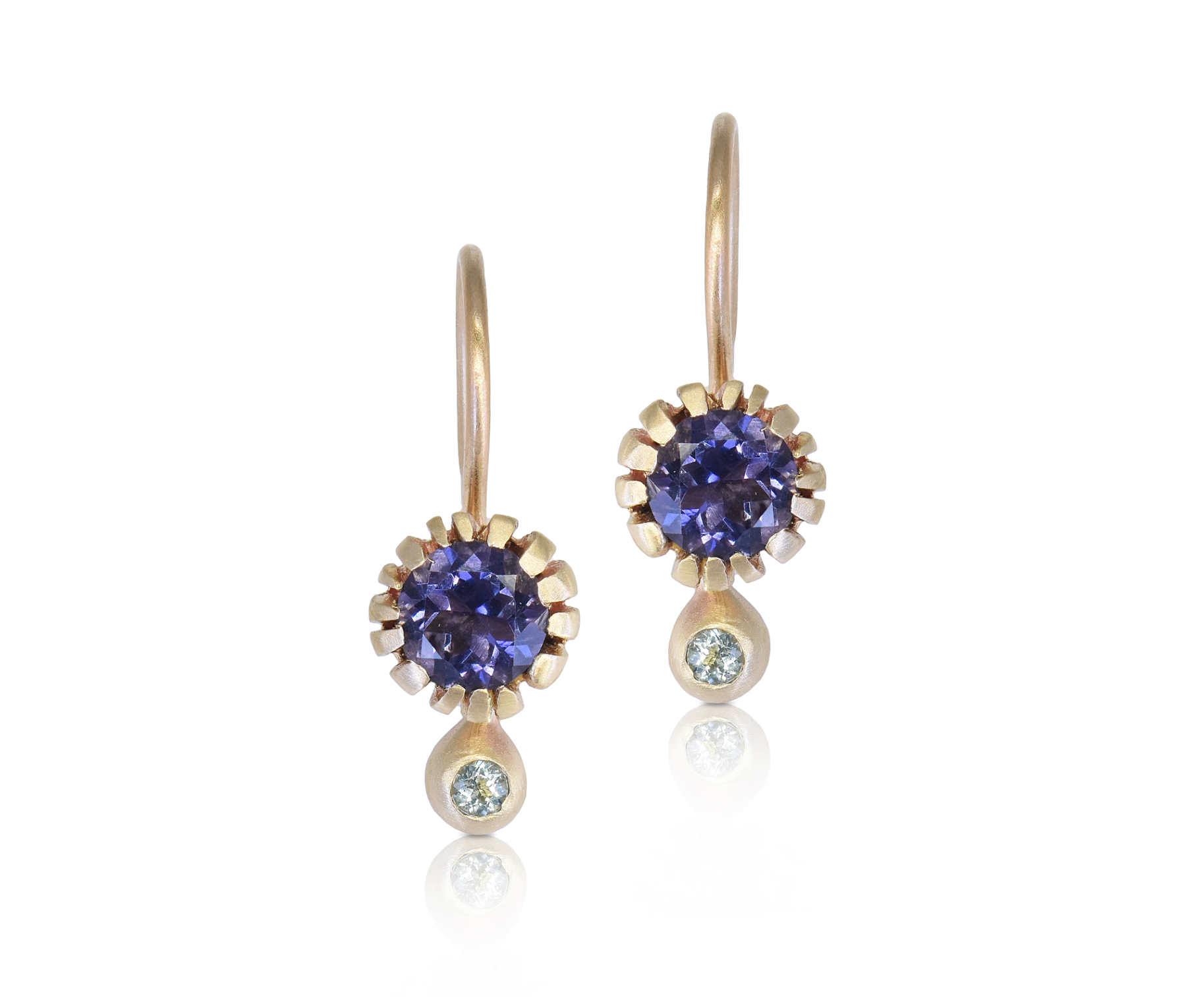 9ct yellow gold, iolite, peridot earrings [$1,435]