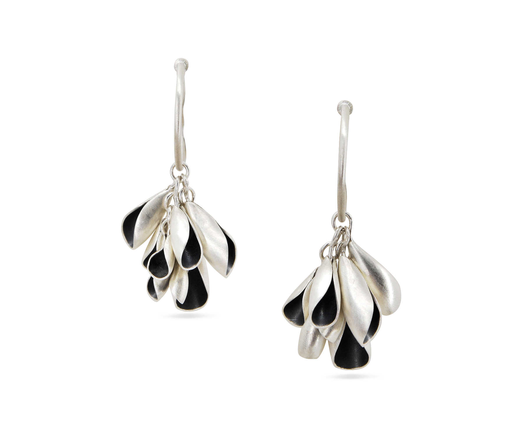 Oxidised sterling silver, multiple leaves hoops earrings [$460]