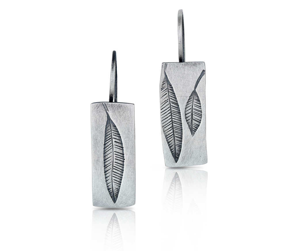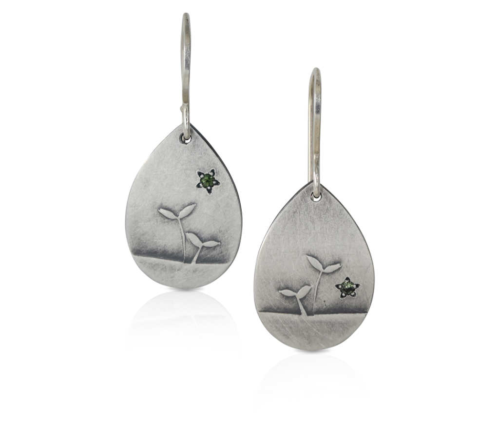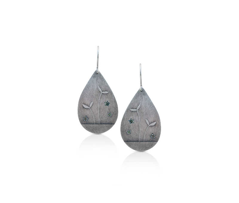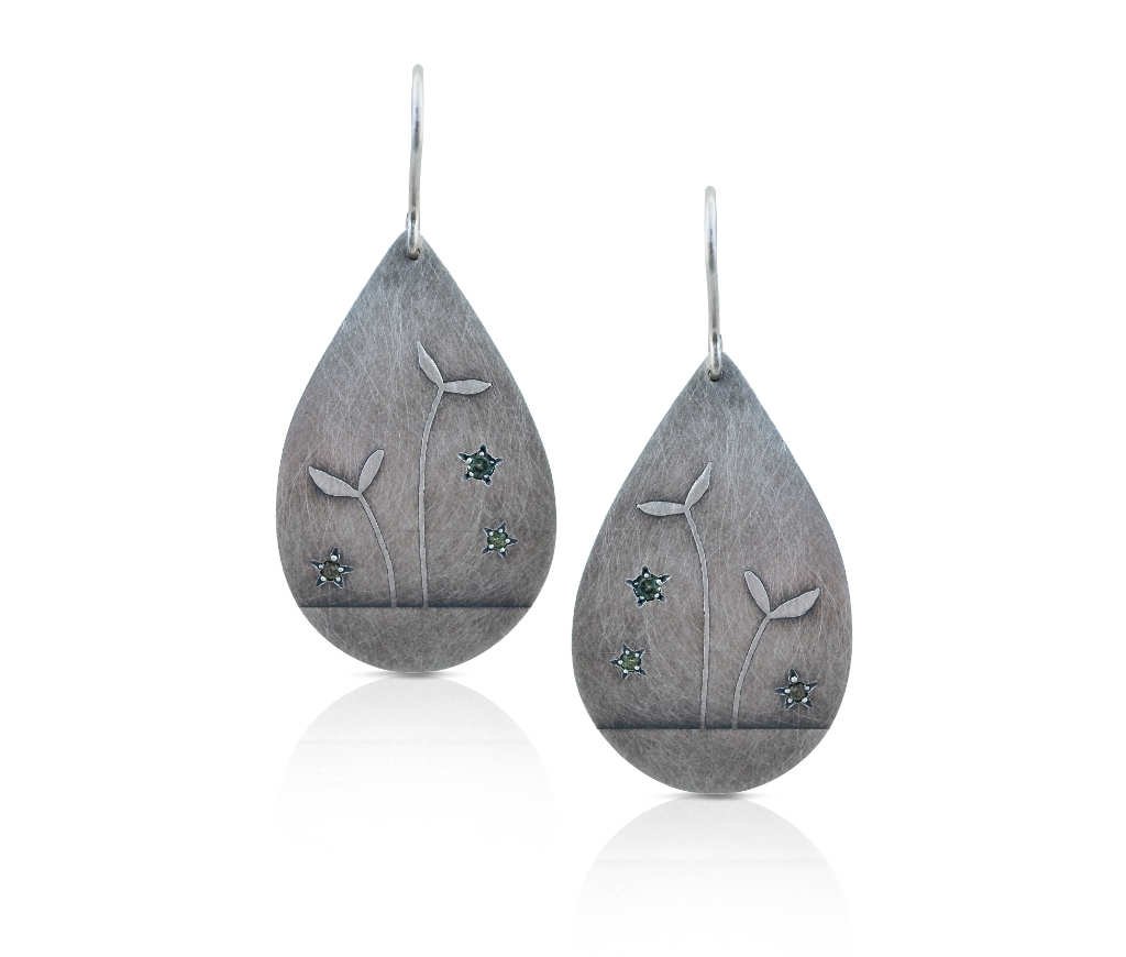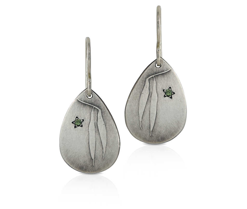 Oxidised fine silver, green sapphire earrings [15 x 37mm] [$295]