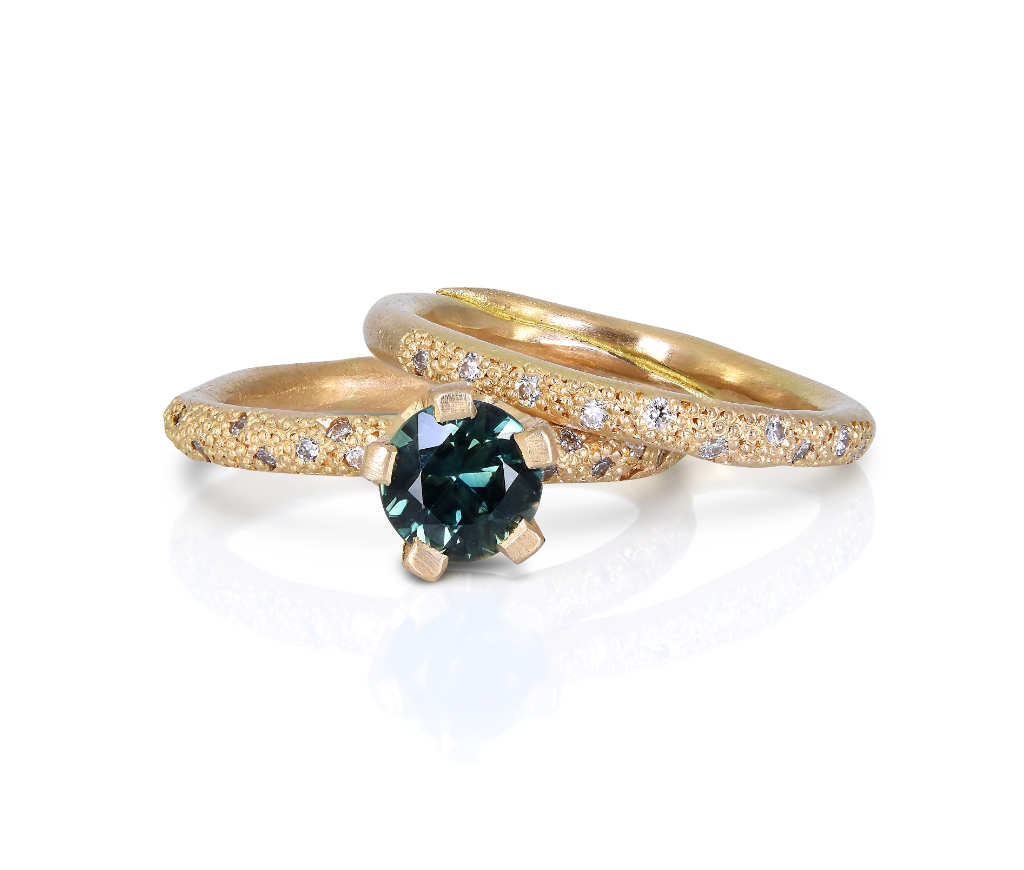 18ct white gold, green sapphire, diamond [6.2mm - 6.5mm band] [$2,565]