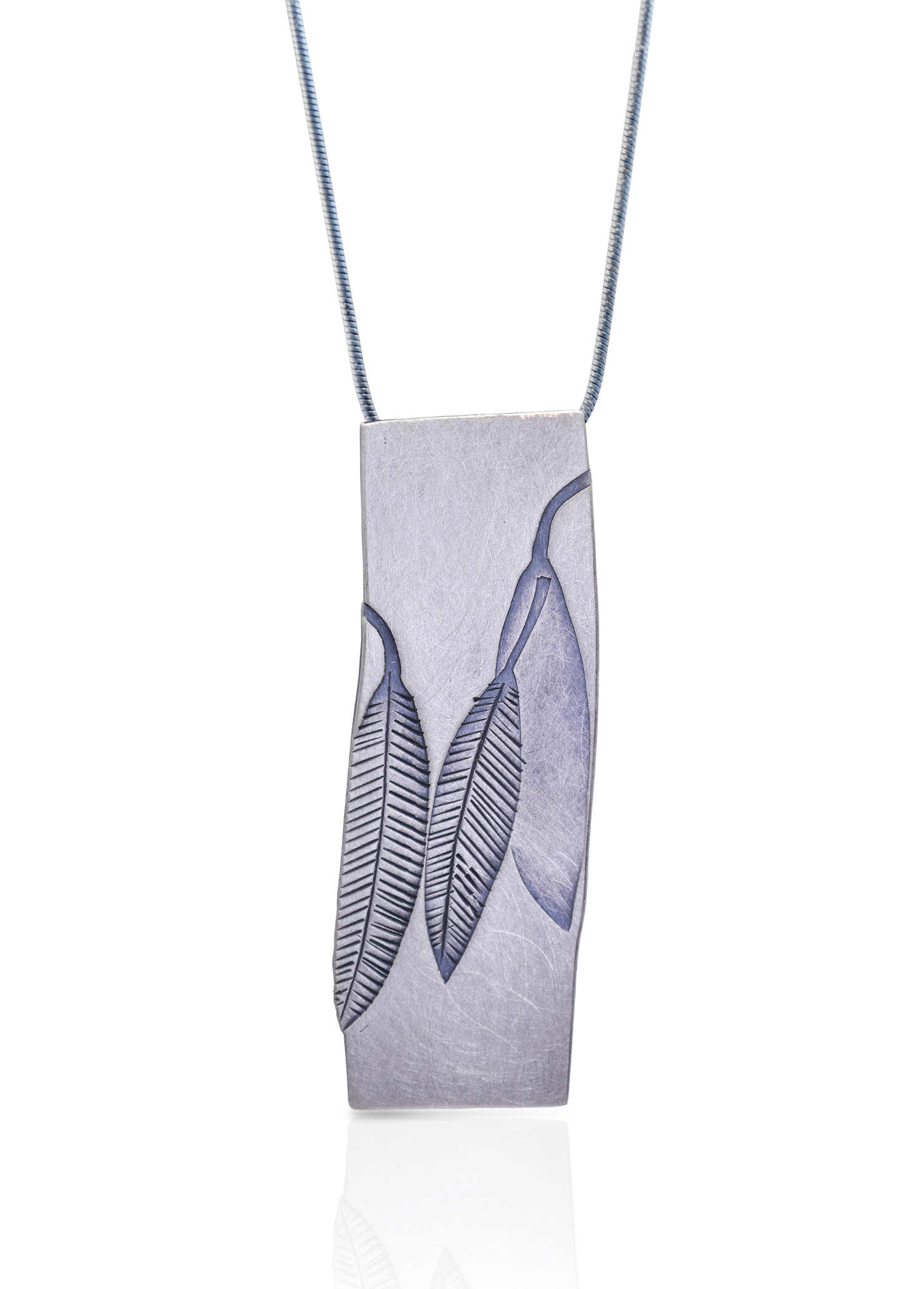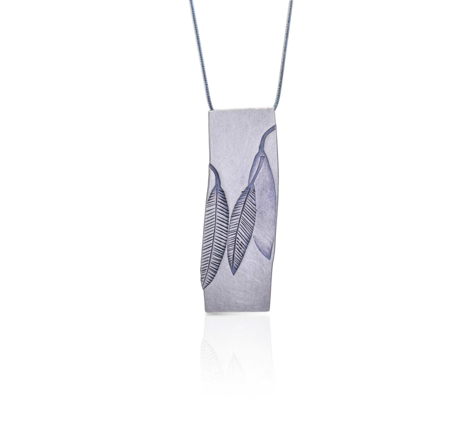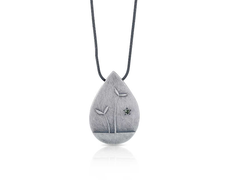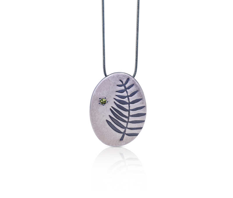 Oxidised sterling silver, green sapphire pendant [24 x 38mm, Chain 45cm] [$340]