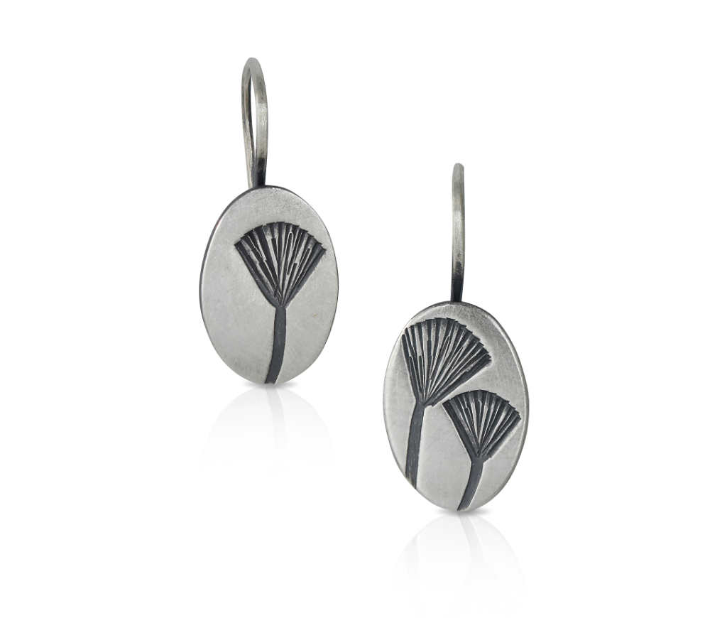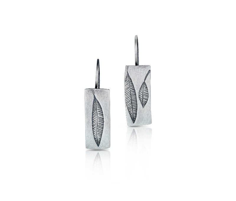 Oxidised fine silver, green sapphire earrings [28 x 10mm] [$230]