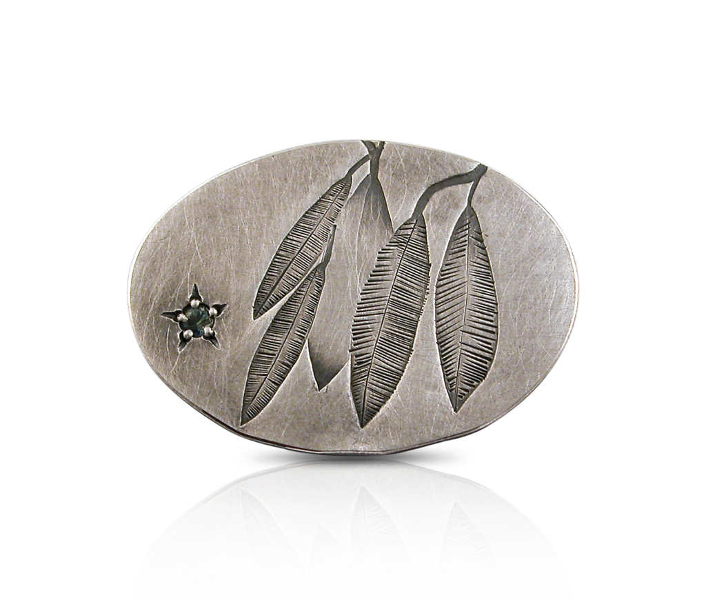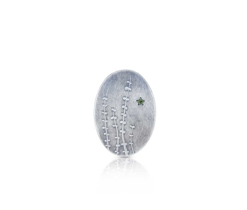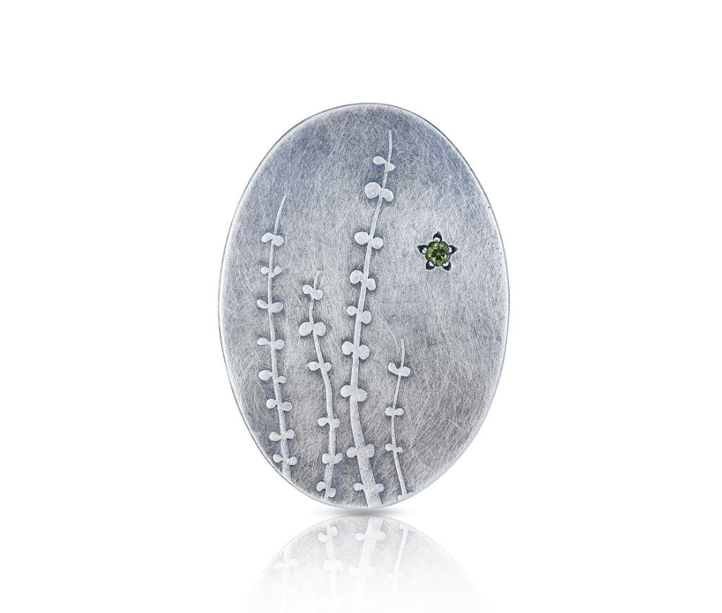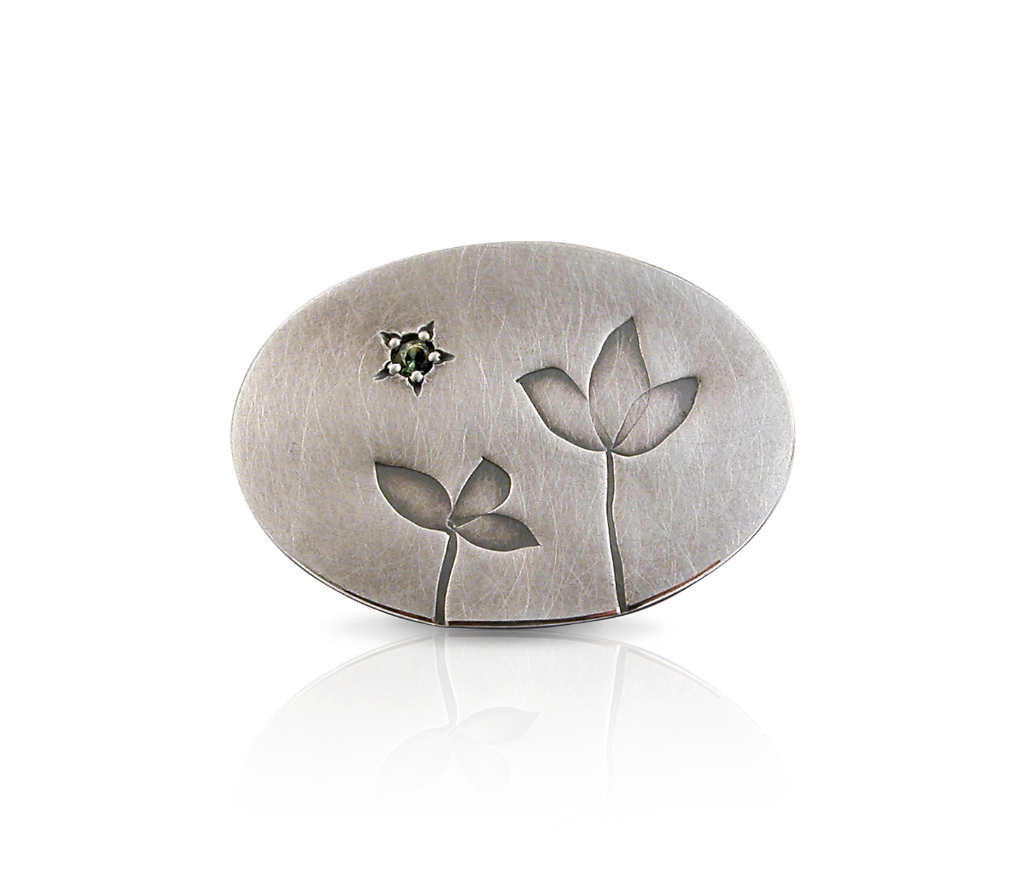 Sterling silver, green sapphire brooch [49.8 x 36.4mm] [$495]